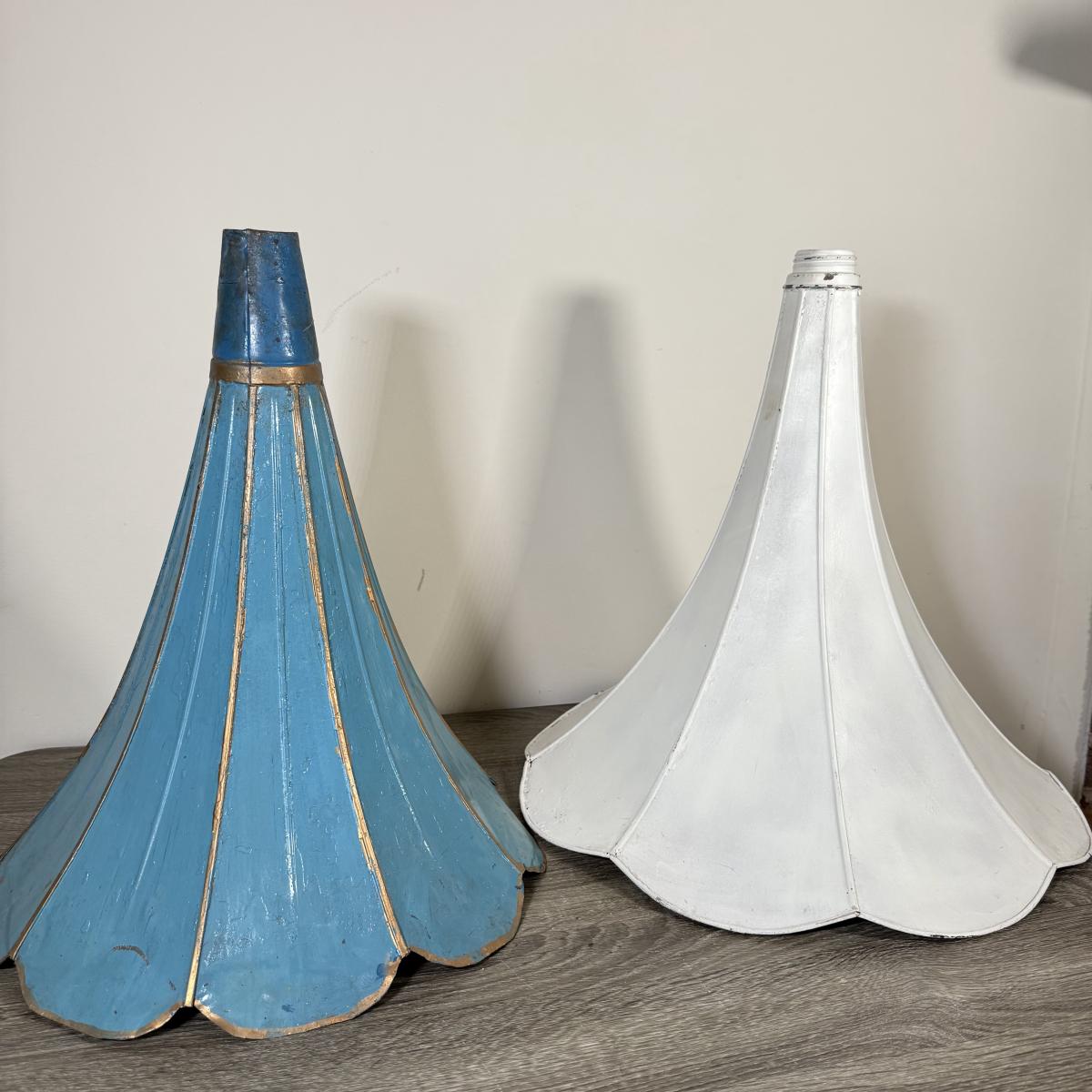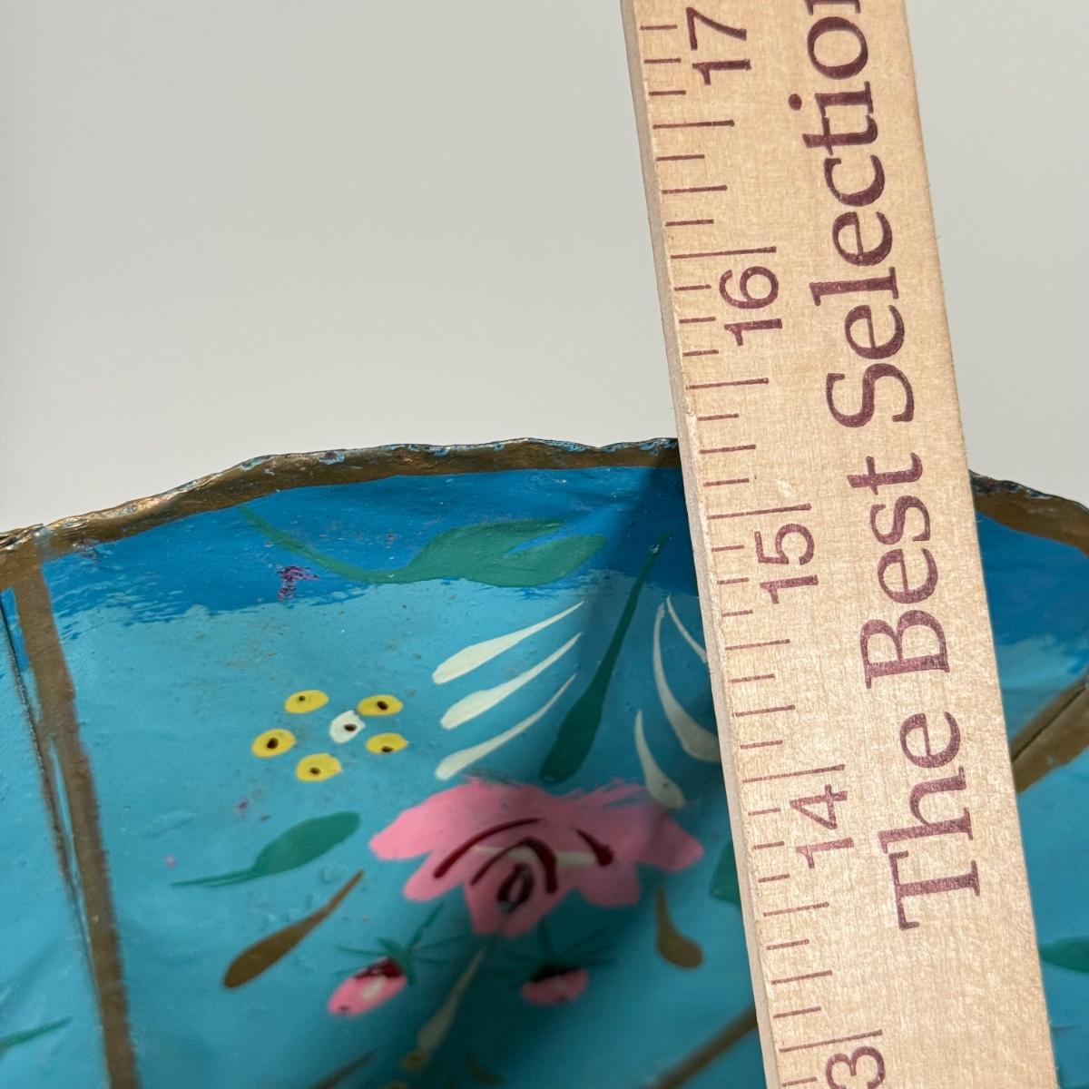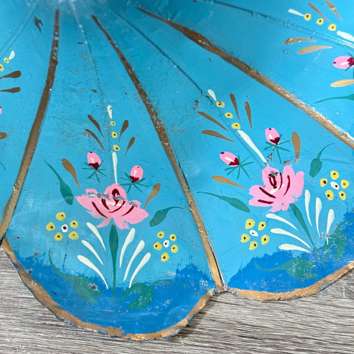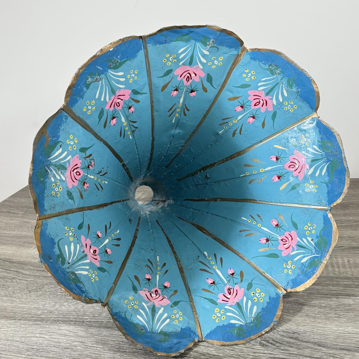 LOT 33H: Beautiful Antique Hand Painted Blue Flower Petal Amplifying Horn w/ White Flower Phonograph/Gramophone Horn