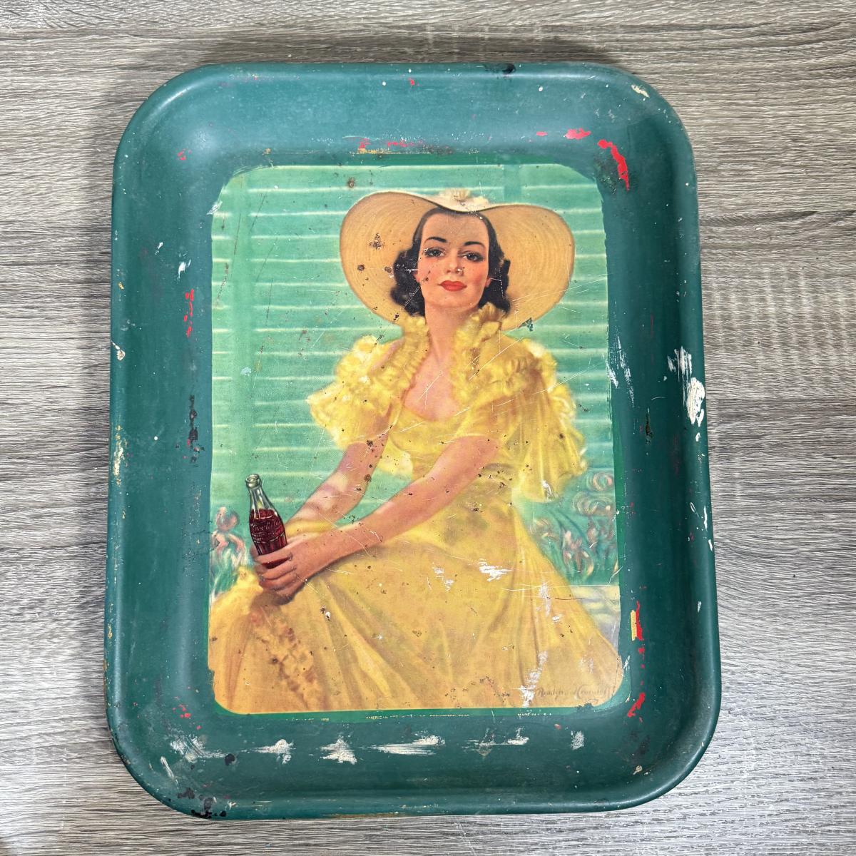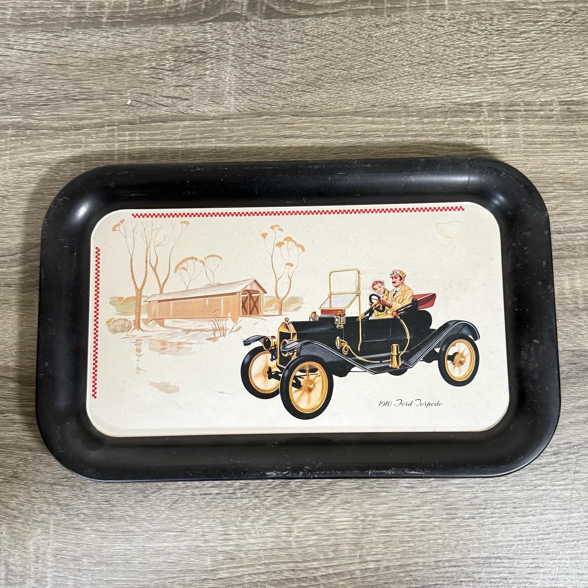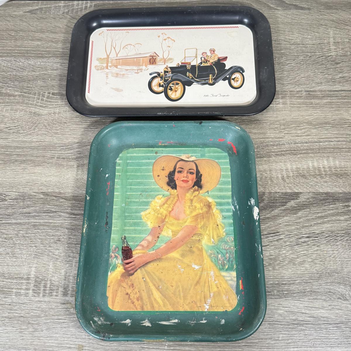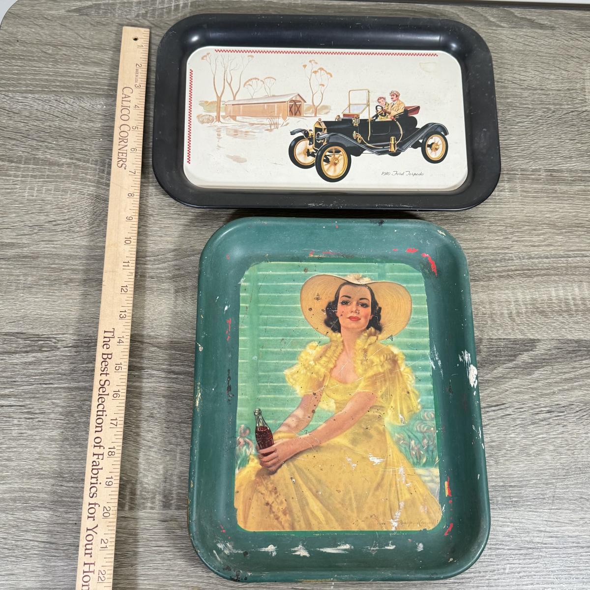 LOT 40H: Vintage/Antique Tin Trays: Painted Coca Cola & 1910 Ford Torpedo