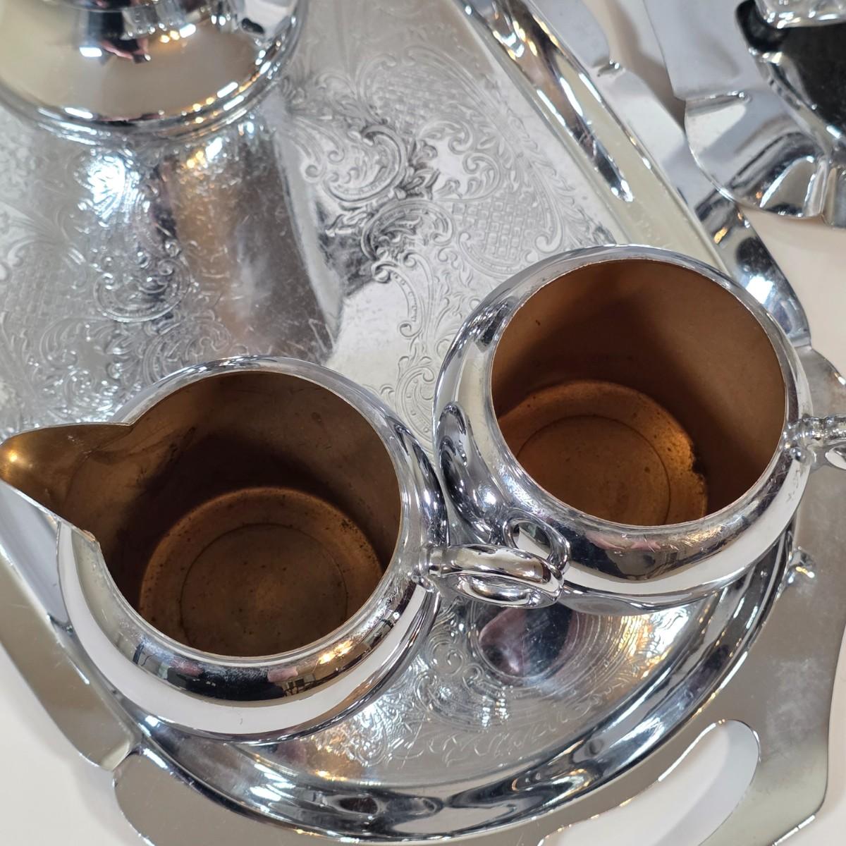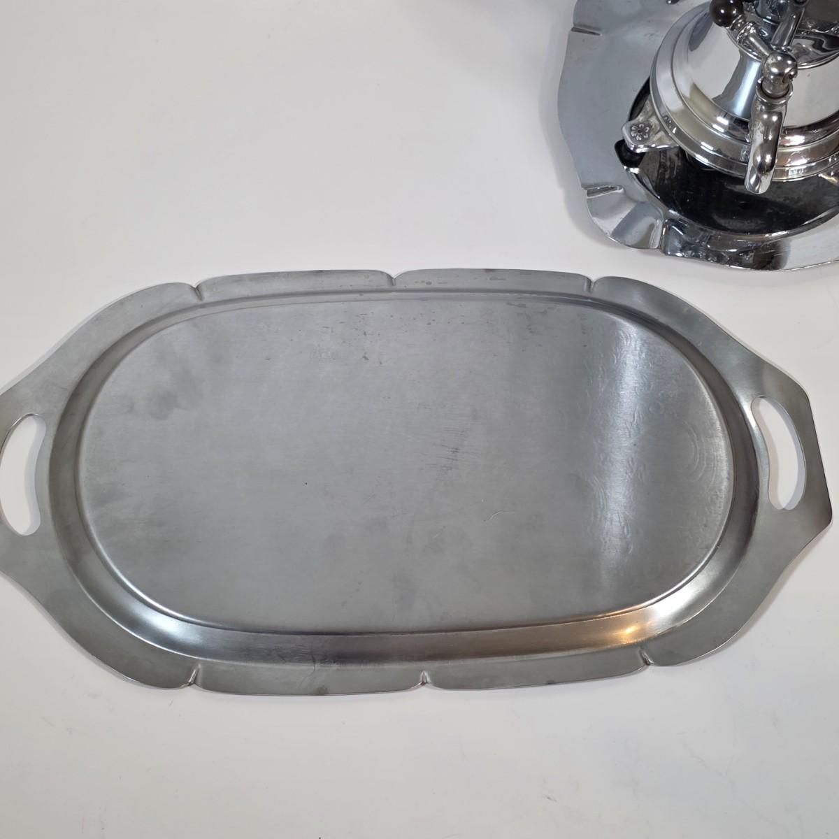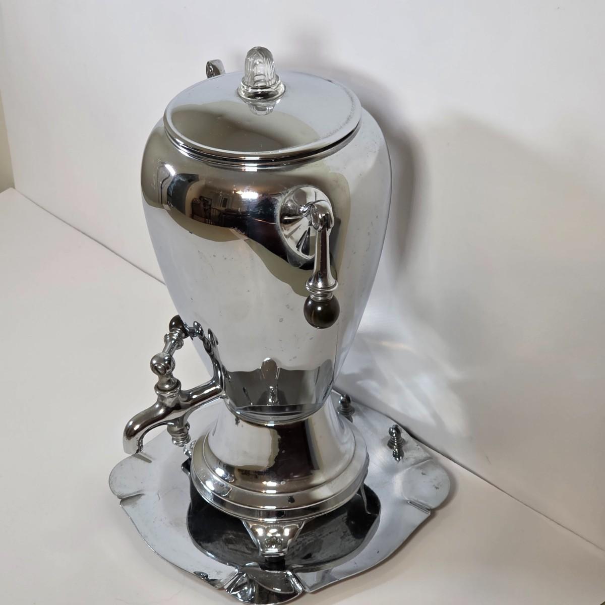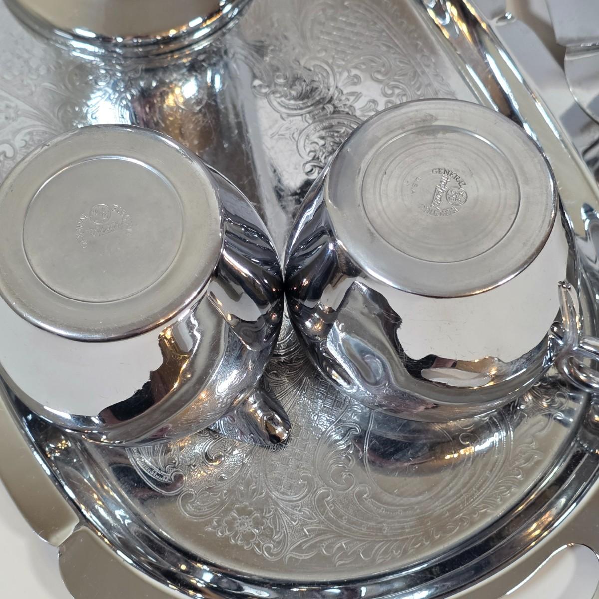 LOT 43K: MCM London & Brighton Chromium Footed Martini/Cocktail Shaker, Along w/Farber Brothers Serving Tray & GE Electric Coffee Percolator w/Creamer Set and Tray