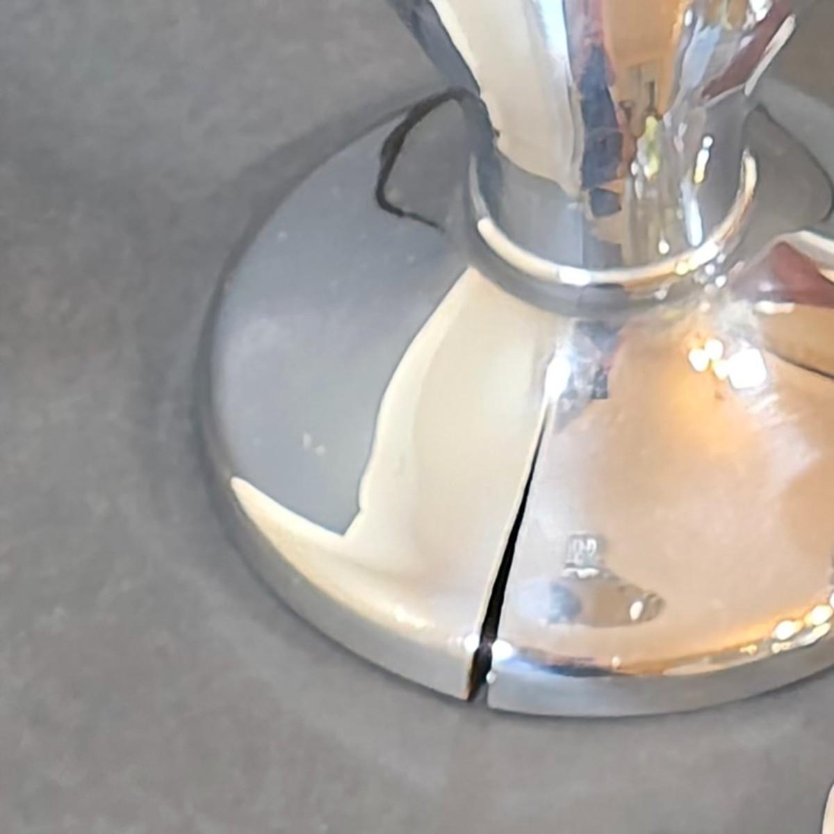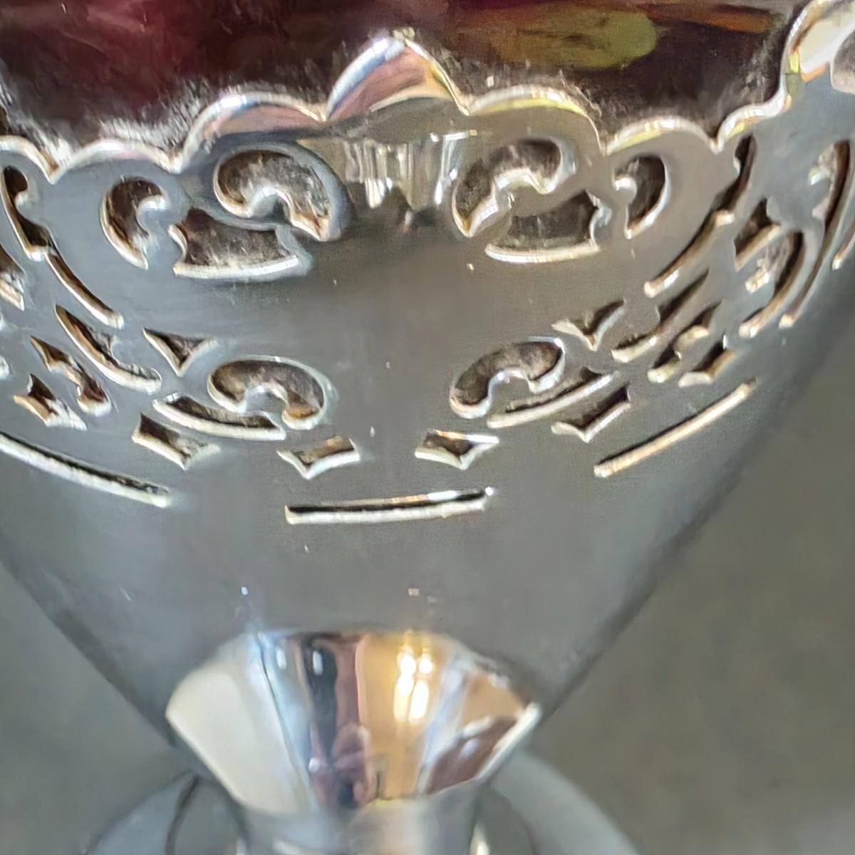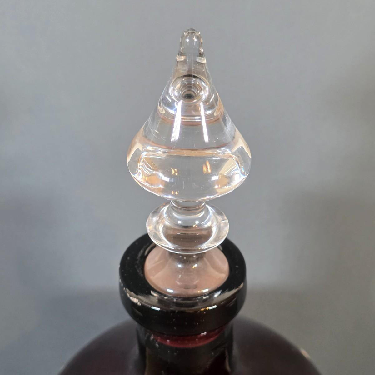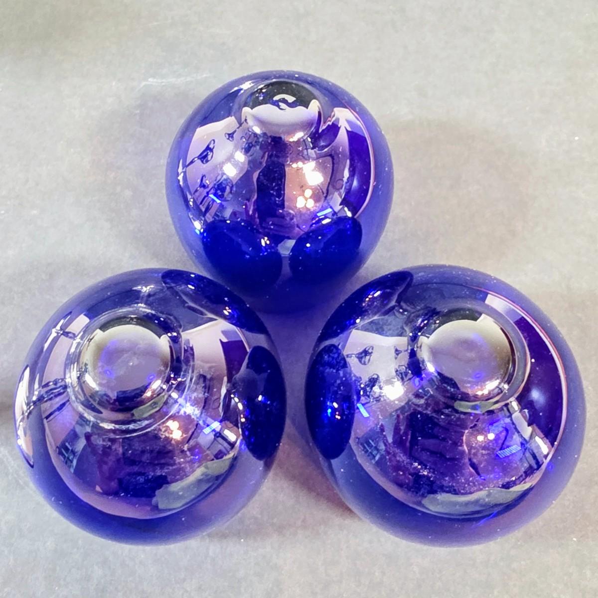 LOT 45K: Antique/Vintage Farber Bros Krome Kraft Amethyst Glass Decanter & 3 Cobalt Blue, Chrome Stem Glasses