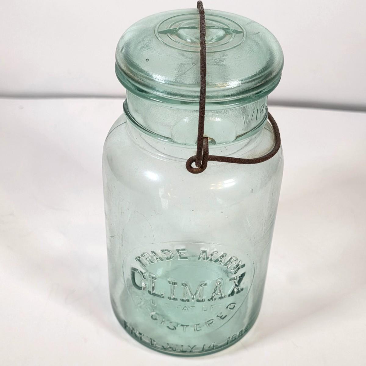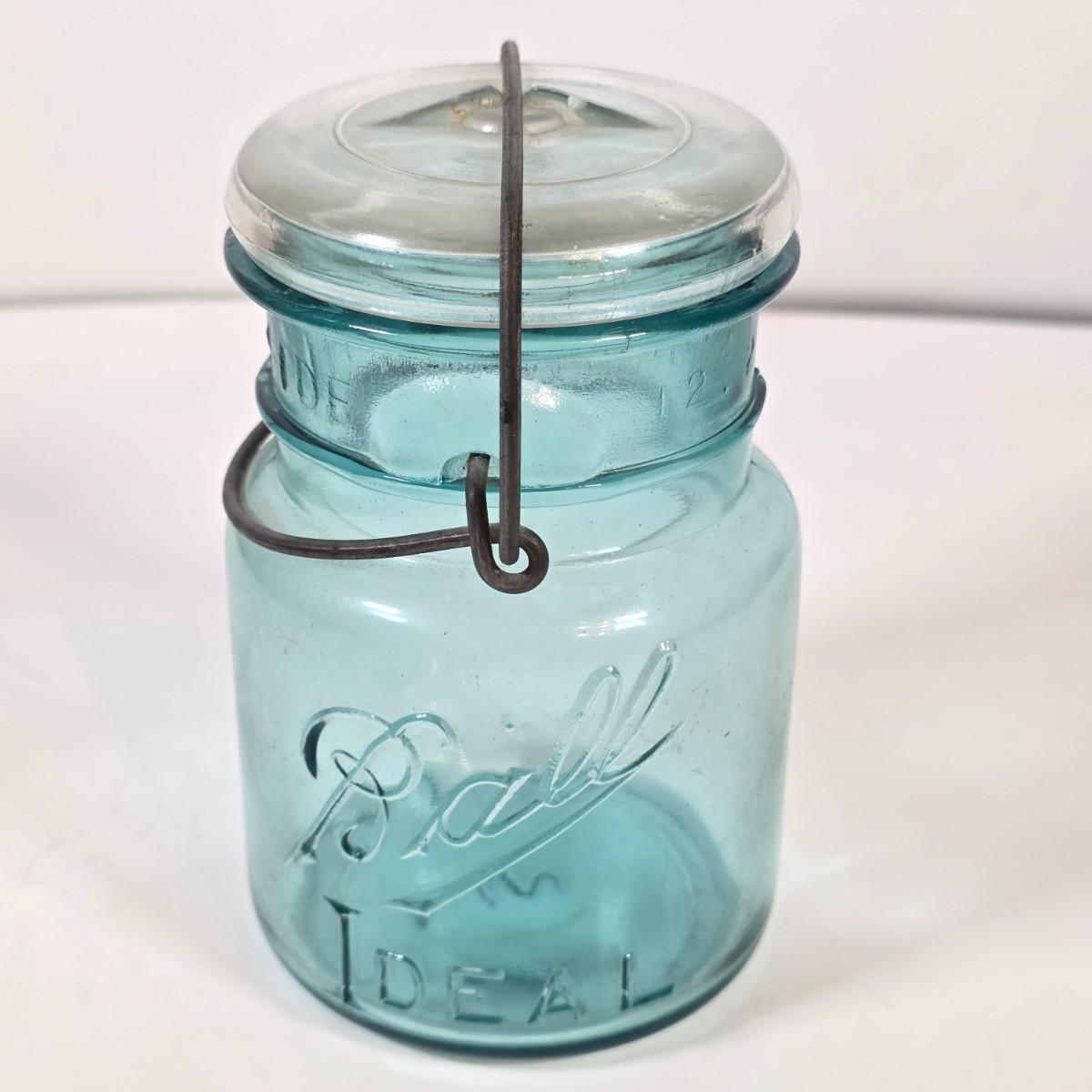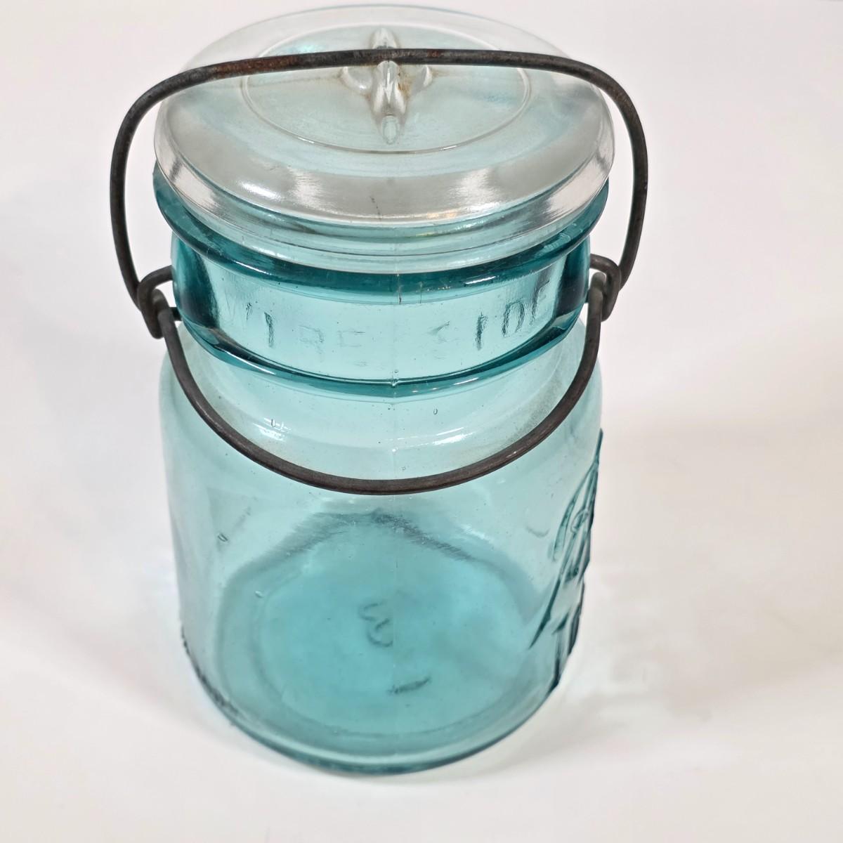 LOT 48K: Antique/Vintage Universal Landers, Frary & Clark Electric Toaster W/3 Wire Bail Closure Blue-Green Glass Canning Jars