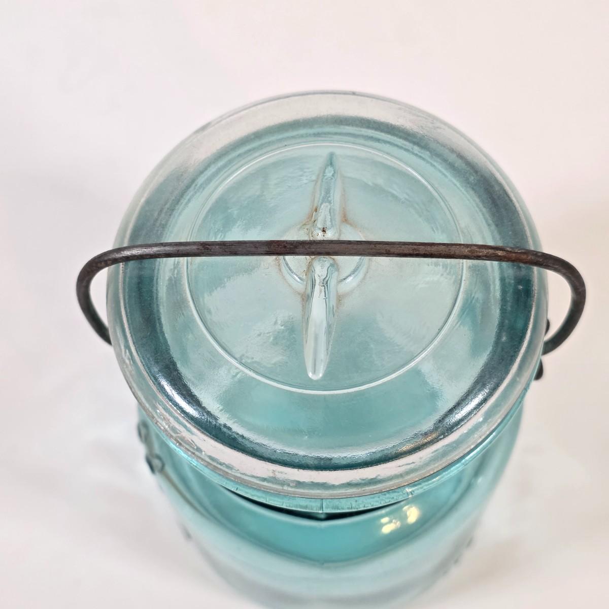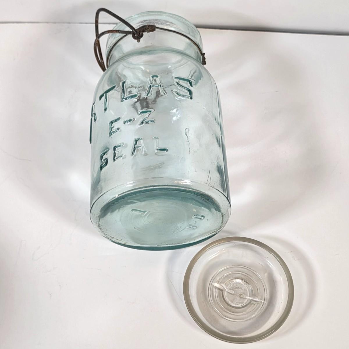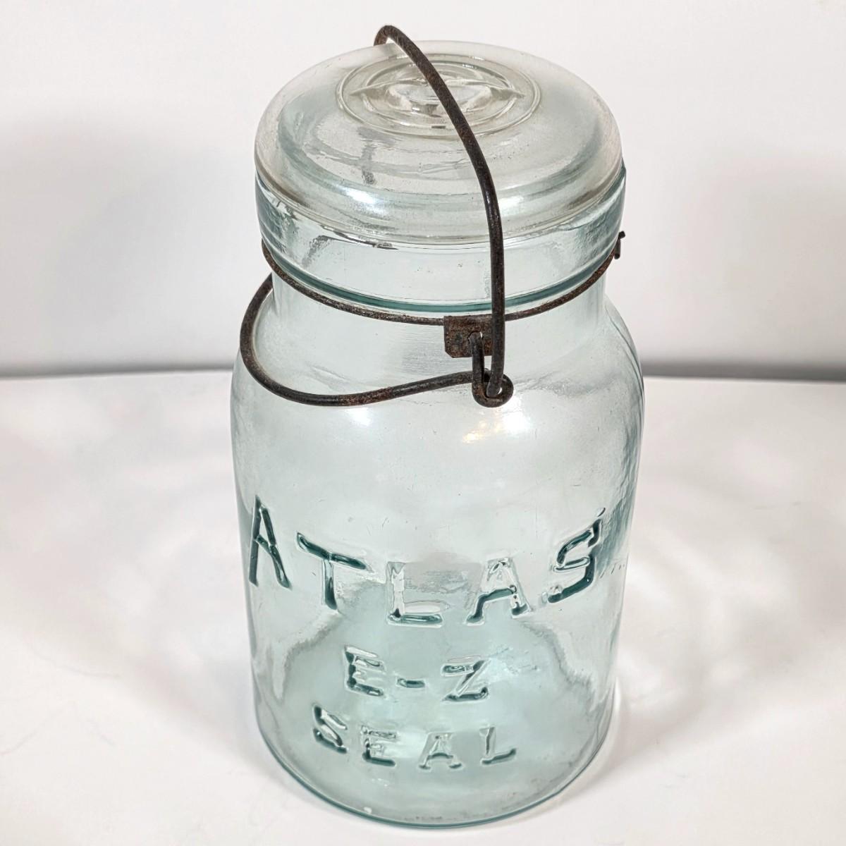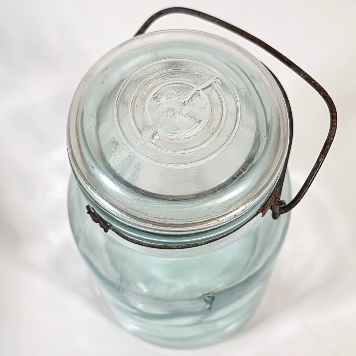 LOT 48K: Antique/Vintage Universal Landers, Frary & Clark Electric Toaster W/3 Wire Bail Closure Blue-Green Glass Canning Jars