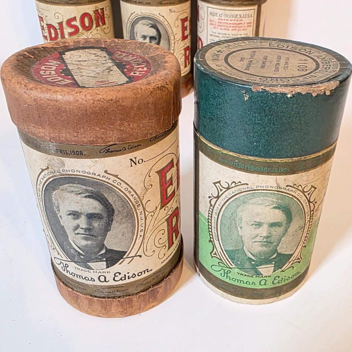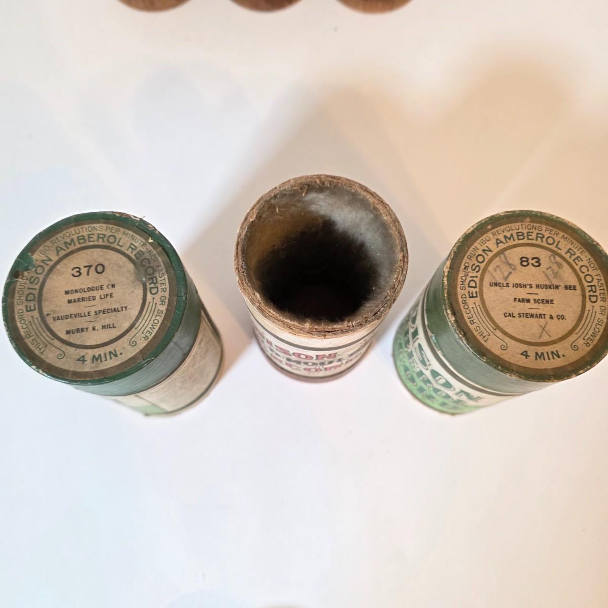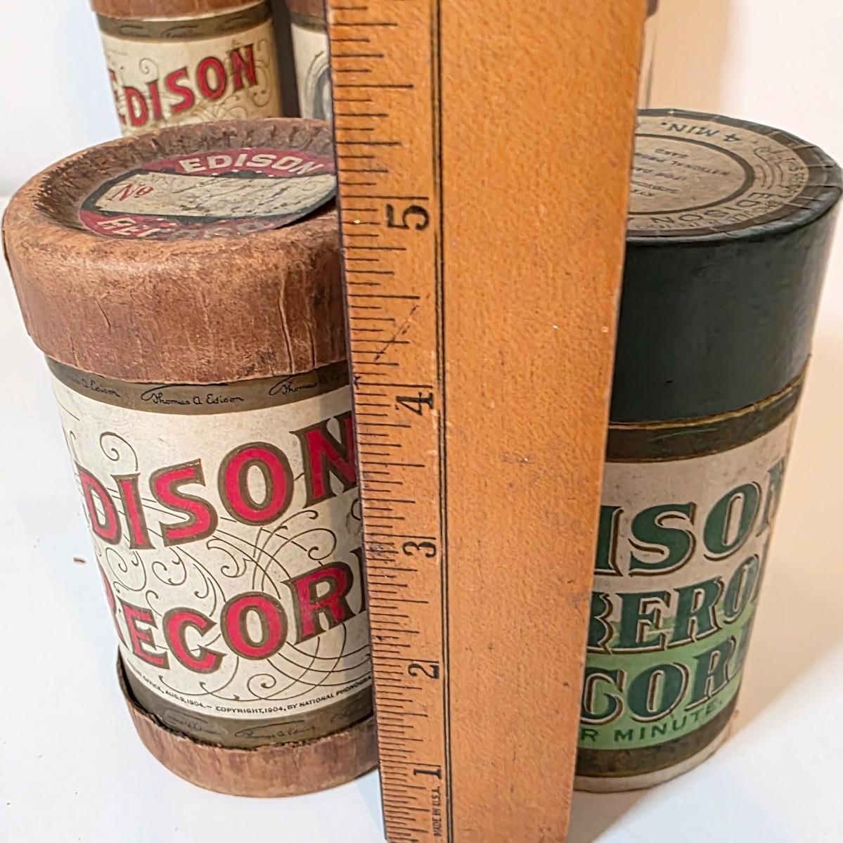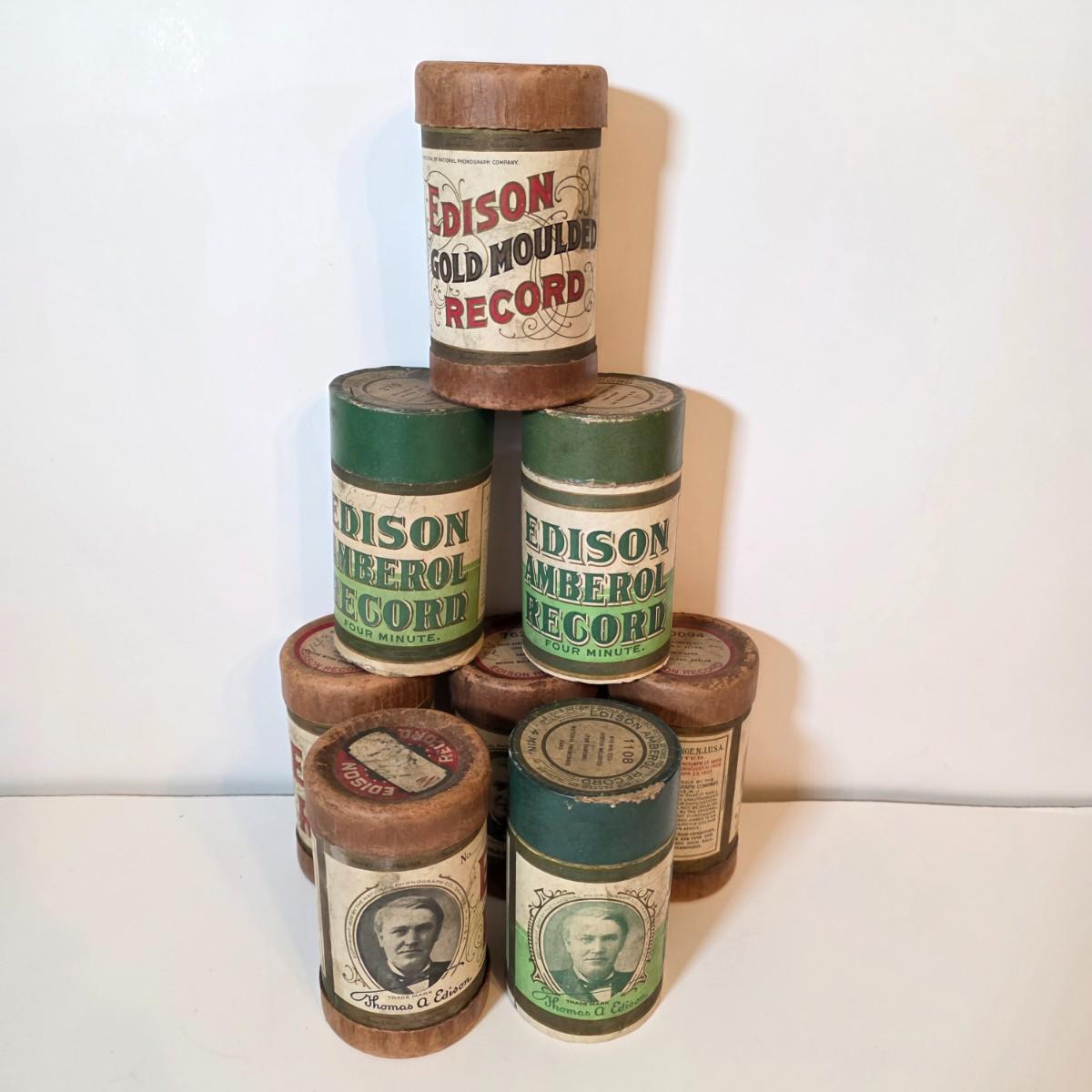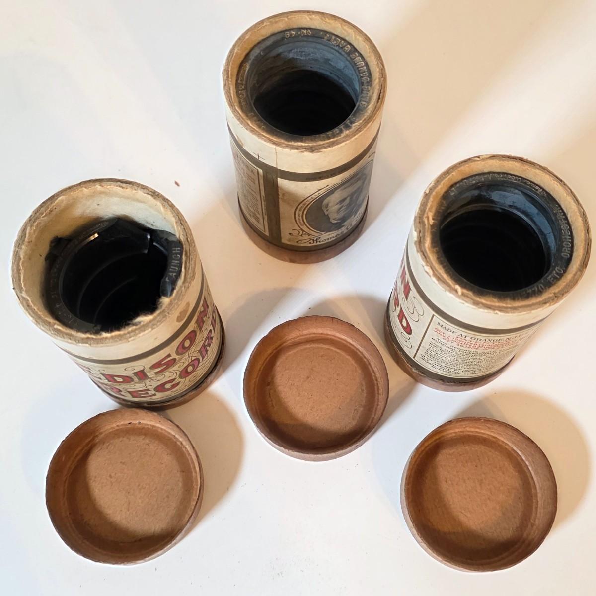 LOT 52K: Antique Thomas Edison Company Phonograph Cylinder Records, 8 Containers W/7 Four-Minute Phonograph Cylinder Records