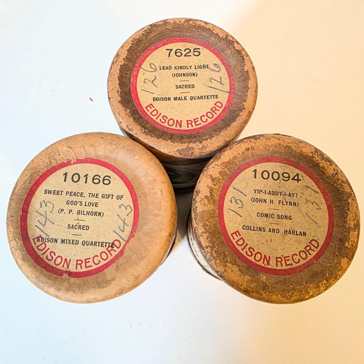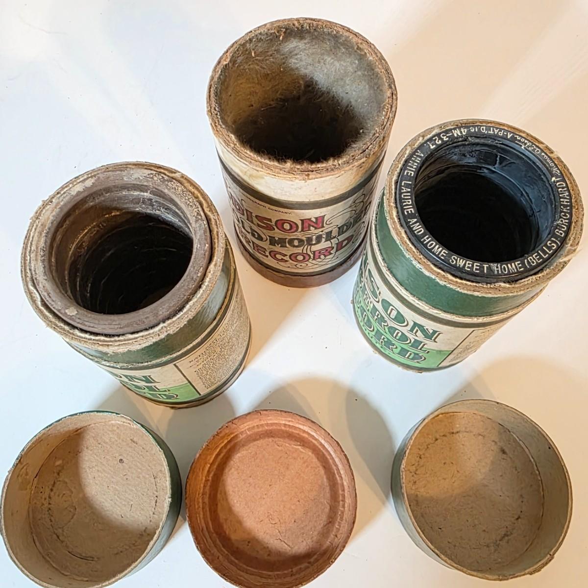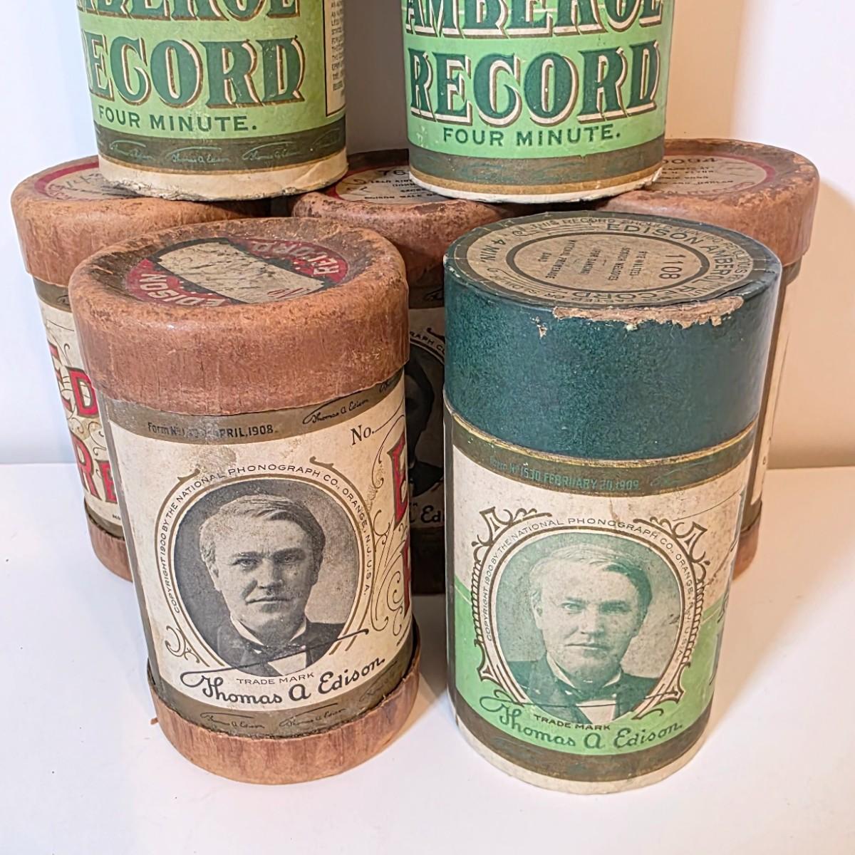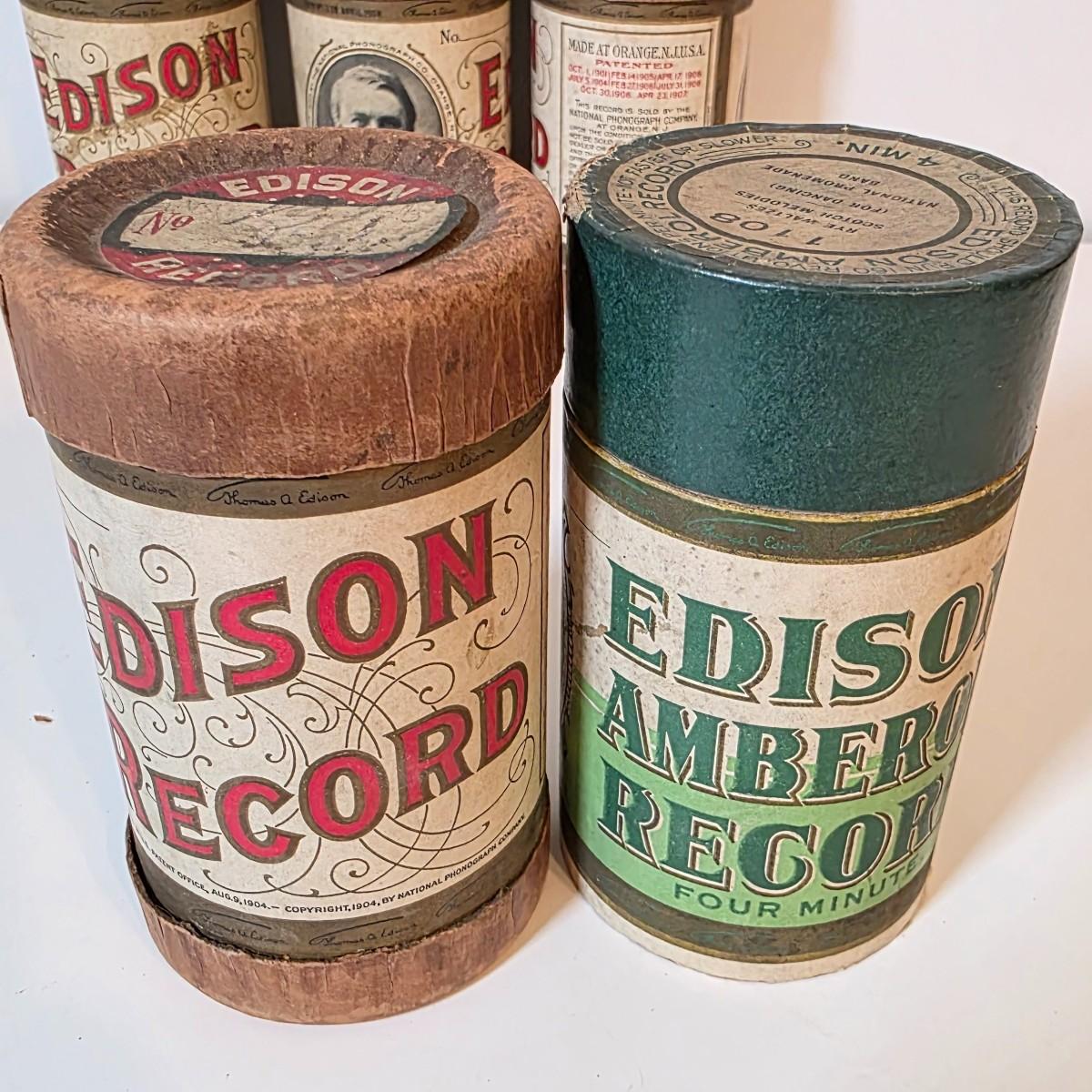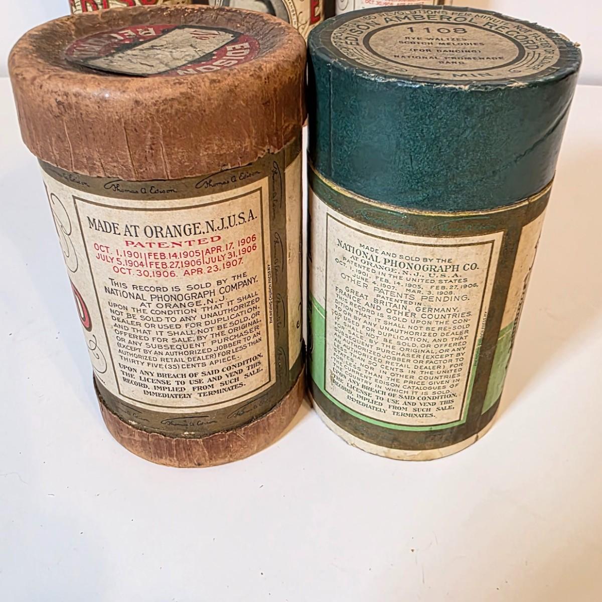 LOT 52K: Antique Thomas Edison Company Phonograph Cylinder Records, 8 Containers W/7 Four-Minute Phonograph Cylinder Records