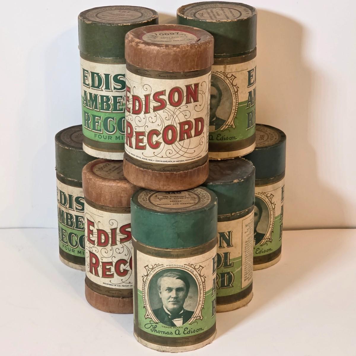 LOT 53K: Antique Thomas Edison Company, Collection of 9 Phonograph Cylinder Records