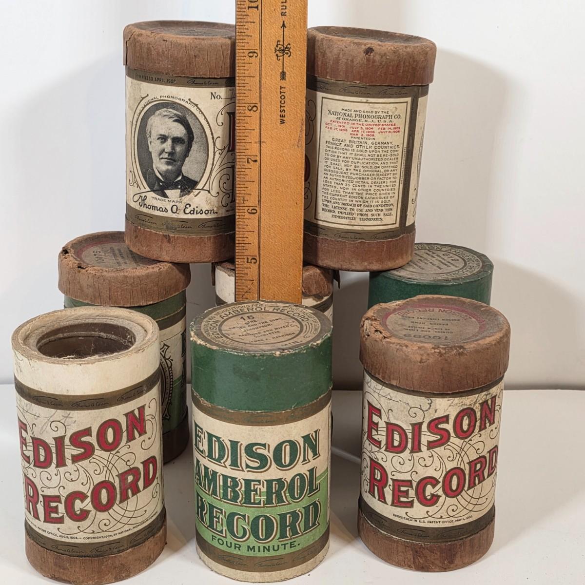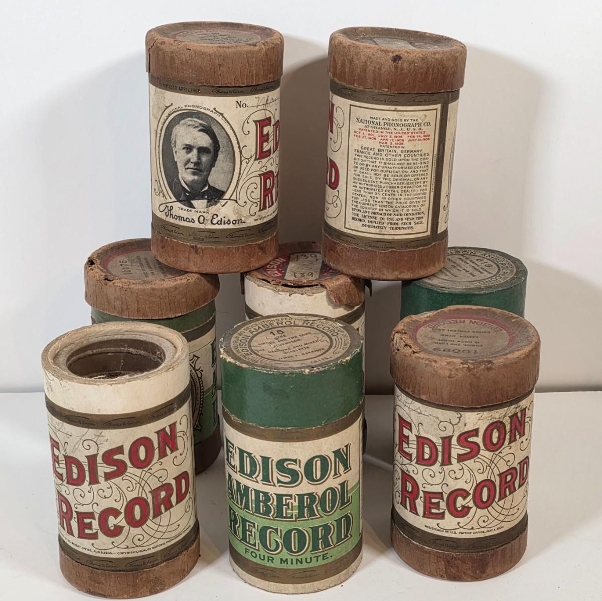 LOT 55K: Antique Collection of 9 Thomas Edison Company Phonograph Cylinder Records
