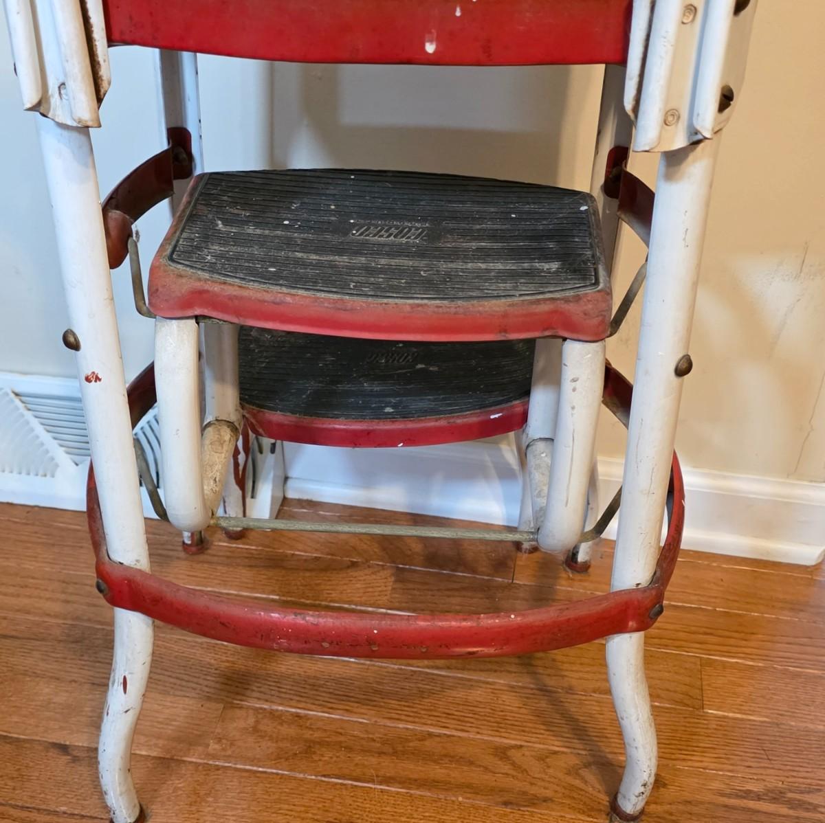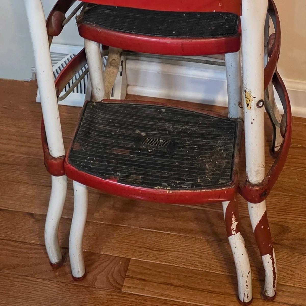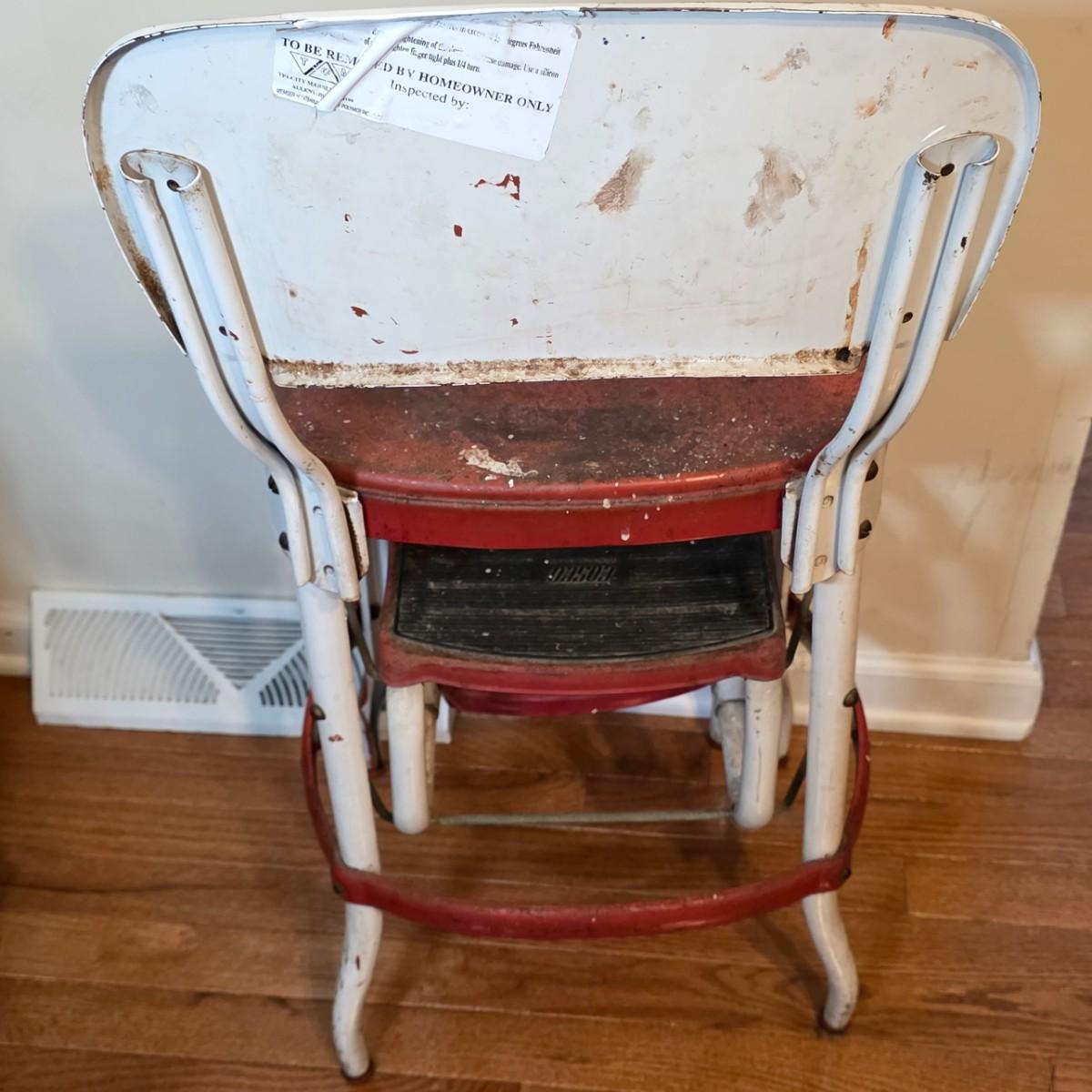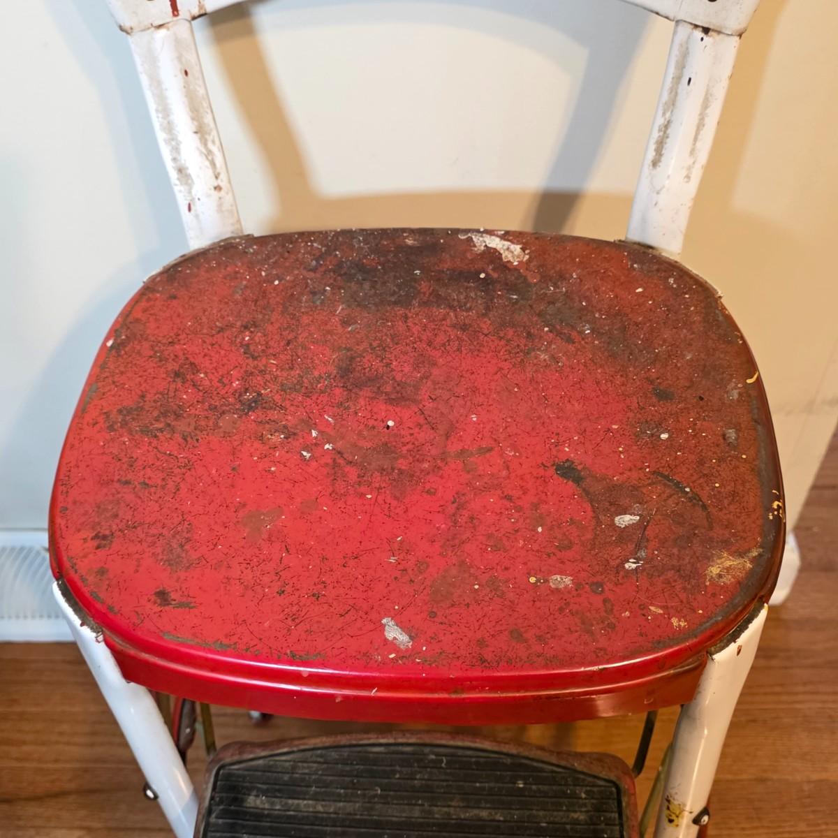 LOT 60D: Vintage Cosco Red & White Metal Step/Stool Chair