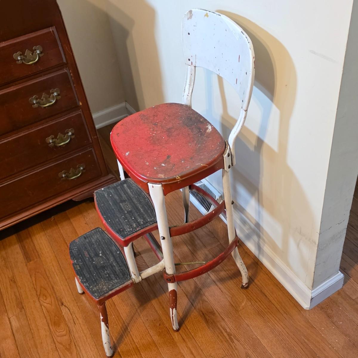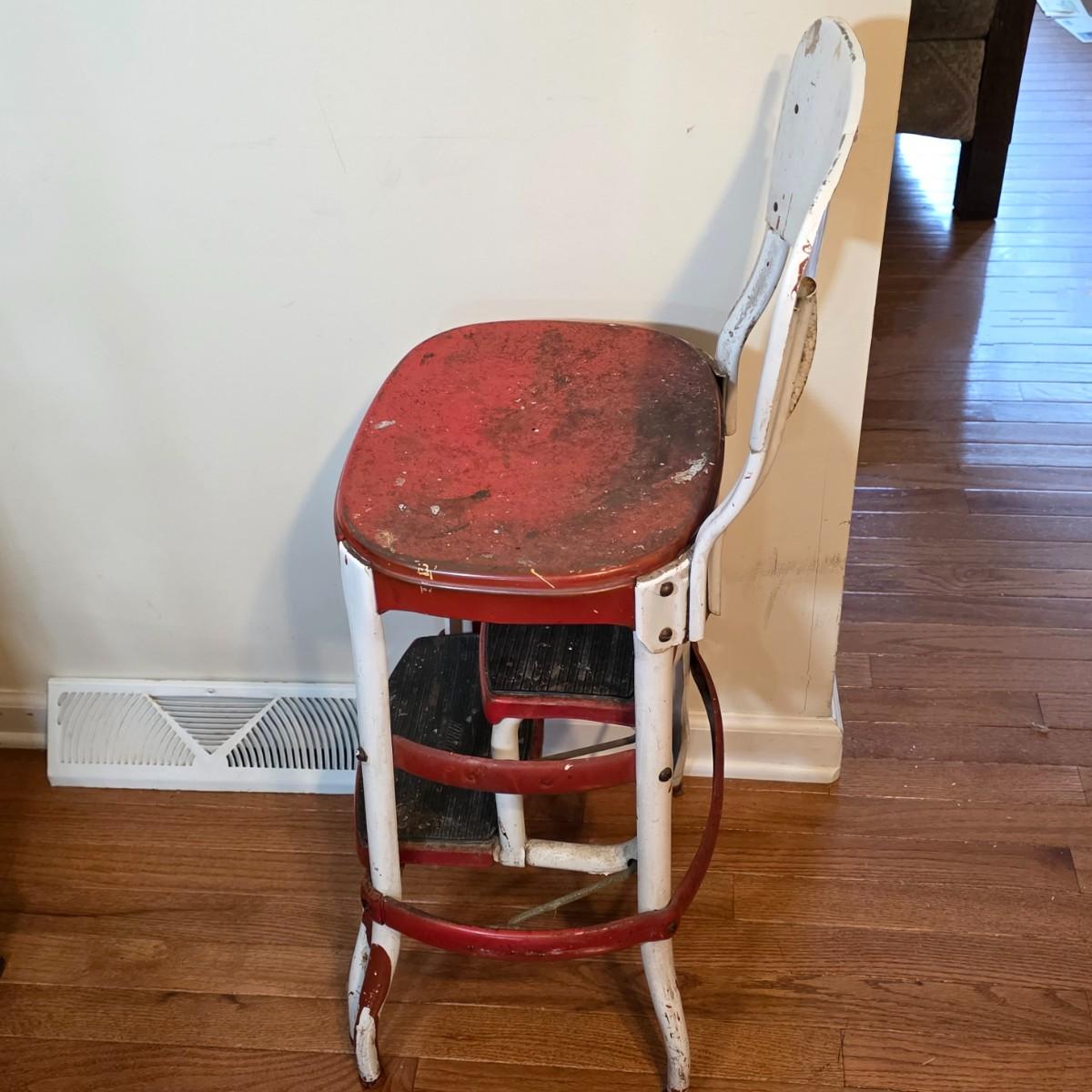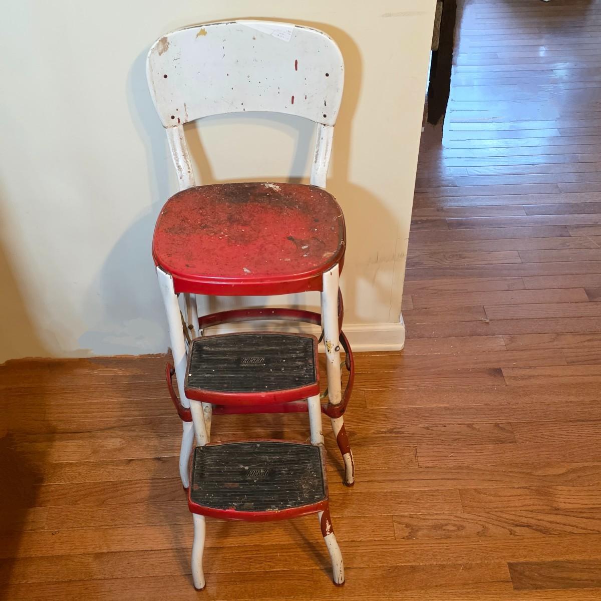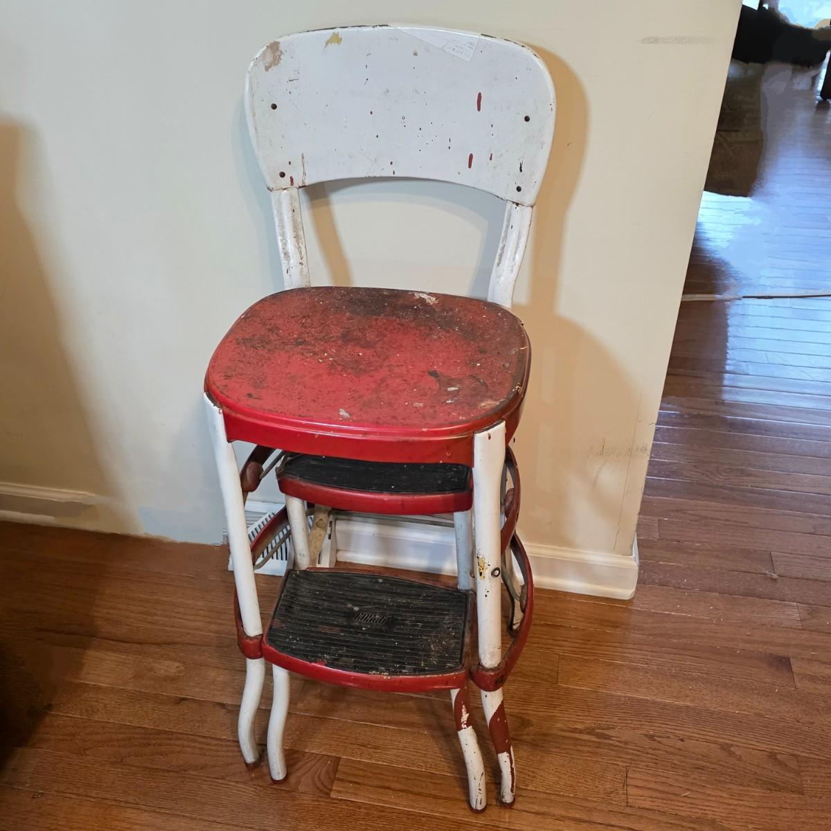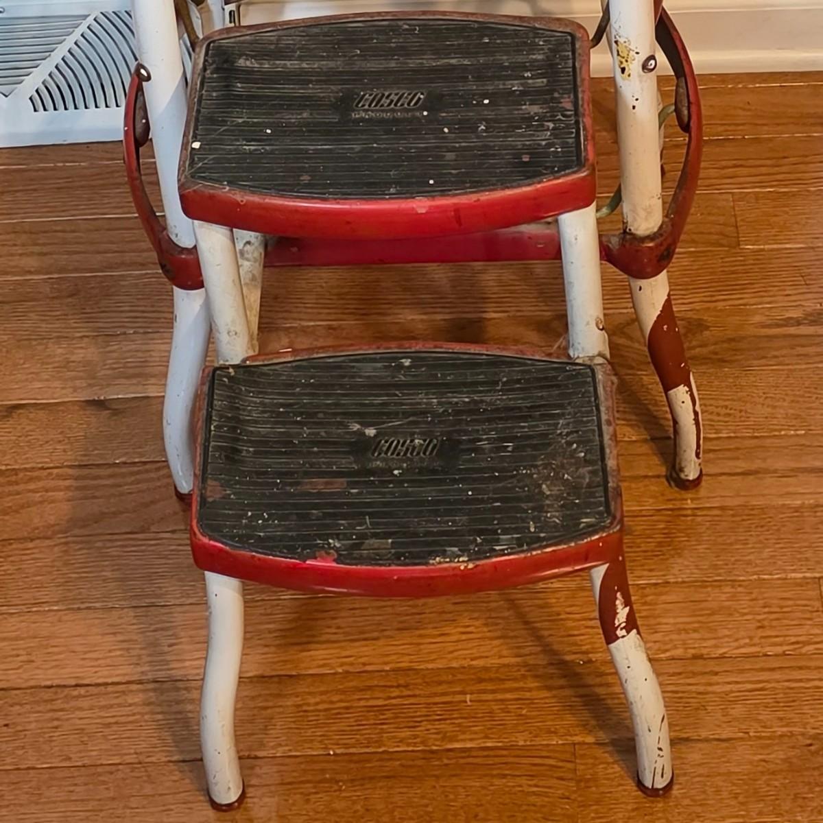 LOT 60D: Vintage Cosco Red & White Metal Step/Stool Chair