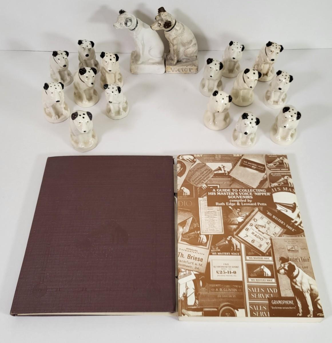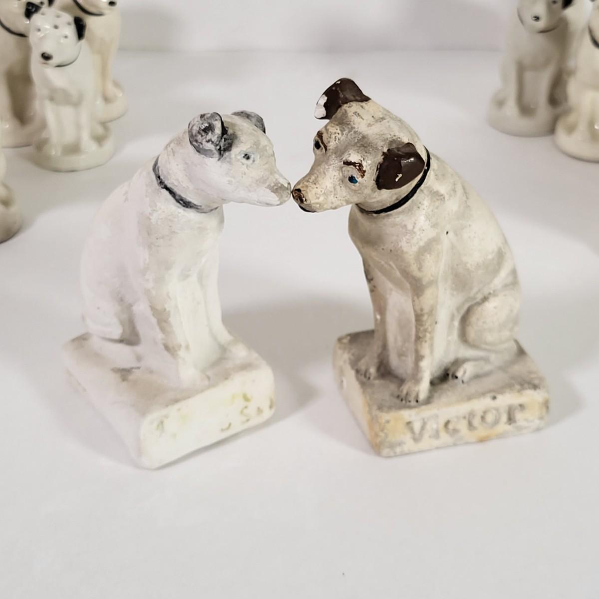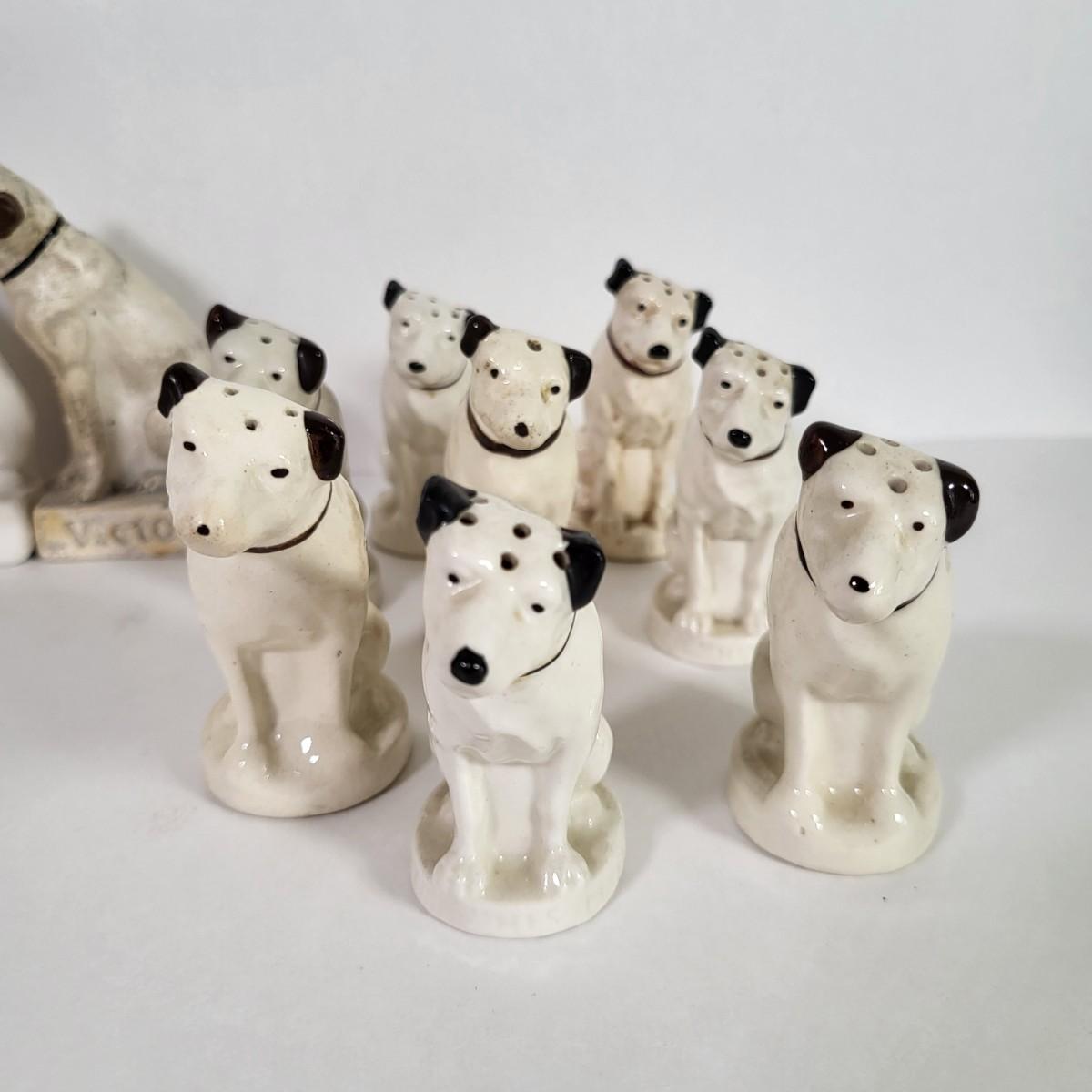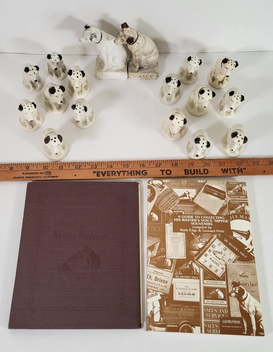 LOT 61K: Multiple Vintage Victor Dog Ceramic Salt & Pepper Shakers and Pair of Victor Dog Statues and Books
