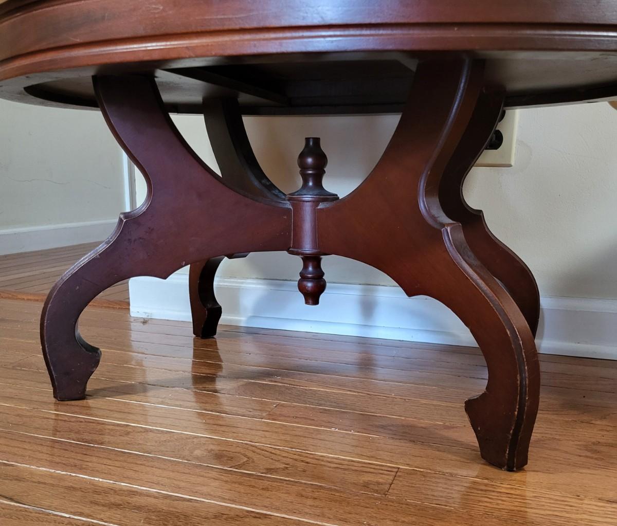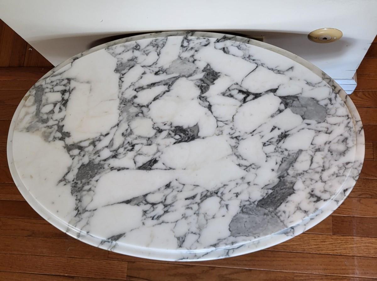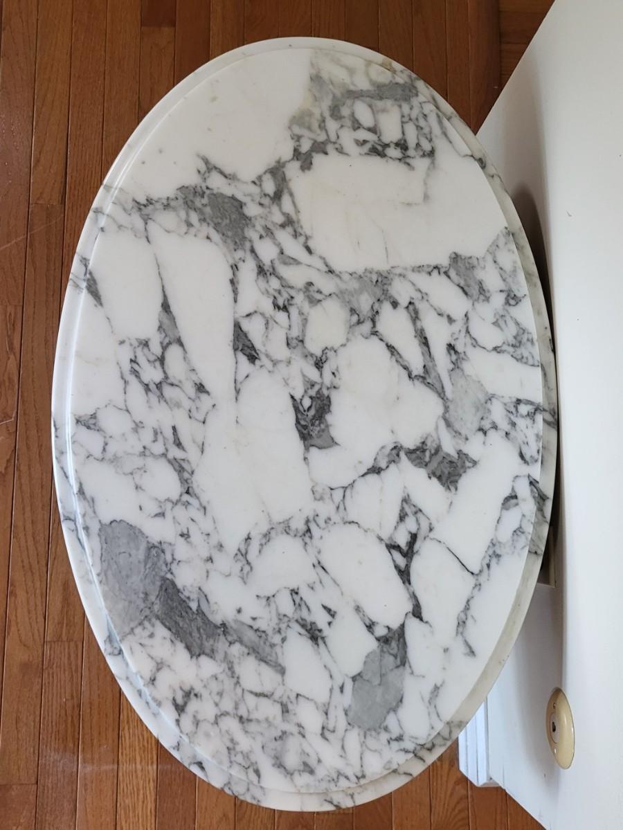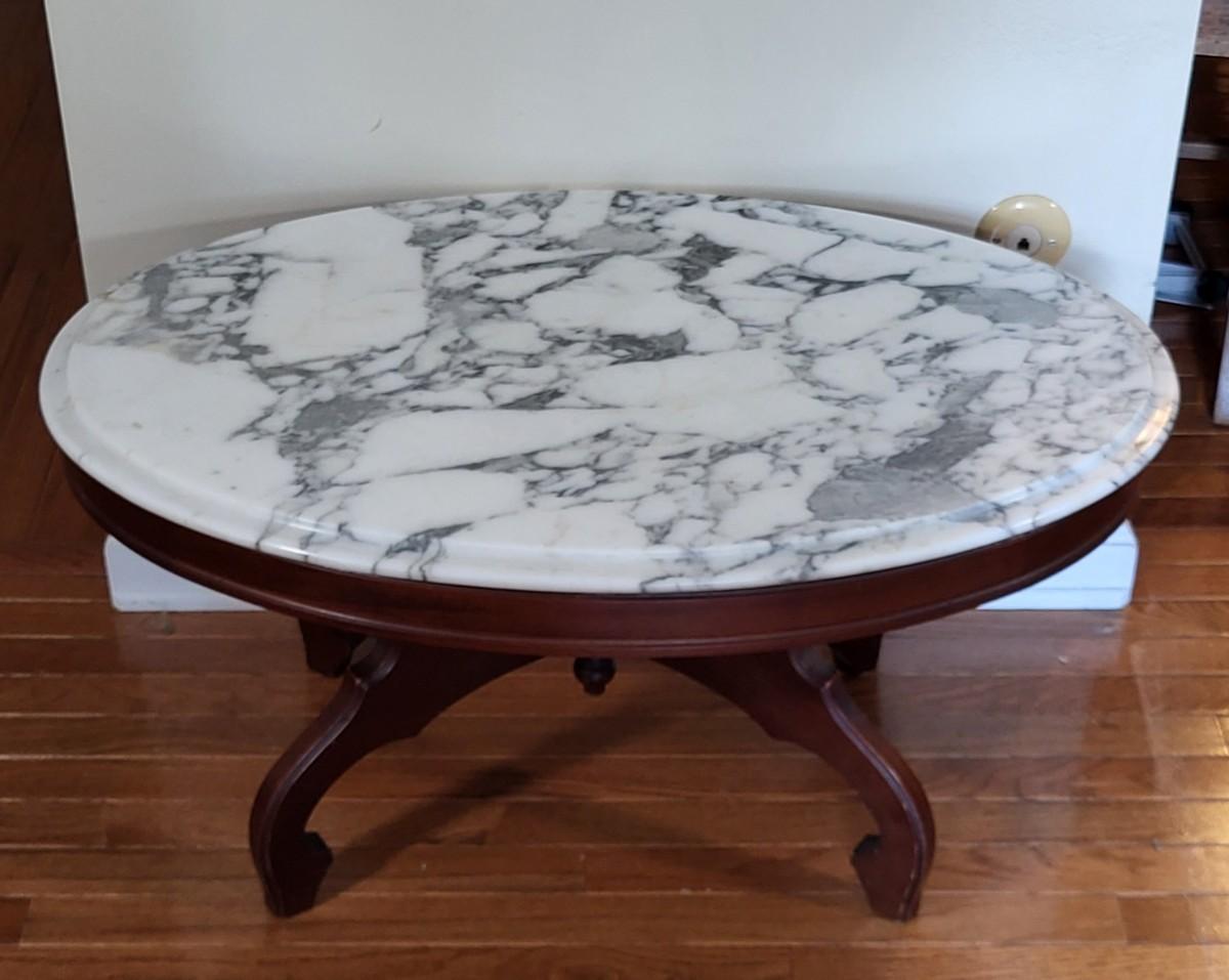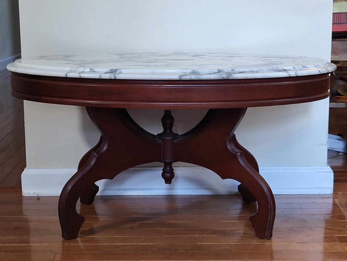 LOT 73F: Modern Oval Marble Top Coffee Table with Carved Wooden Base
