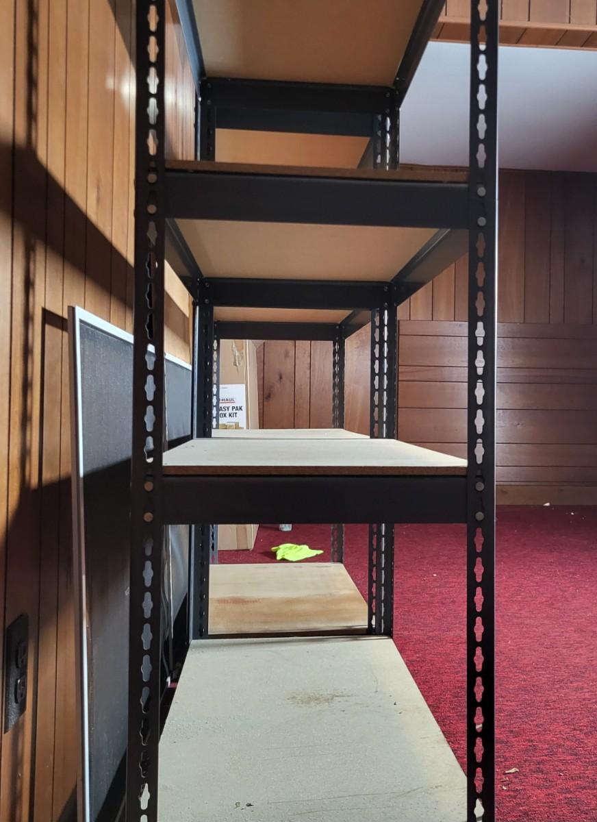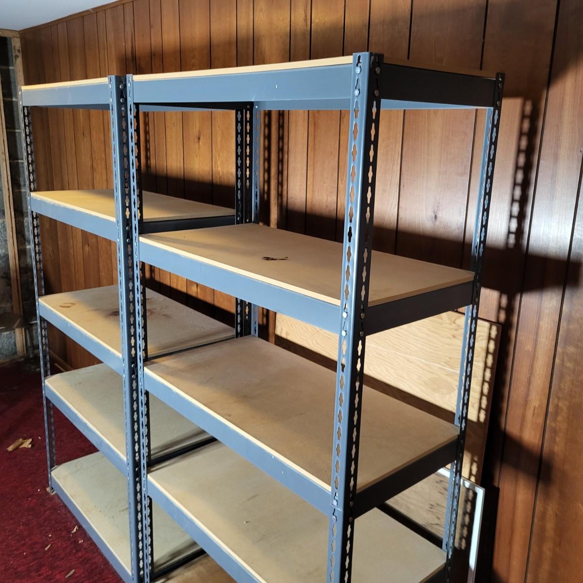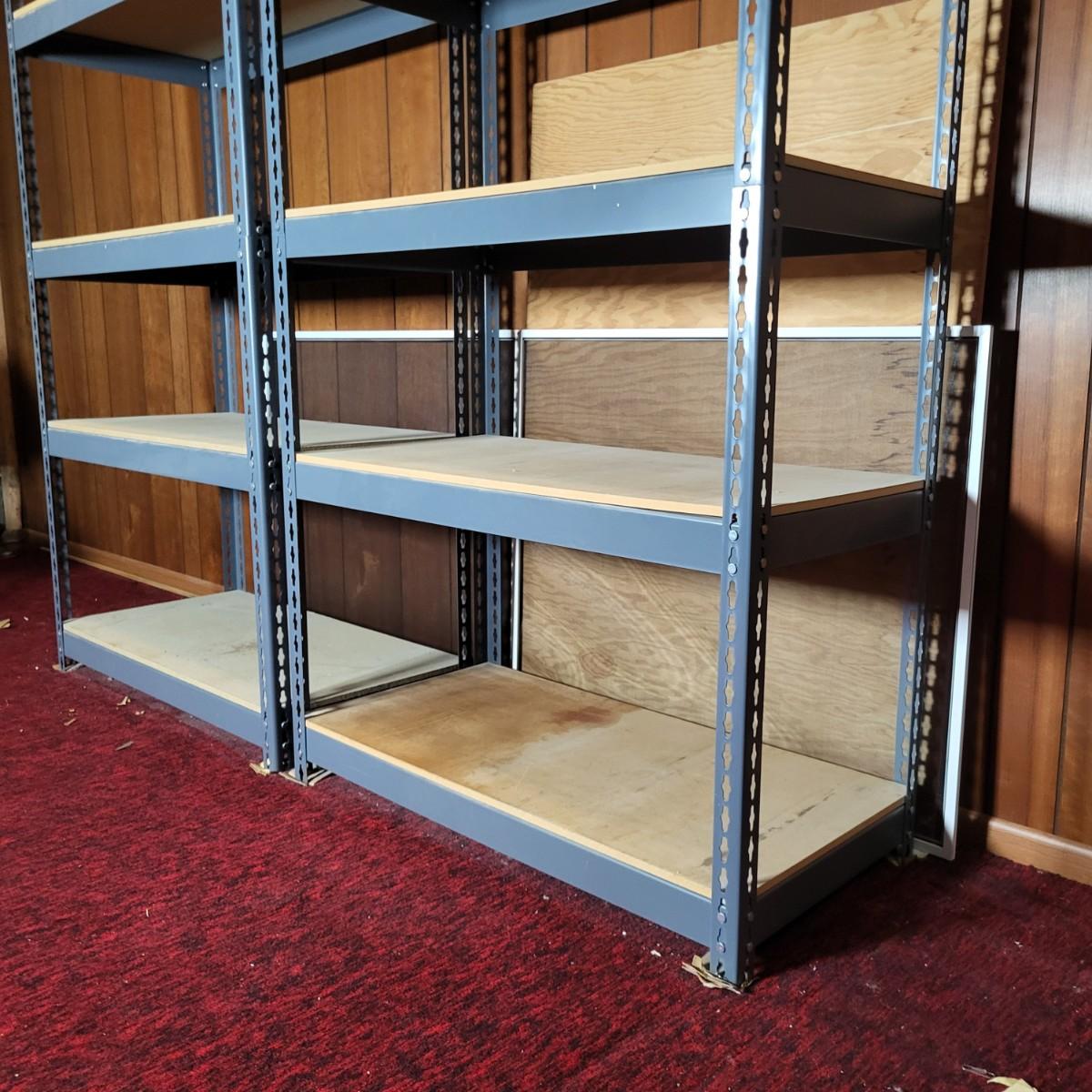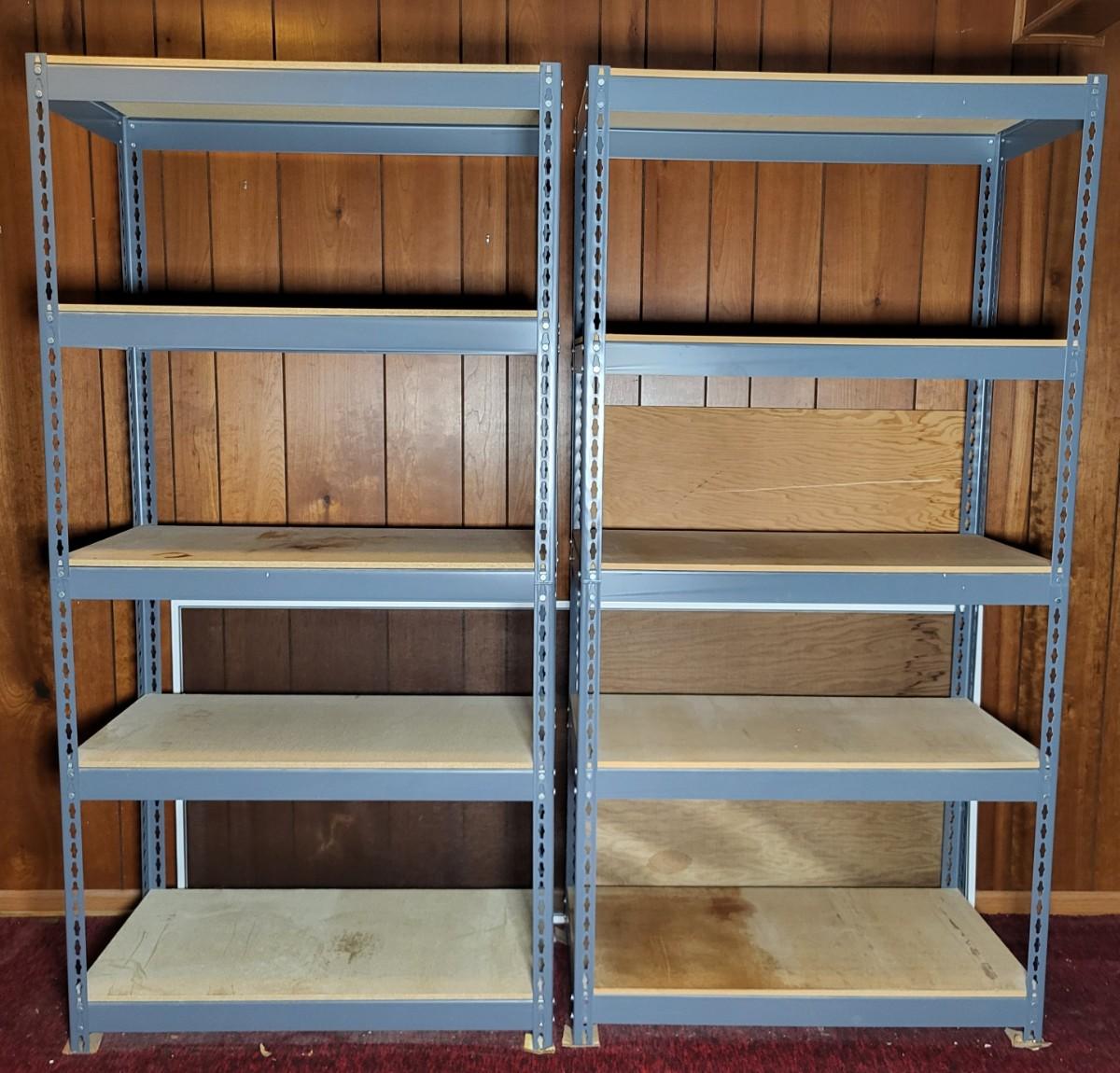 LOT 77B: Pair of Tall Metal Bracket and Plywood Shelf Storage Racks