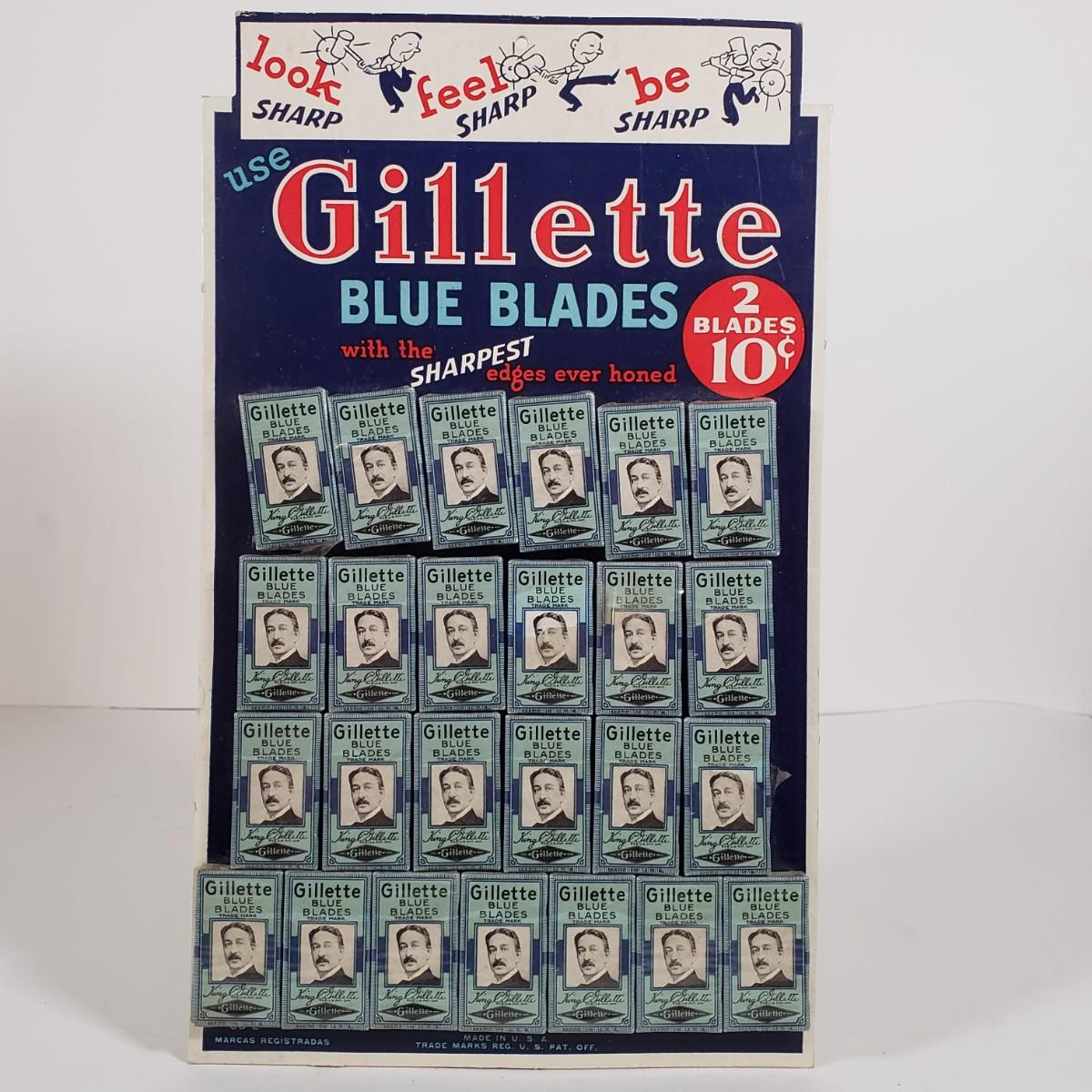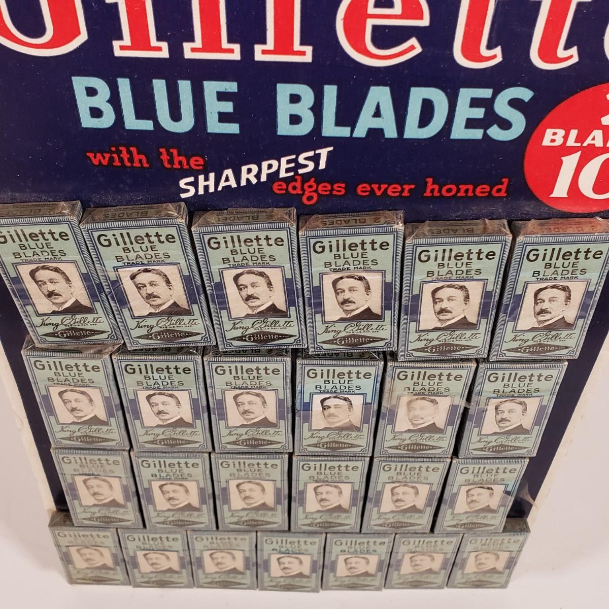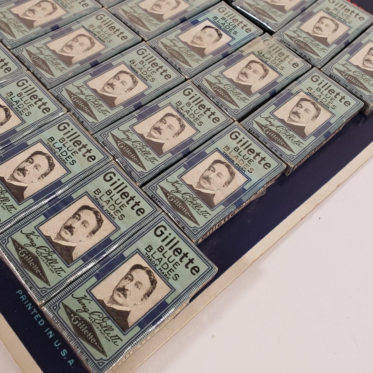 LOT 82X: Vintage Gillette Blue Blades Countertop Advertising Display with 25 Original Packs
