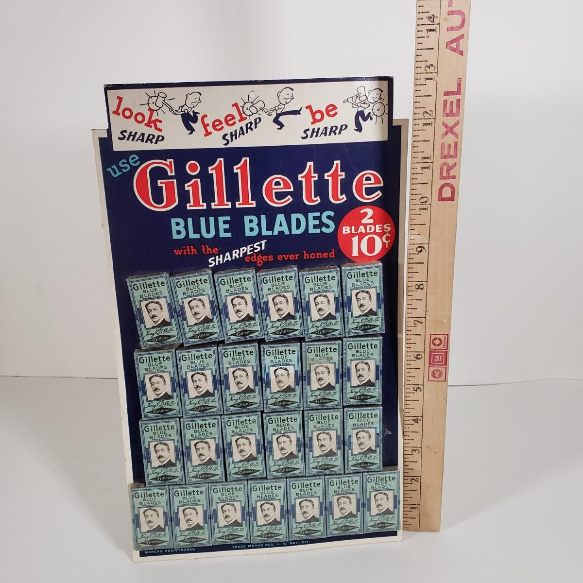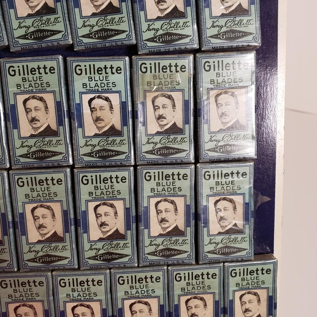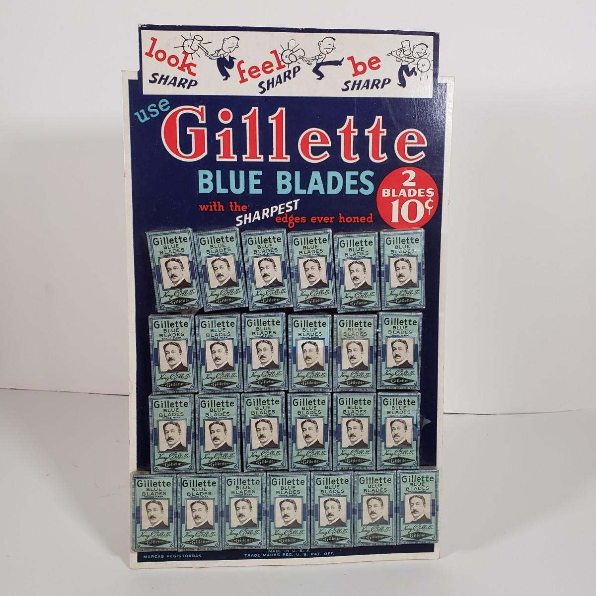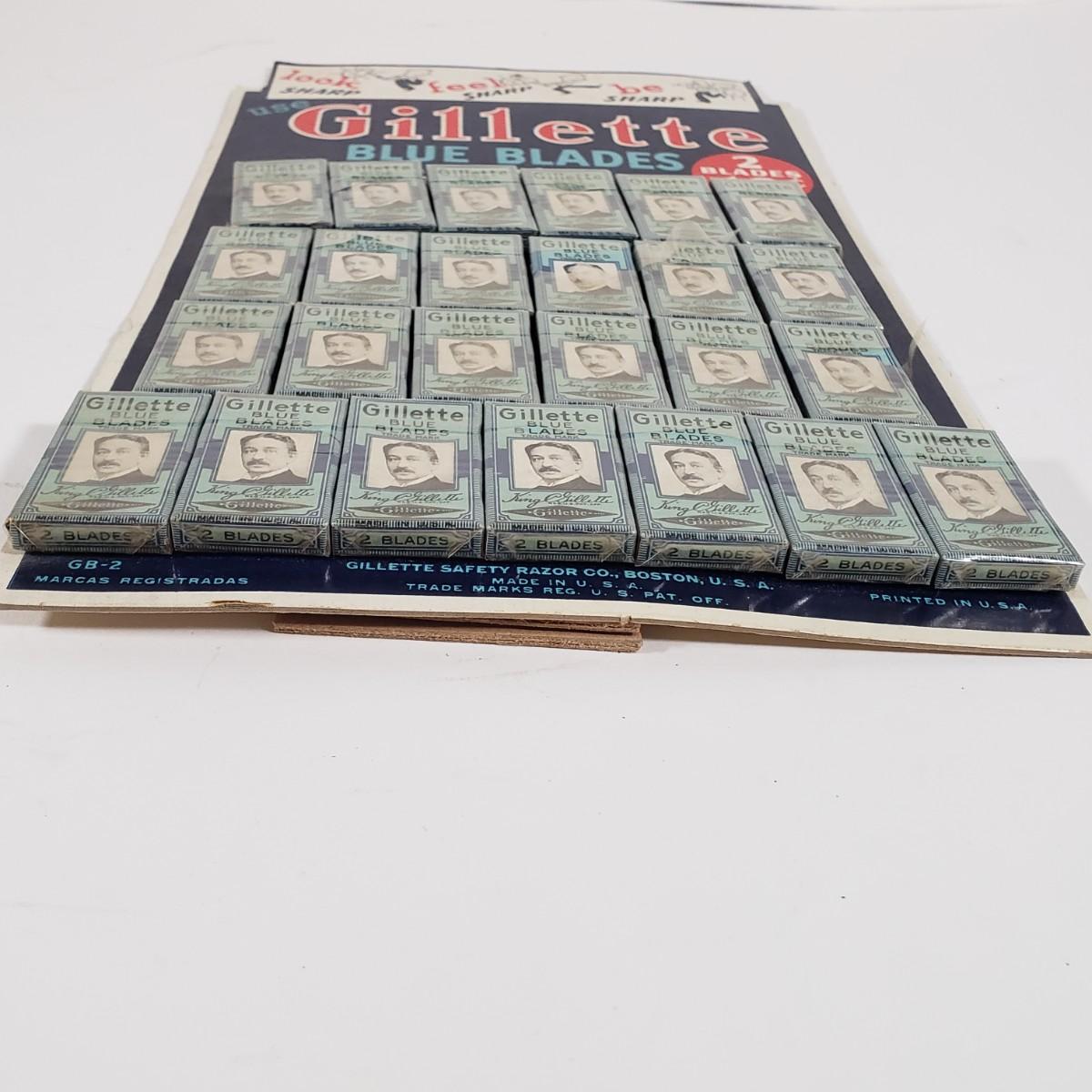 LOT 82X: Vintage Gillette Blue Blades Countertop Advertising Display with 25 Original Packs