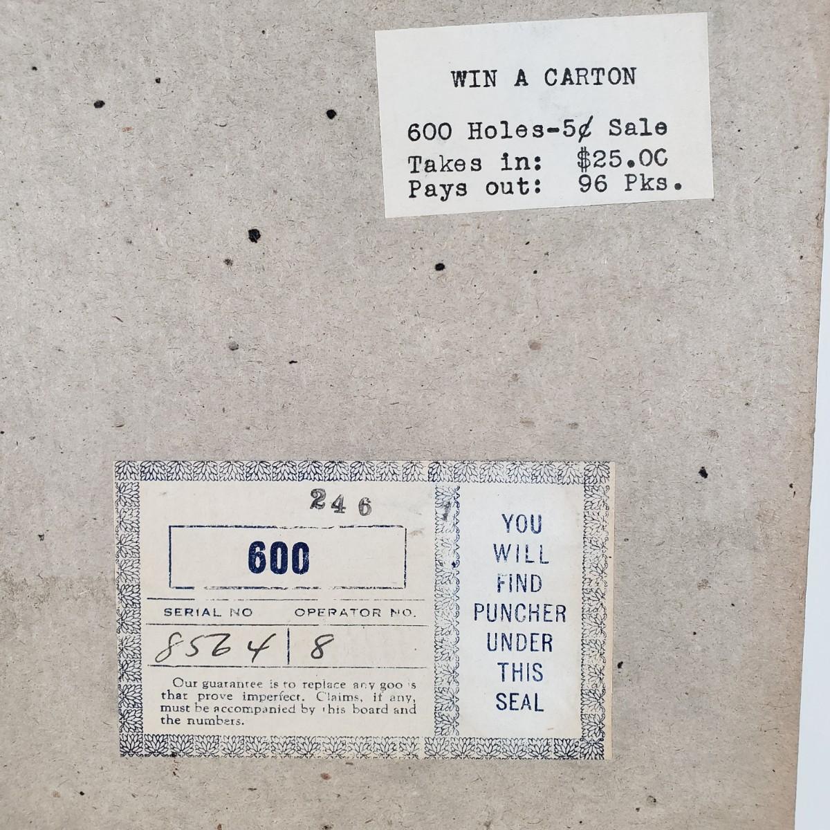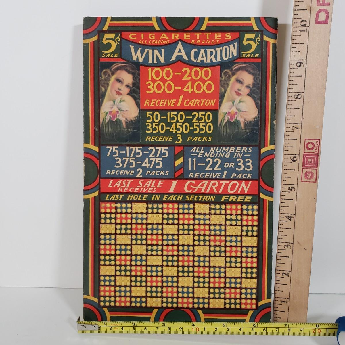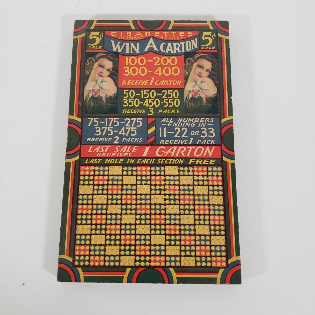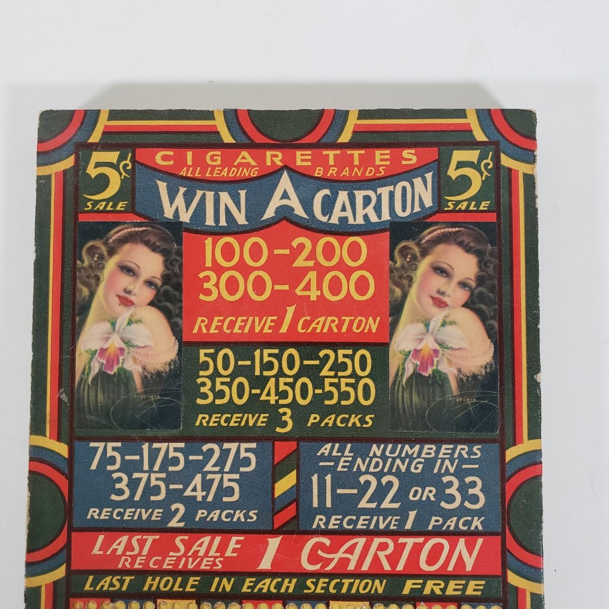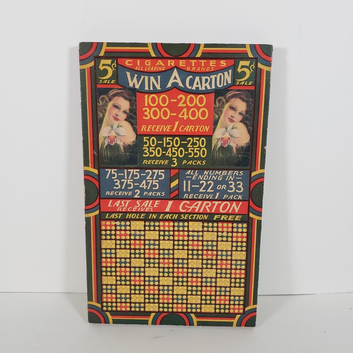 LOT 87X: Vintage Cigarette Carton Winner Punchboard Countertop Gambling Game