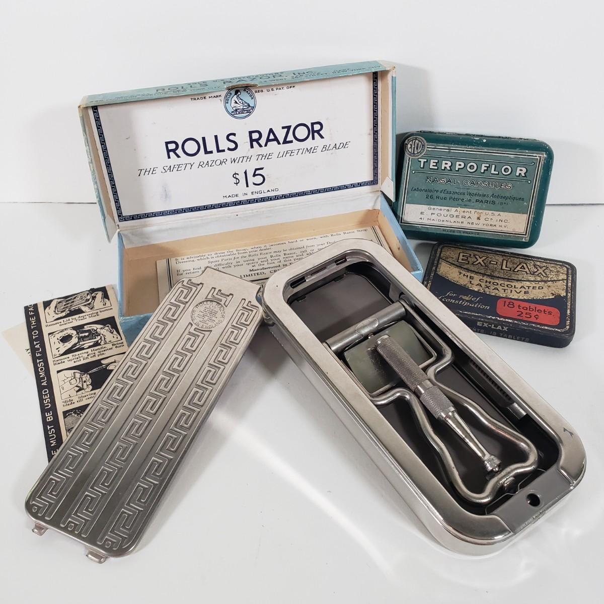 LOT 88X: Vintage Rolls Razor, EX Lax and Terpoflor Tins