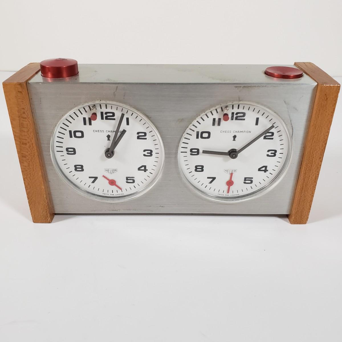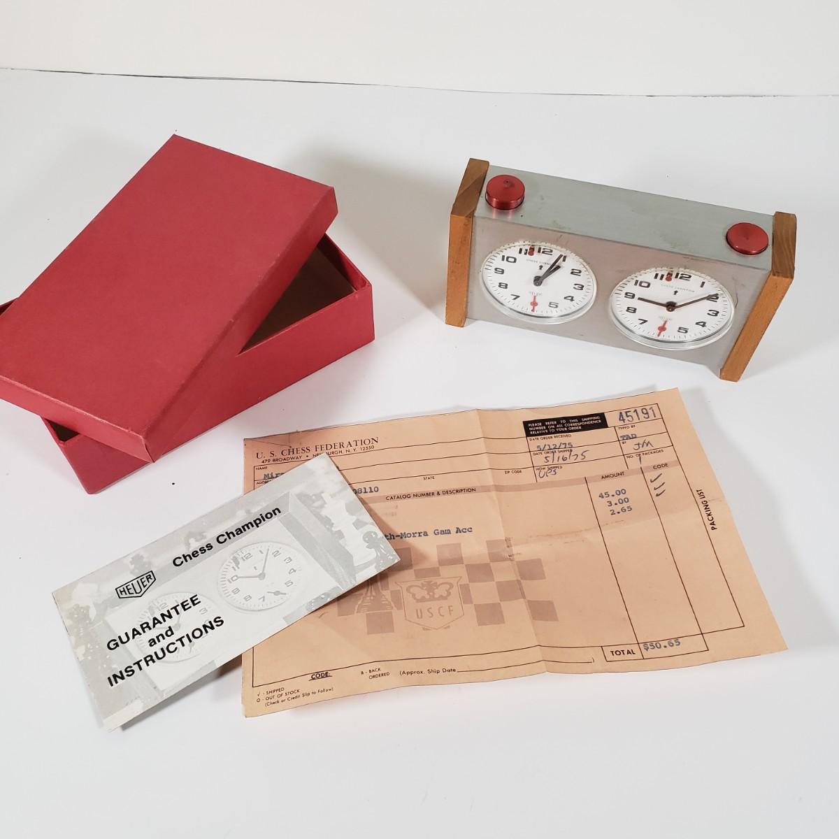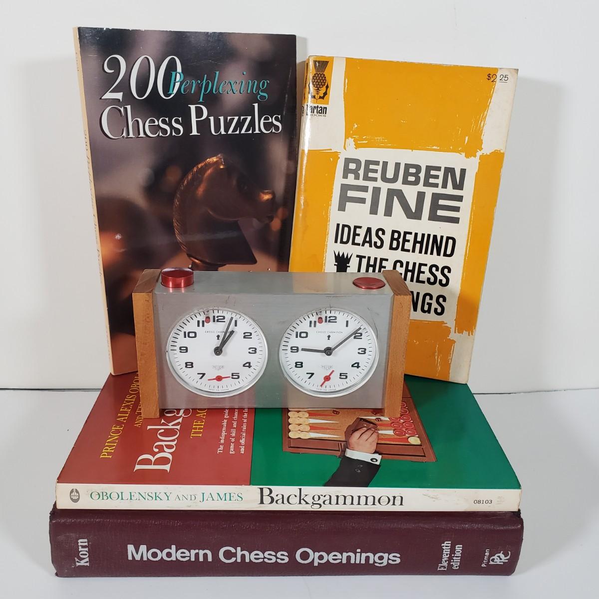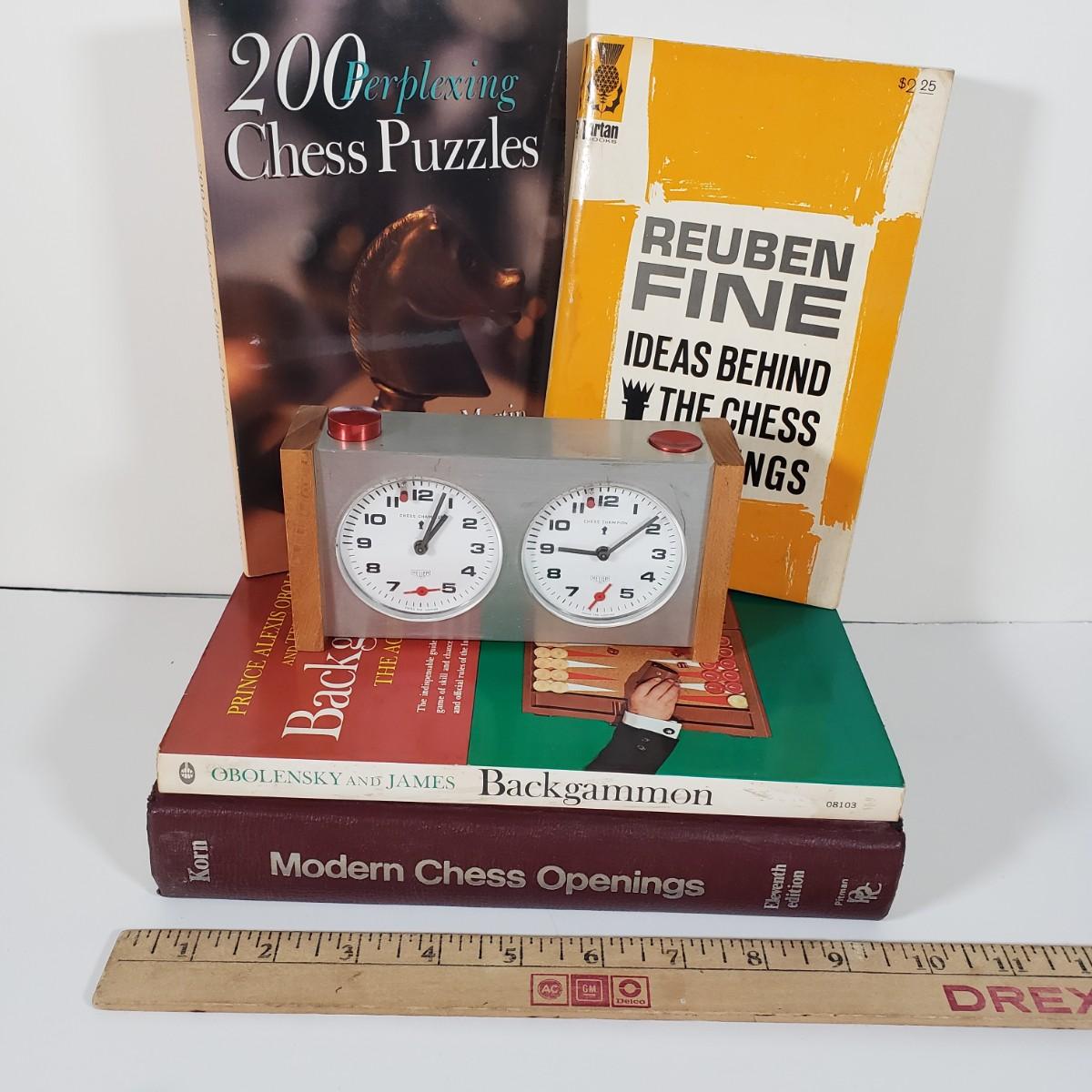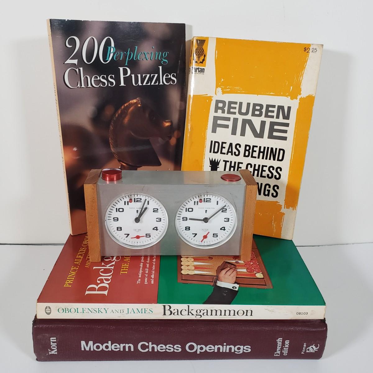 LOT 98X: Chess Lovers Lot; Heuer Chess Champion Clock and Books