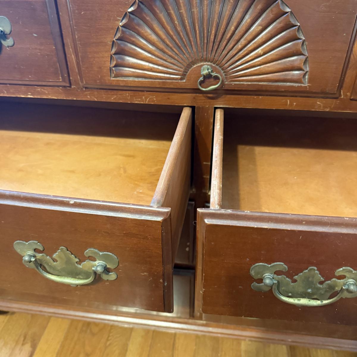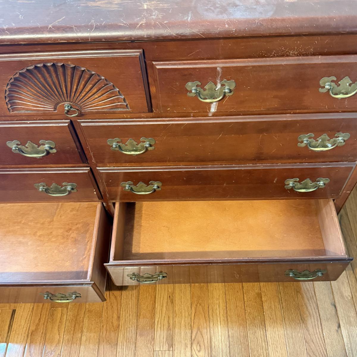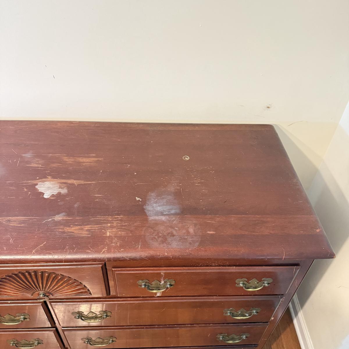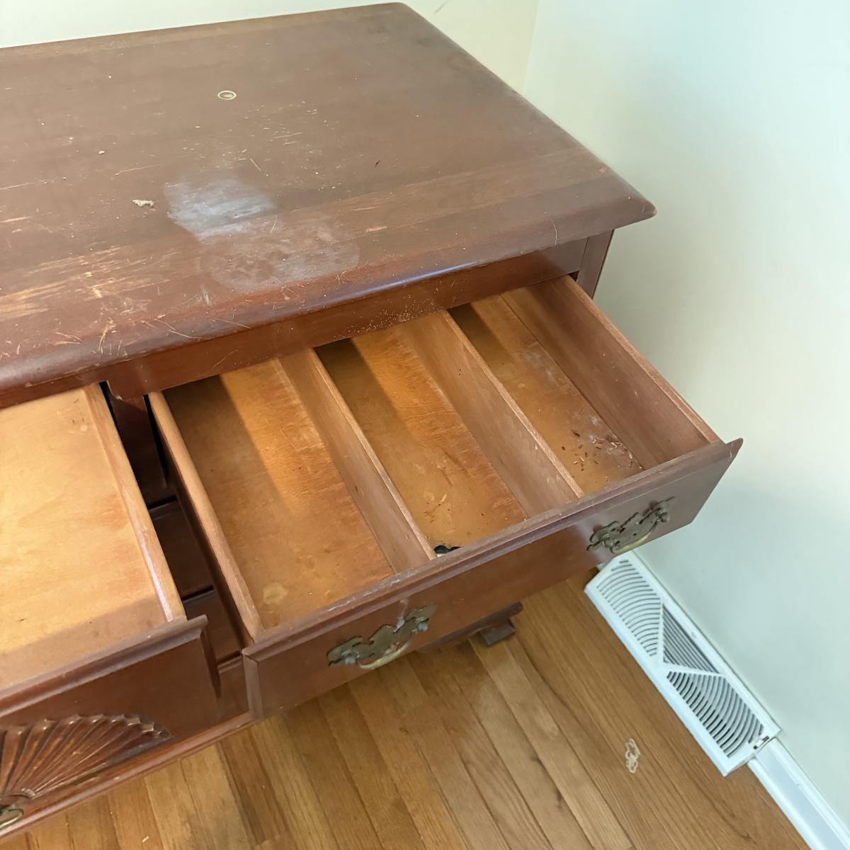 LOT 107D: Vintage 1960s Lacquer & Preservative 405 Cherry Chippendale Double Dresser