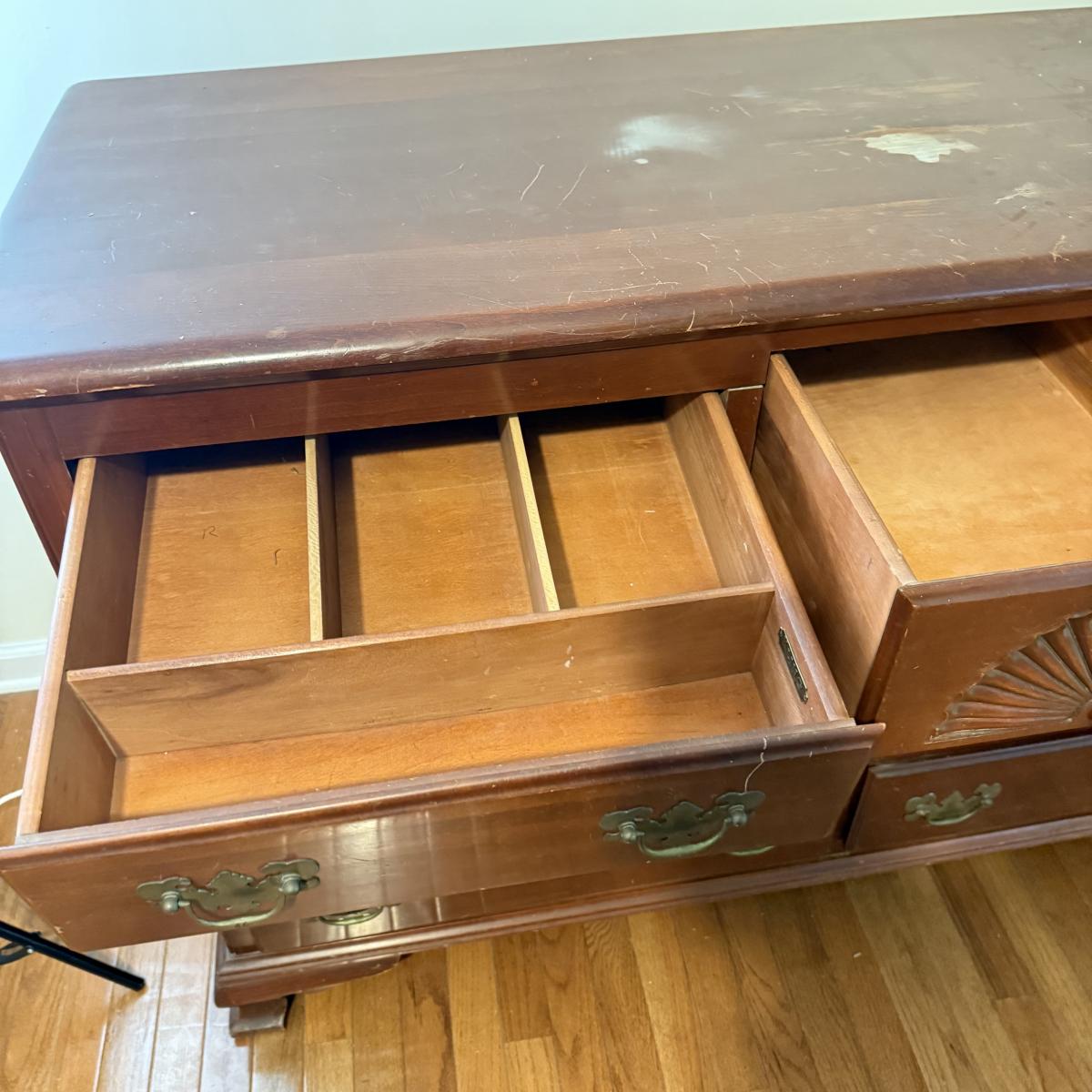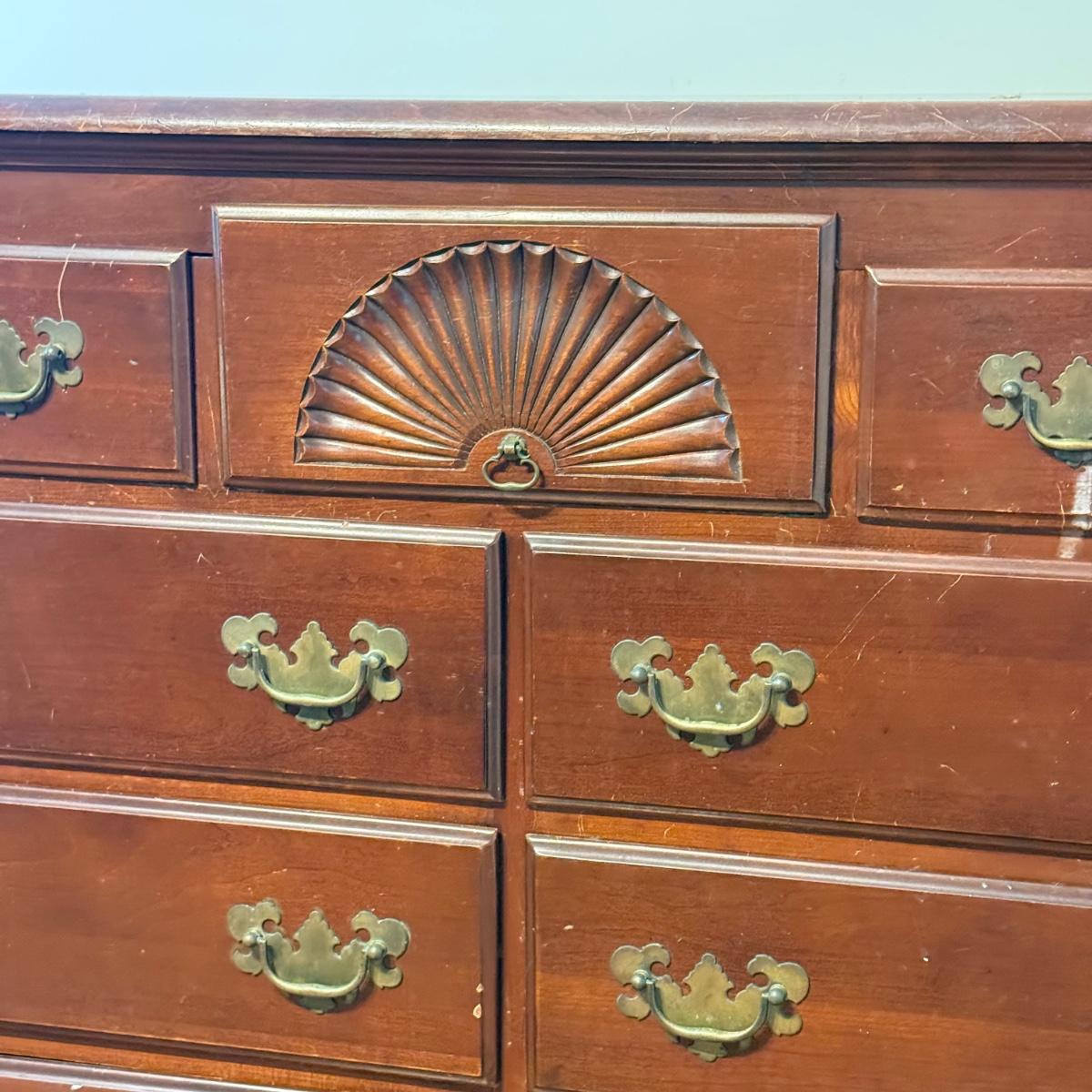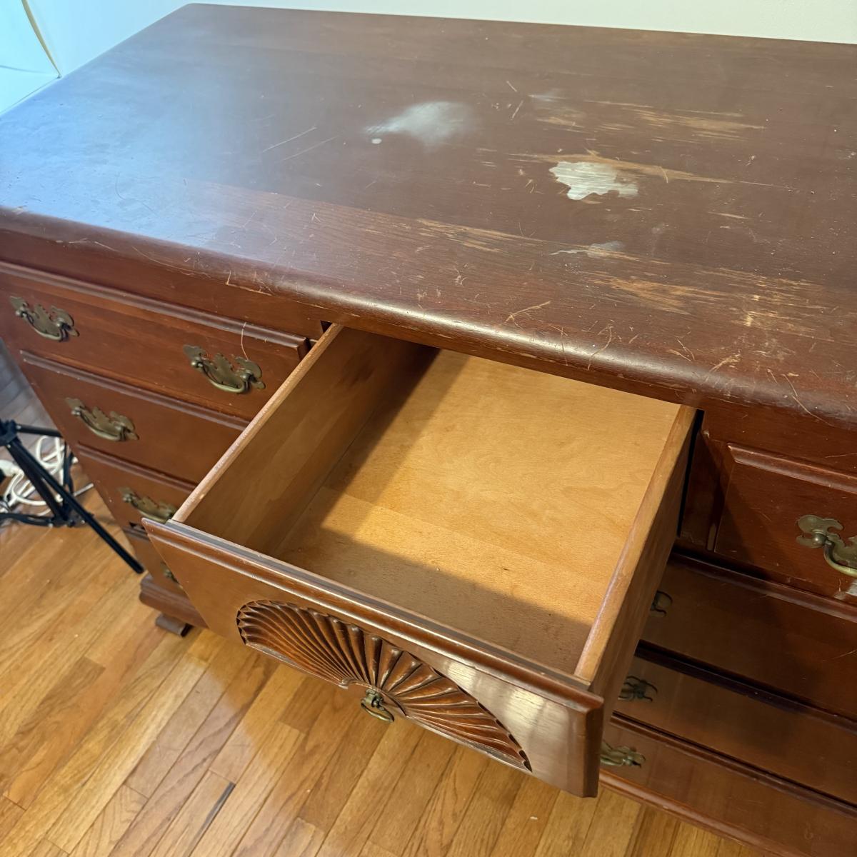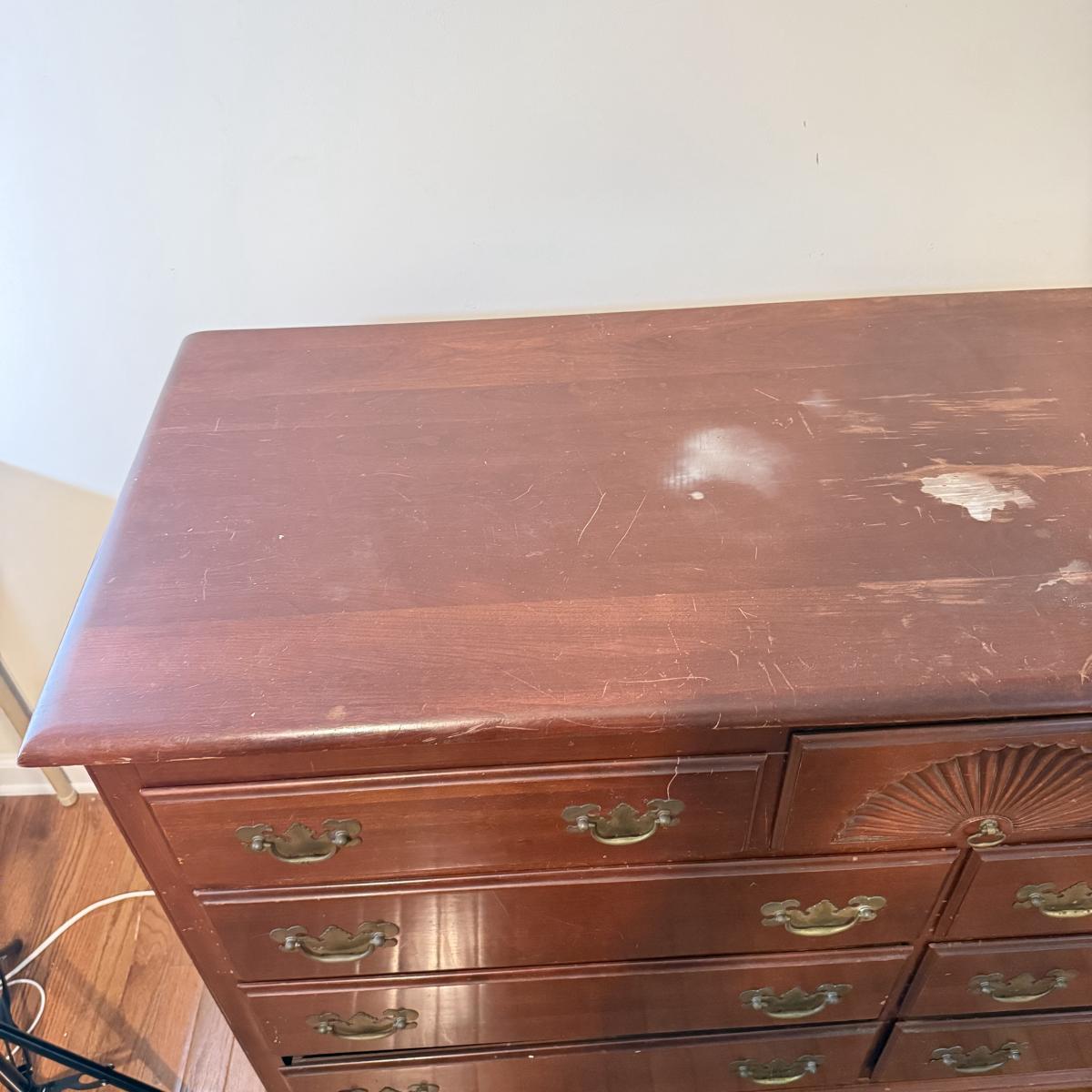 LOT 107D: Vintage 1960s Lacquer & Preservative 405 Cherry Chippendale Double Dresser
