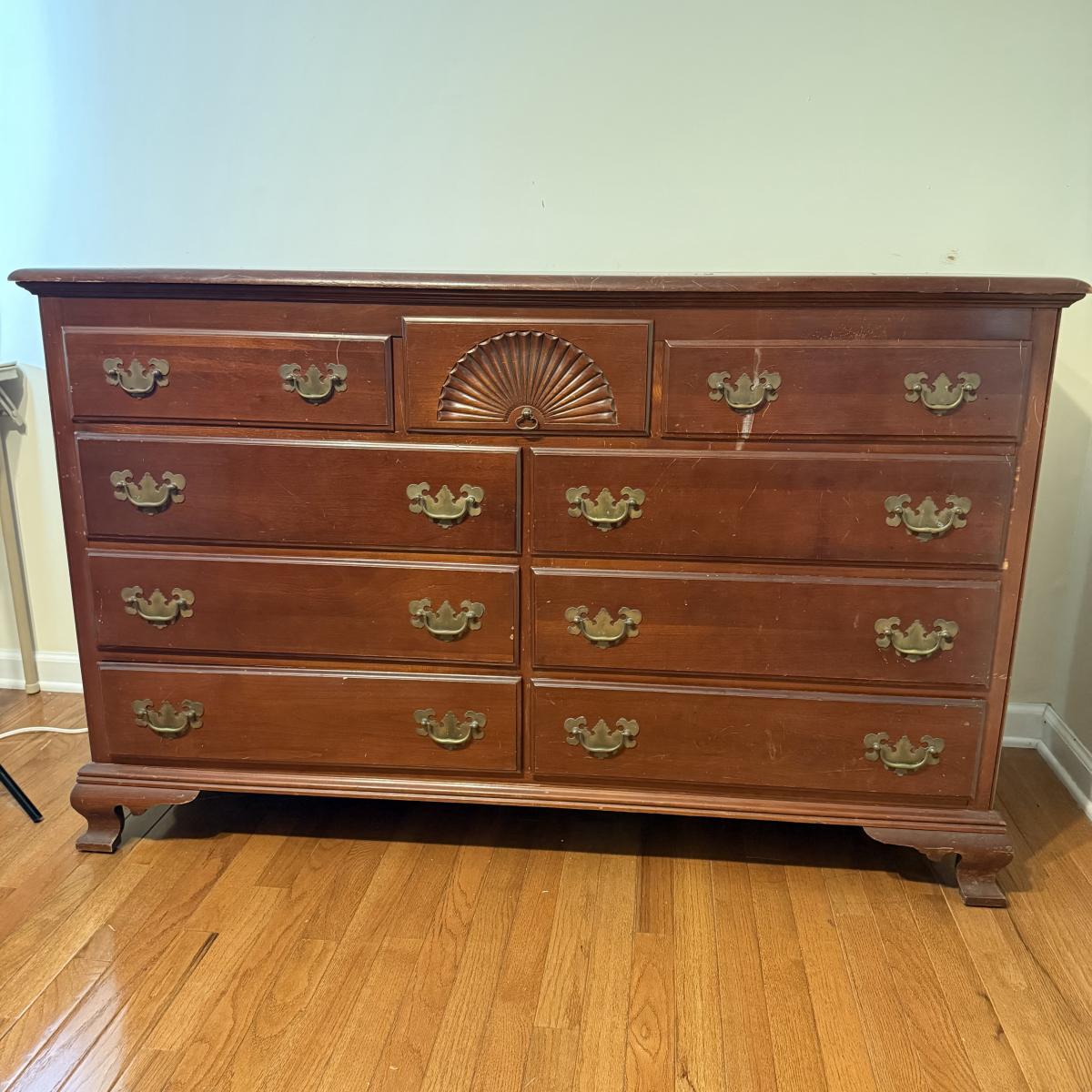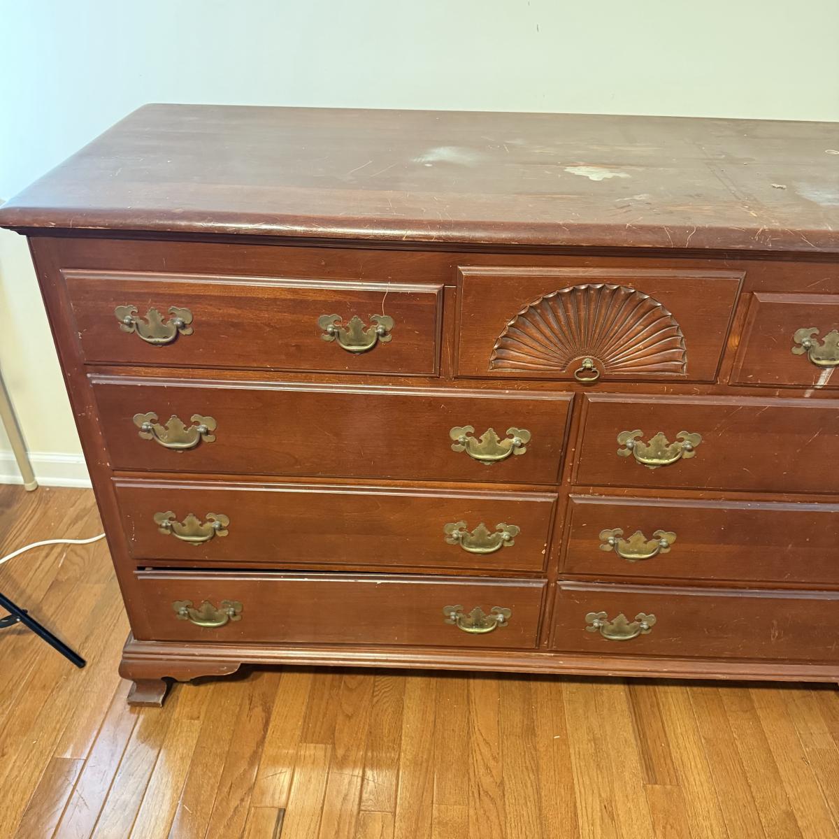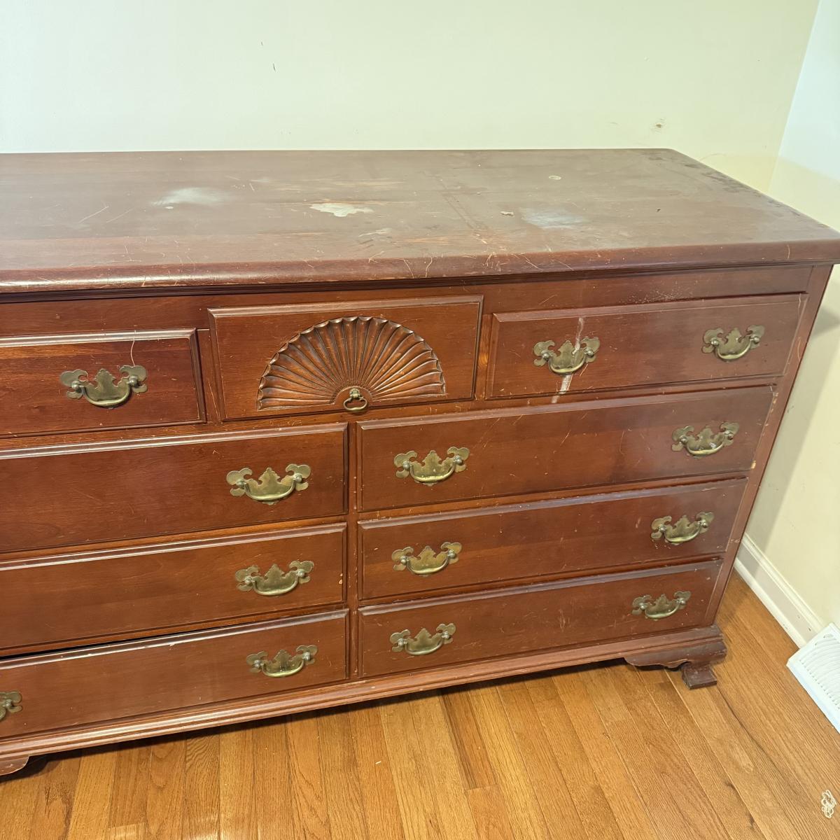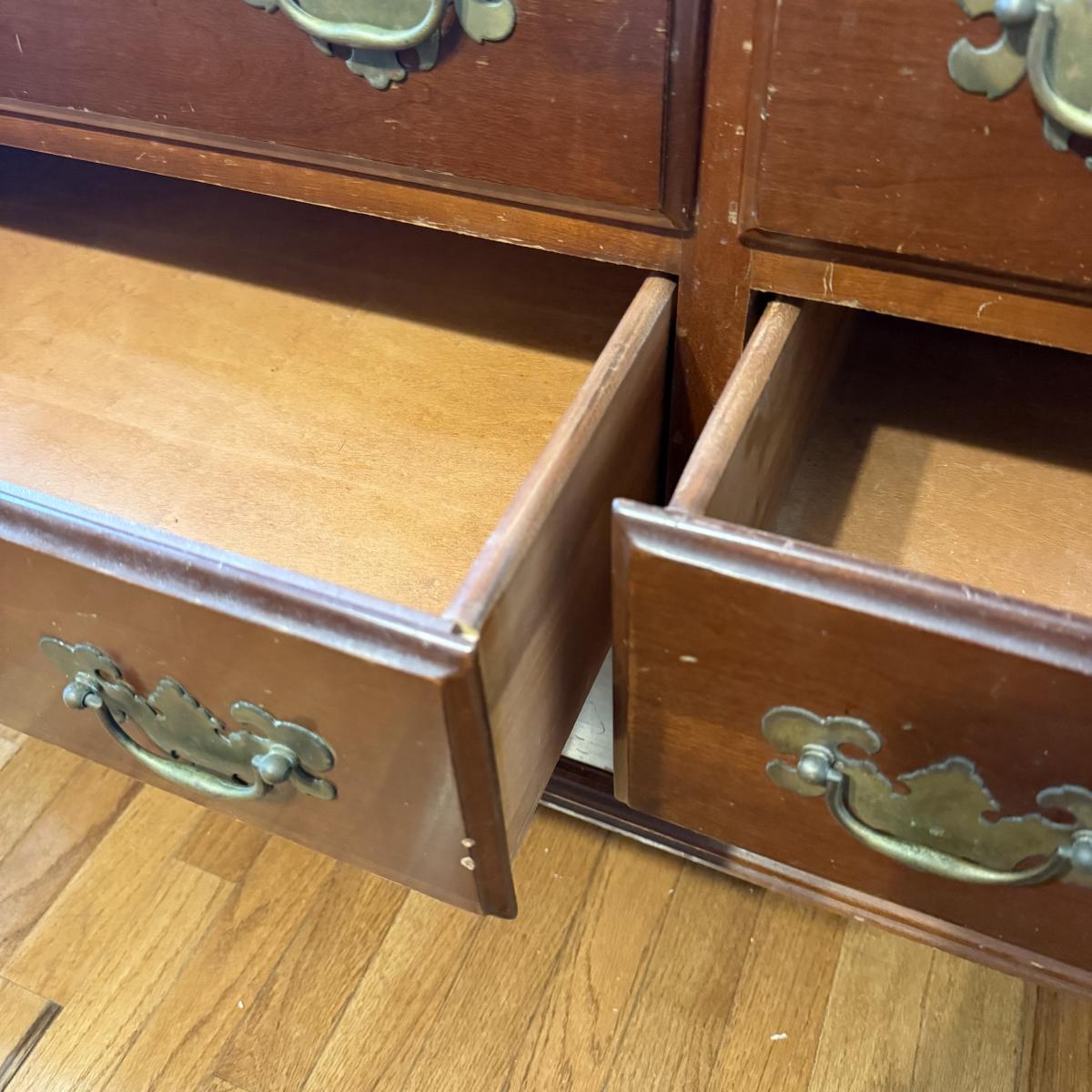 LOT 107D: Vintage 1960s Lacquer & Preservative 405 Cherry Chippendale Double Dresser