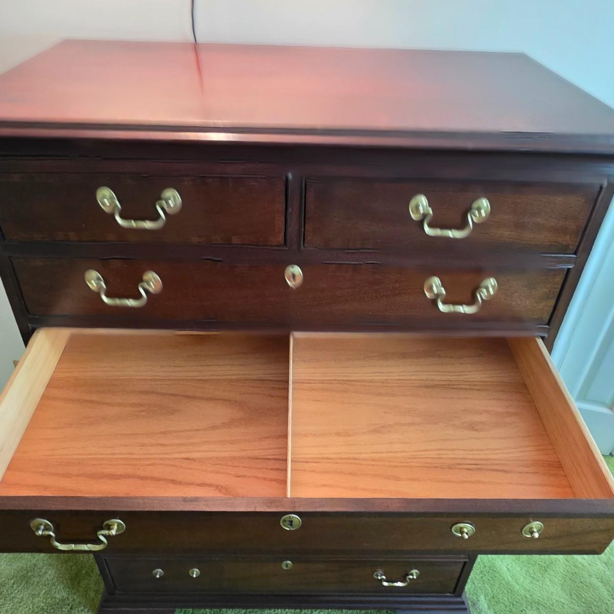 Item is missing two drawer pulls. Please see all pictures as they are the best representation of the items. The pictures show condition, measurements if taken, and what is included in the lot. Due to the large amount that we photograph and the time frame, we are not always able to take measurements. All items unless noted, are pre-owned and have been used. If you purchased furniture, you must bring help. We do not allow one person to carry large furniture out on their own. Bring help, tools and a truck for the safety of our client’s homes, and your personal safety. Any damages that result to the property including walls, and floors due to moving of the furniture will be charged to the buyer. Company policy. Thank you.