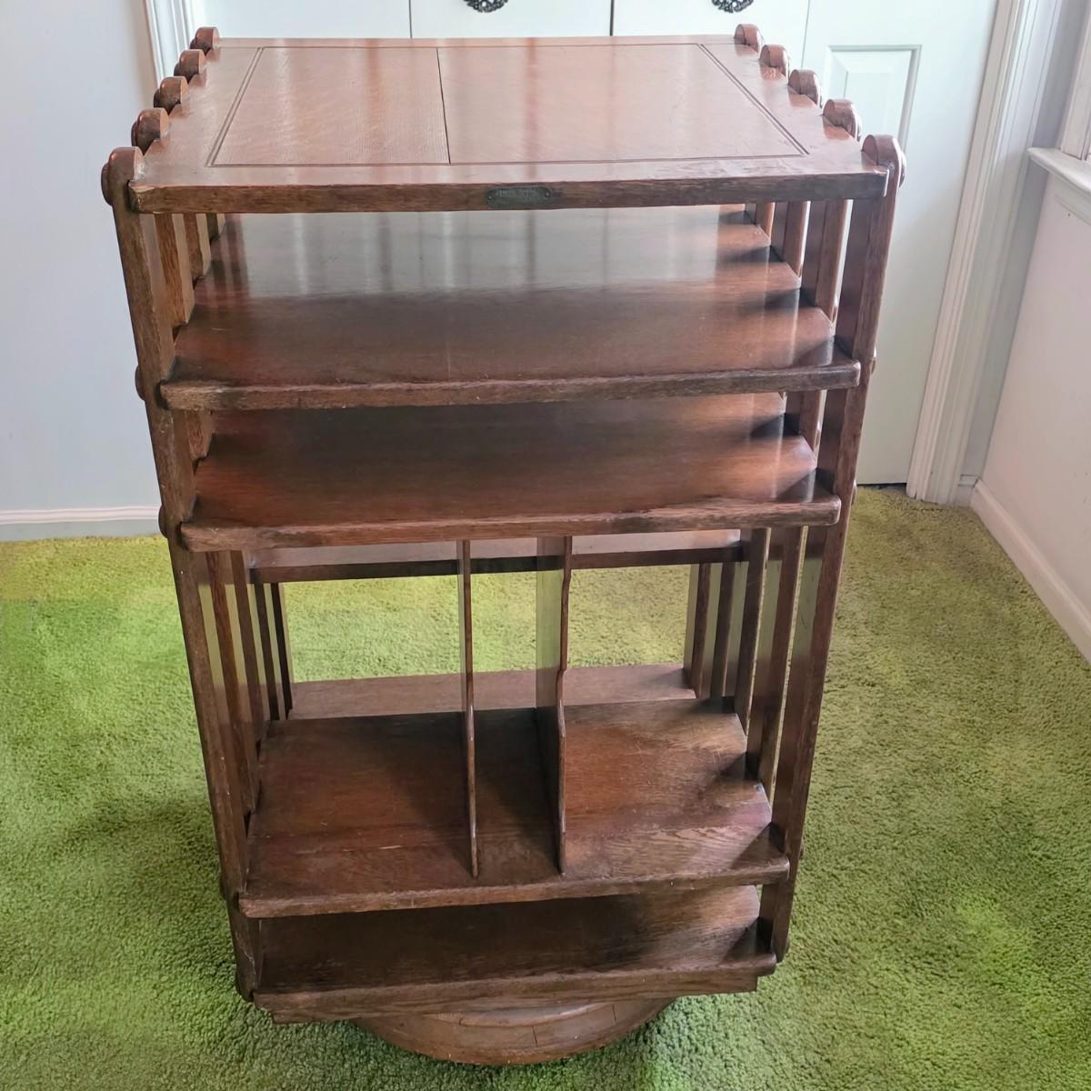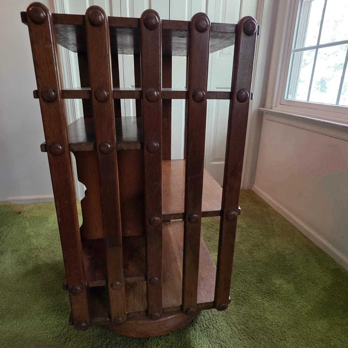 LOT 137Y: Vintage Oak Revolving Records/Bookcase