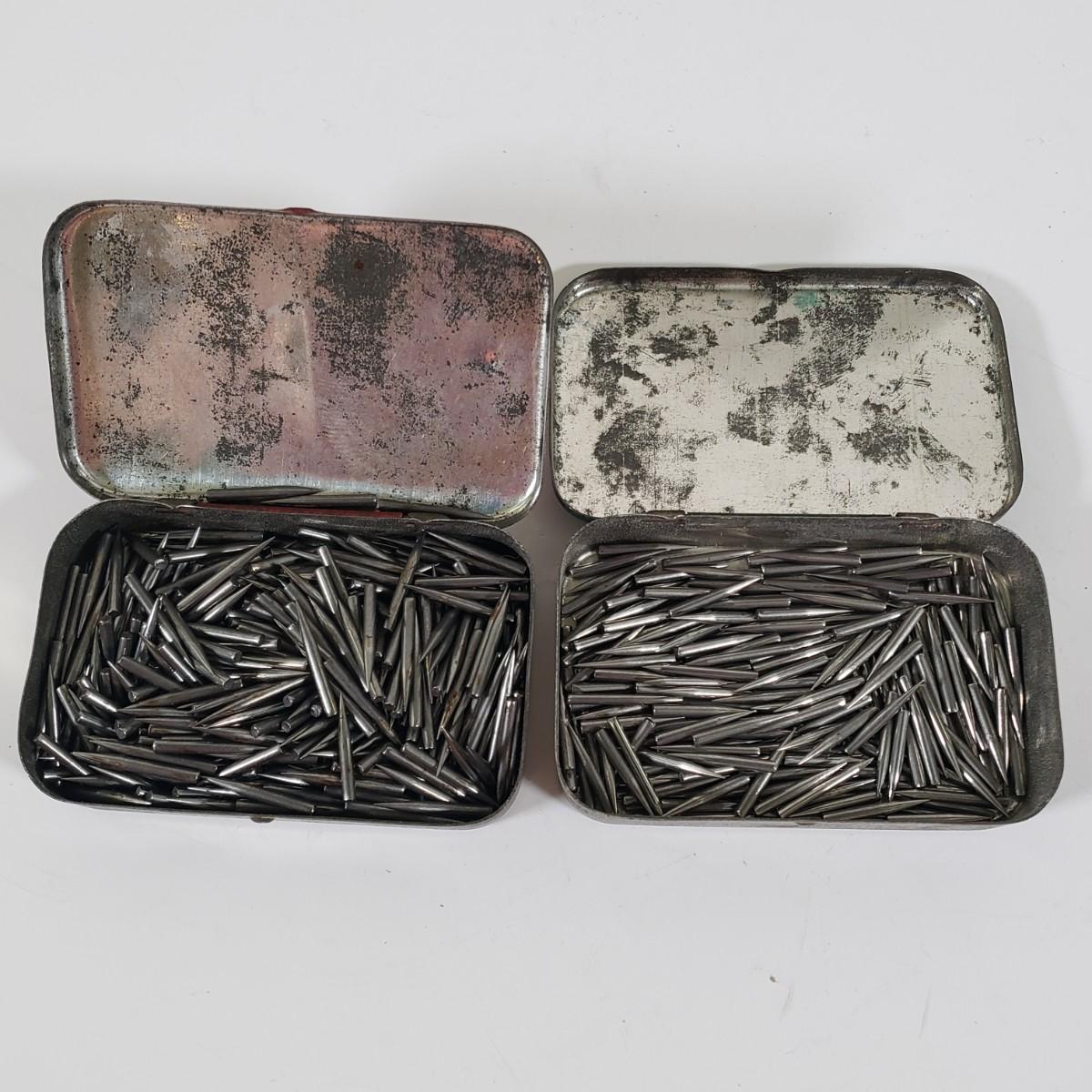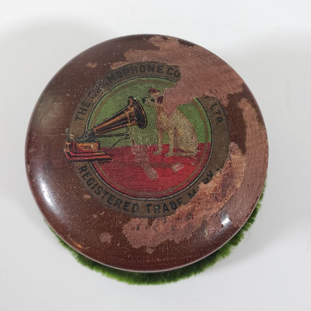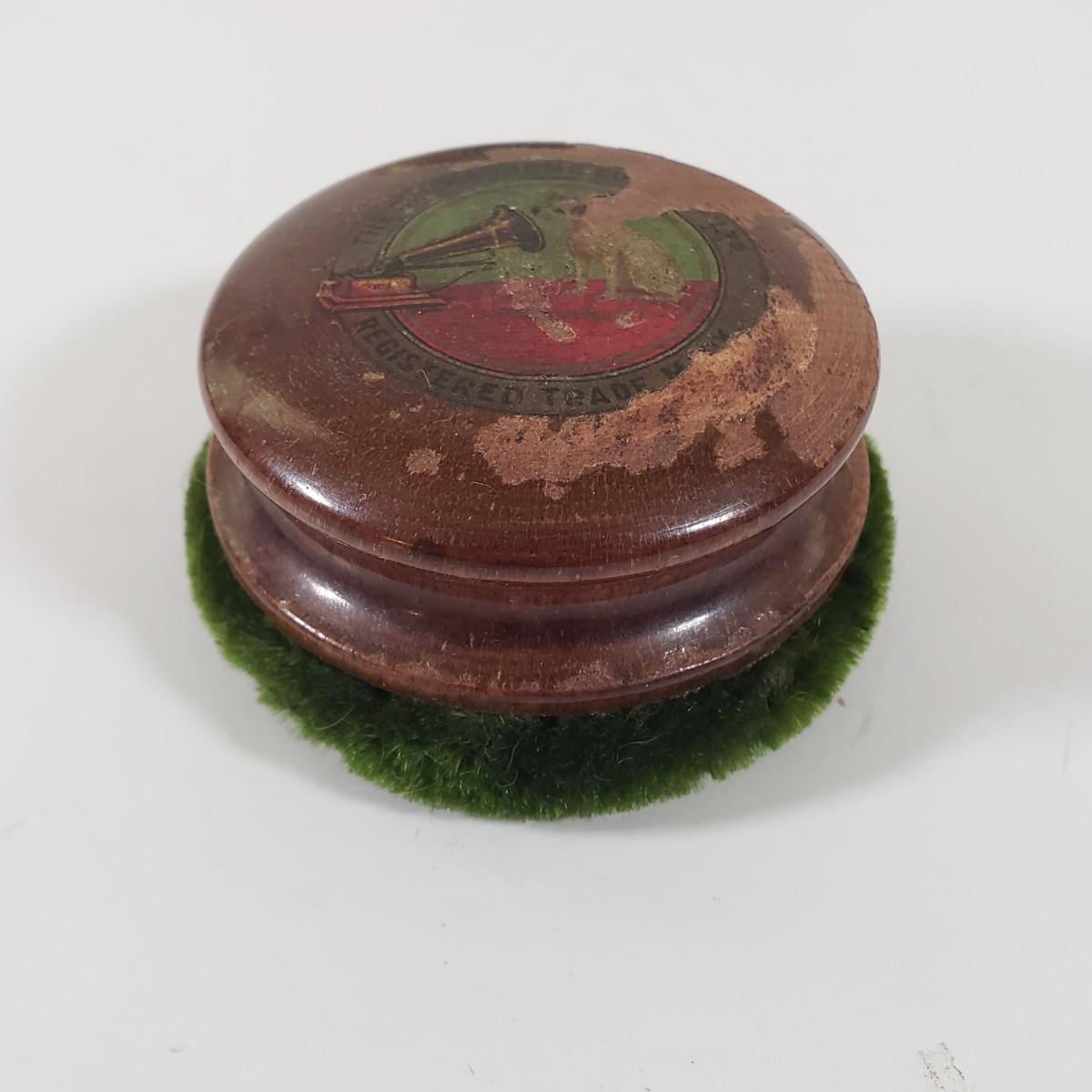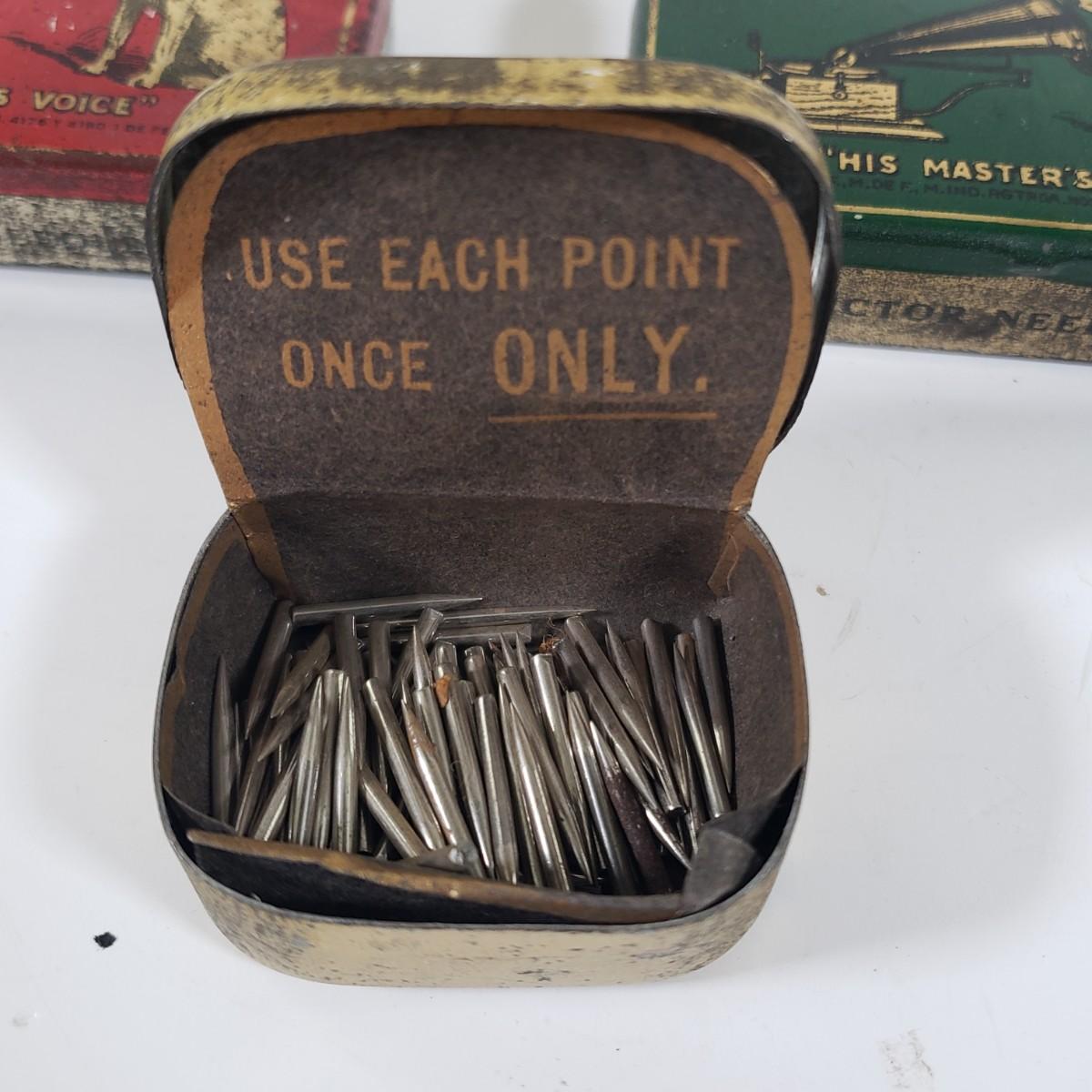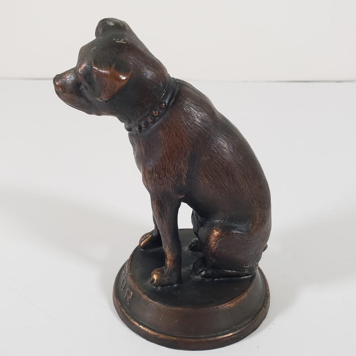 LOT 142X: His Master's Voice Collection; Nipper Dog Display/Hood Ornament, TIn Bank, Needle Tins, and More