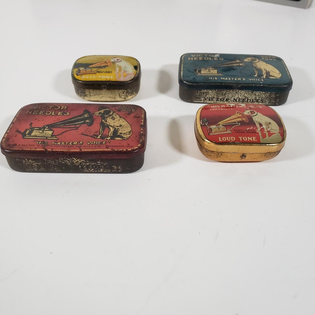 LOT 146X: Victor Phonograph Needles in Collector Tins, Sealed Playing Cards, Postcard, and More