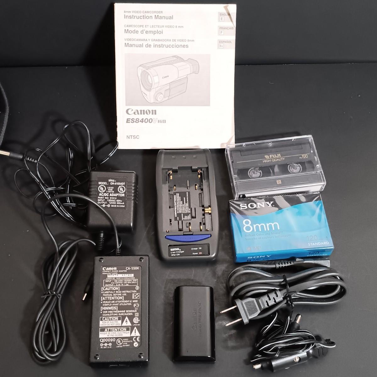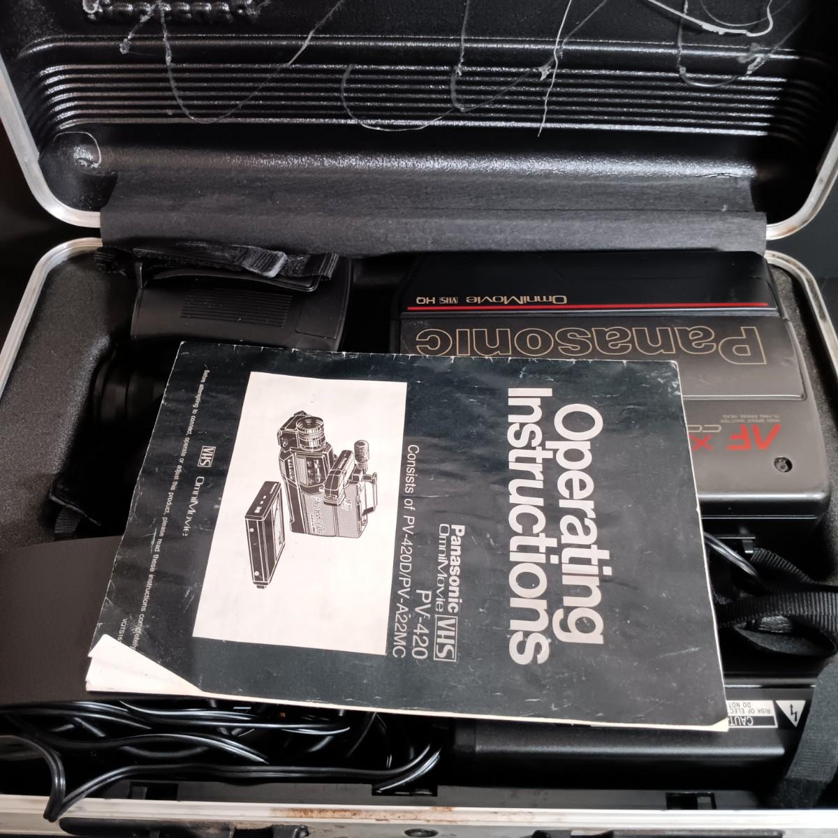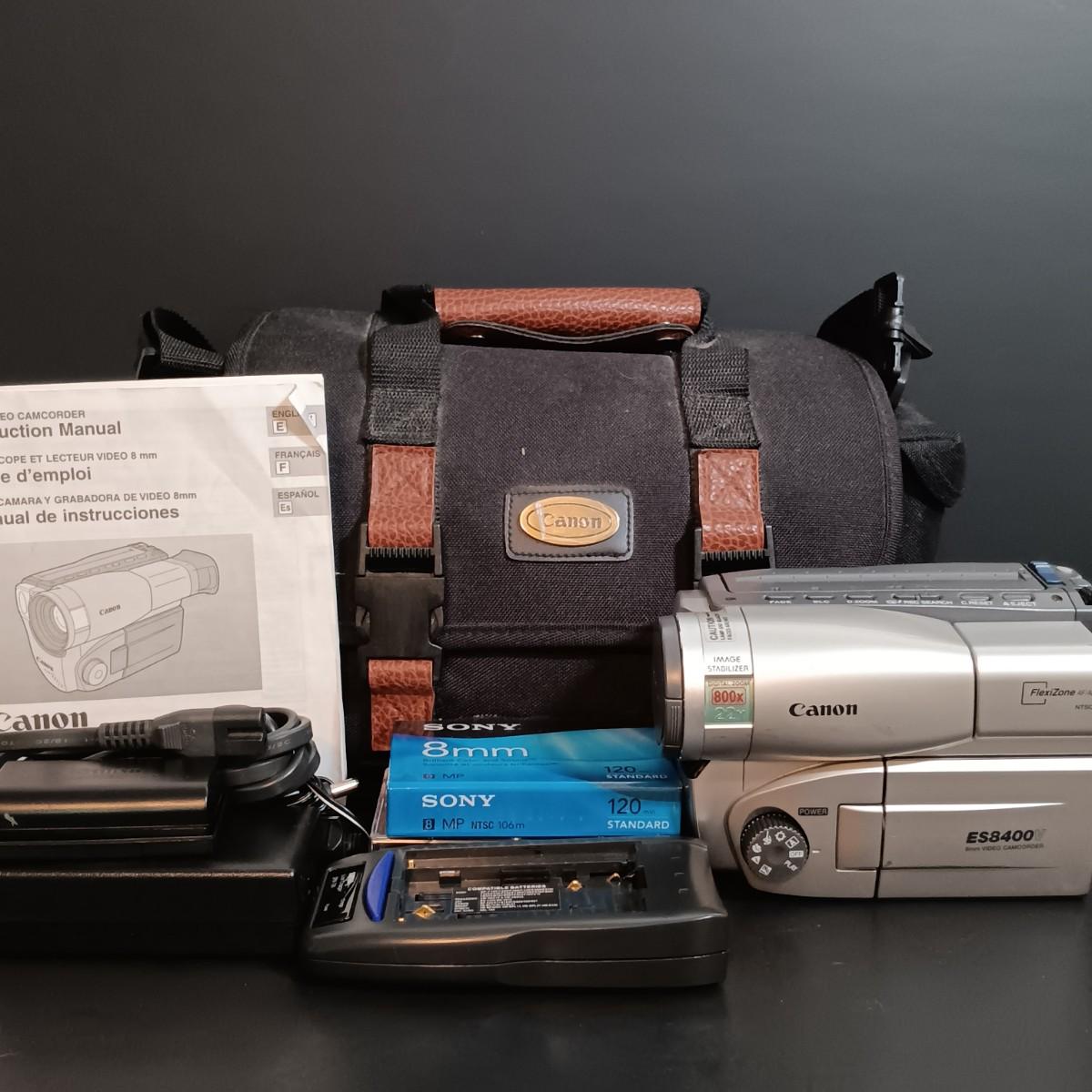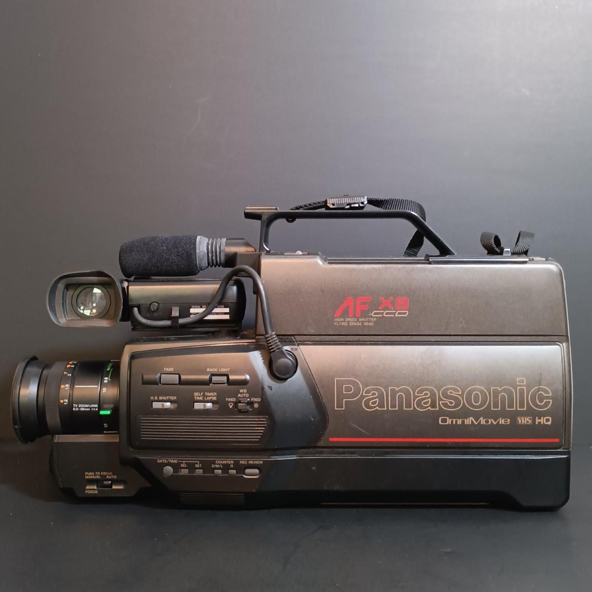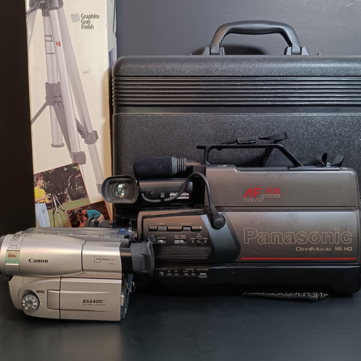 LOT 7: Panasonic OmniMovie VHS HQ AFX8 Camcorder with Hard Shell Case, 60" Video Tripod & Canon 8mm Video Camcorder ES8400V