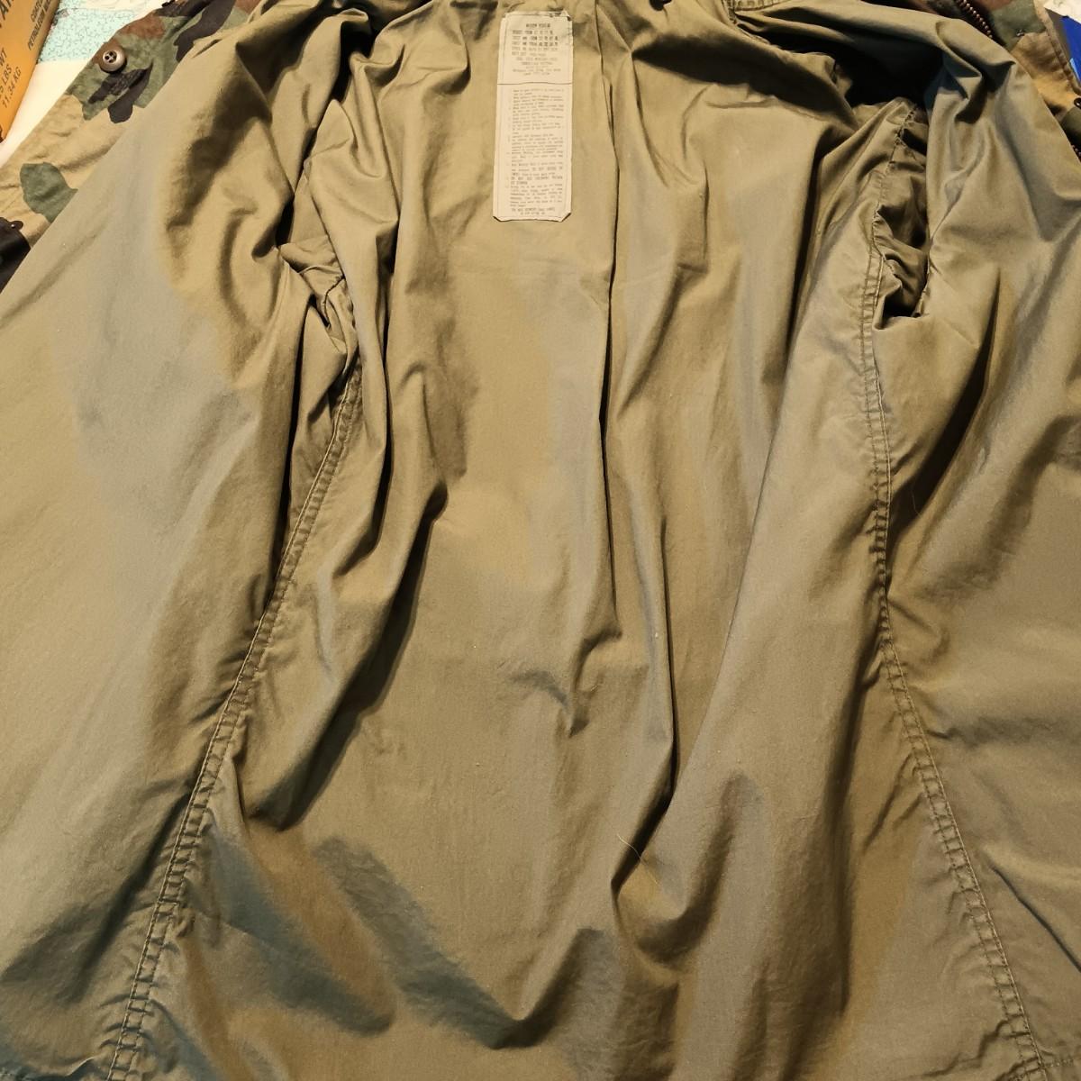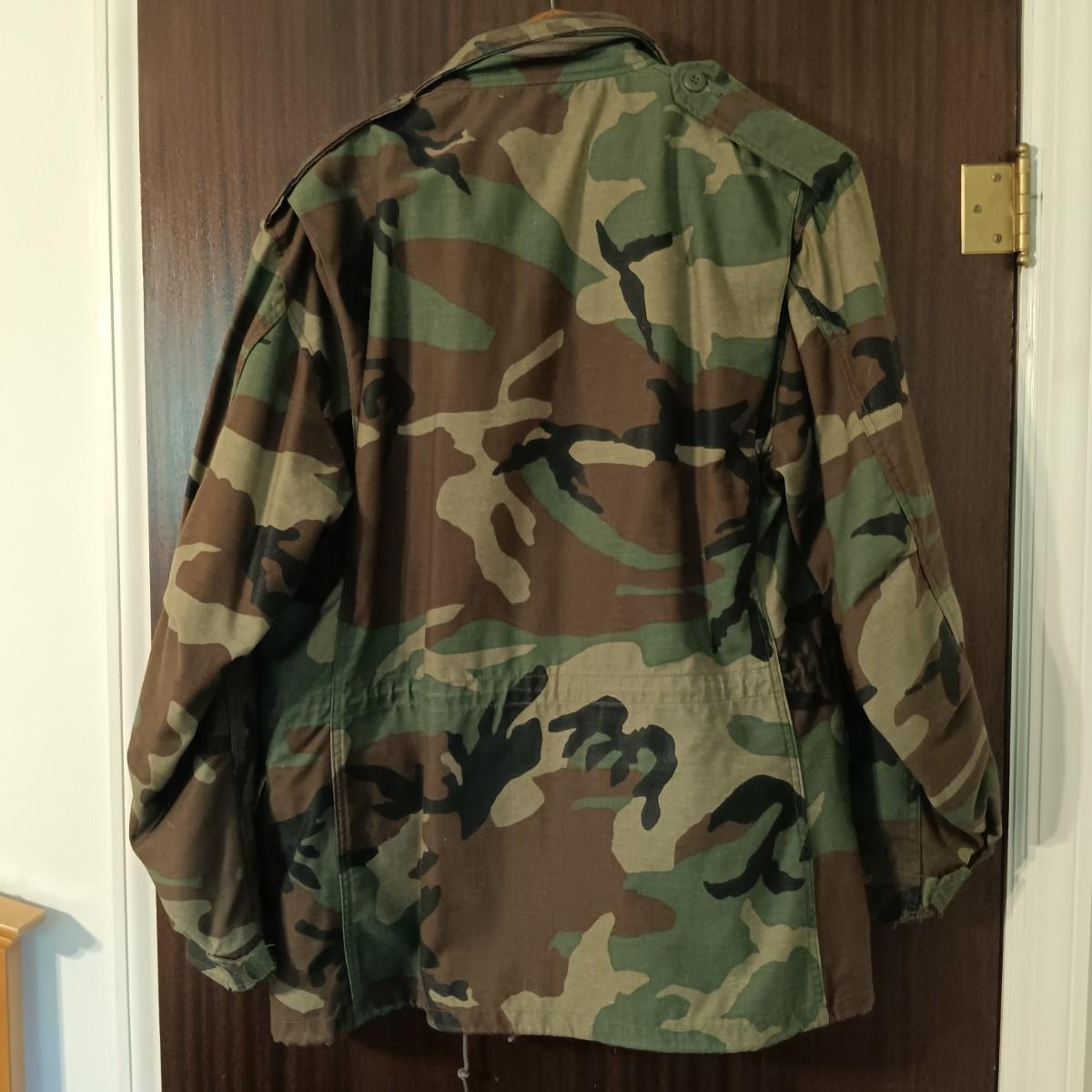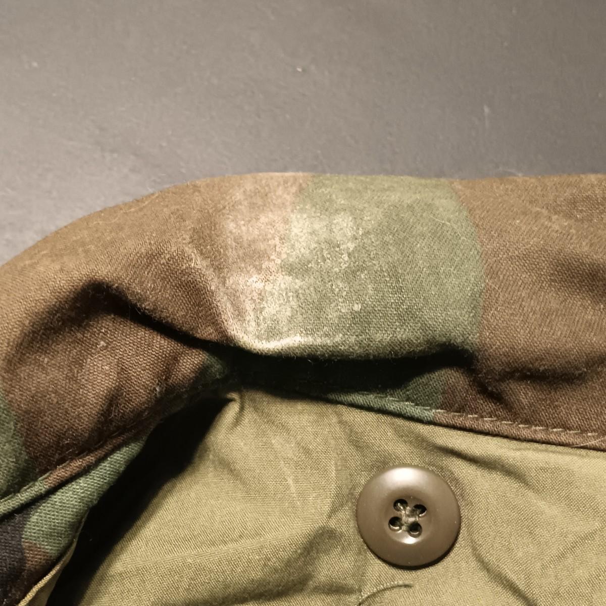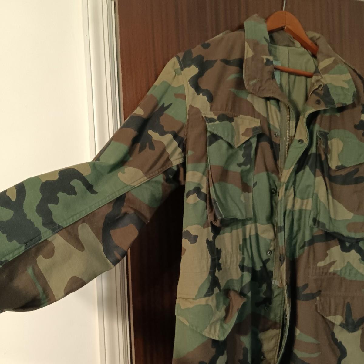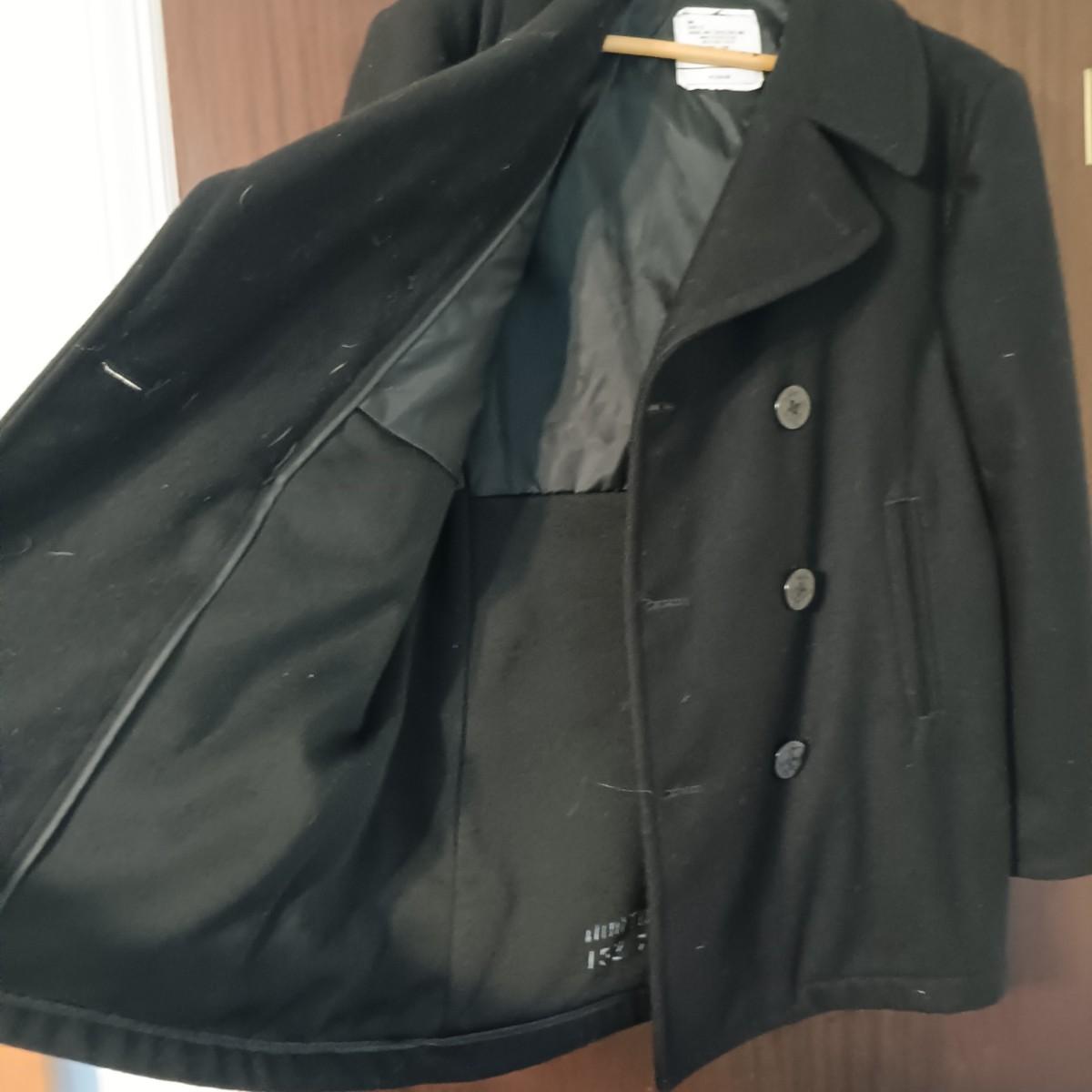 LOT 22: Vintage Military Wool Overcoat Size 38S with Camo Field Jacket Size Med Reg