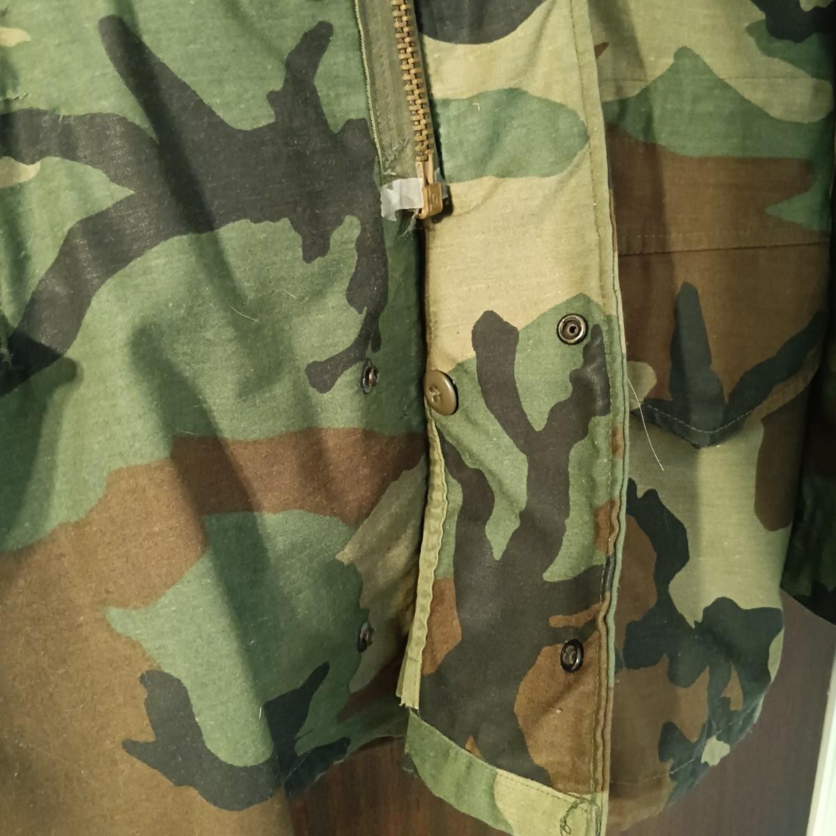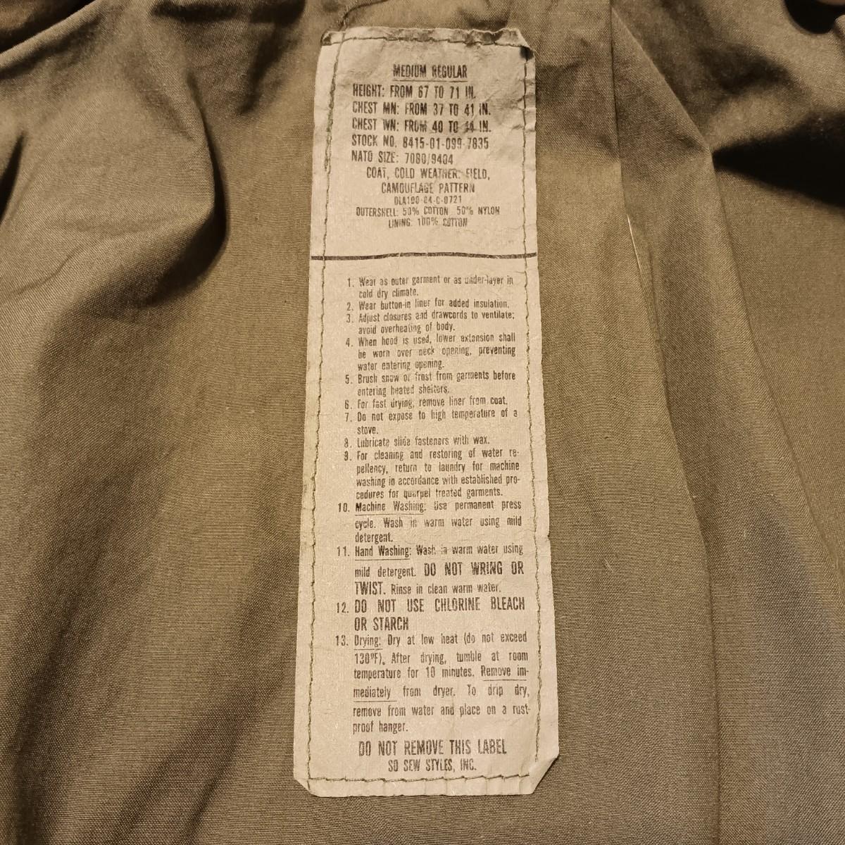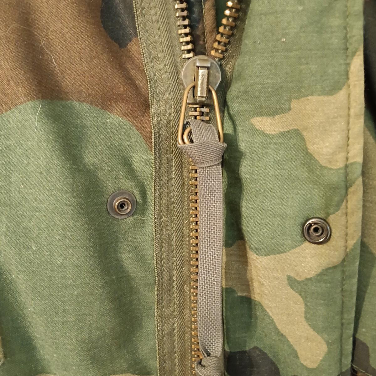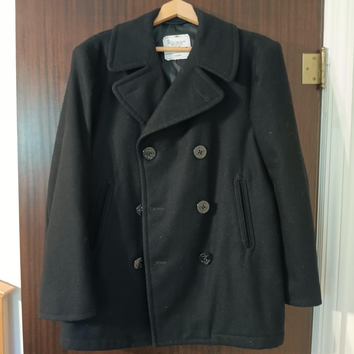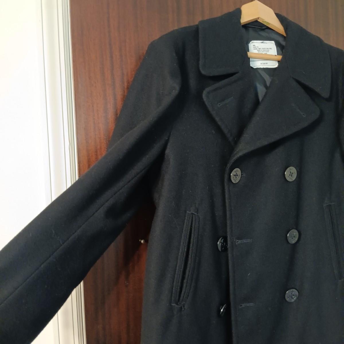 LOT 22: Vintage Military Wool Overcoat Size 38S with Camo Field Jacket Size Med Reg