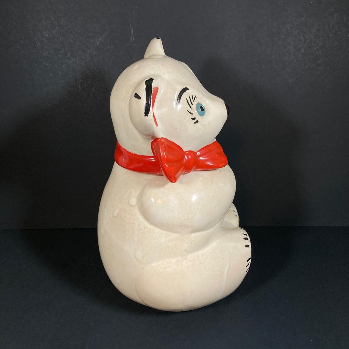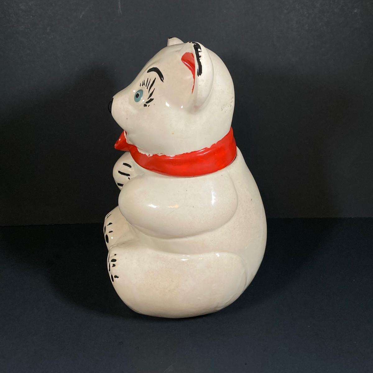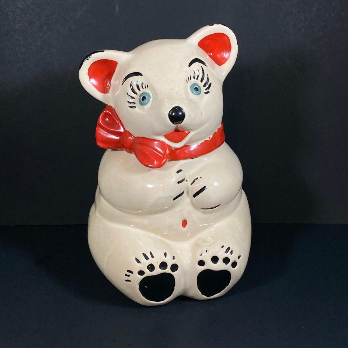 LOT 36: Vintage American Bisque Bear with Bow Cookie Jar