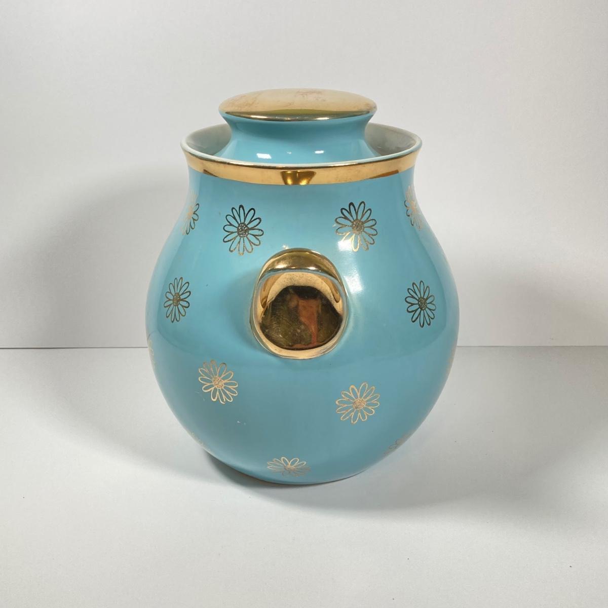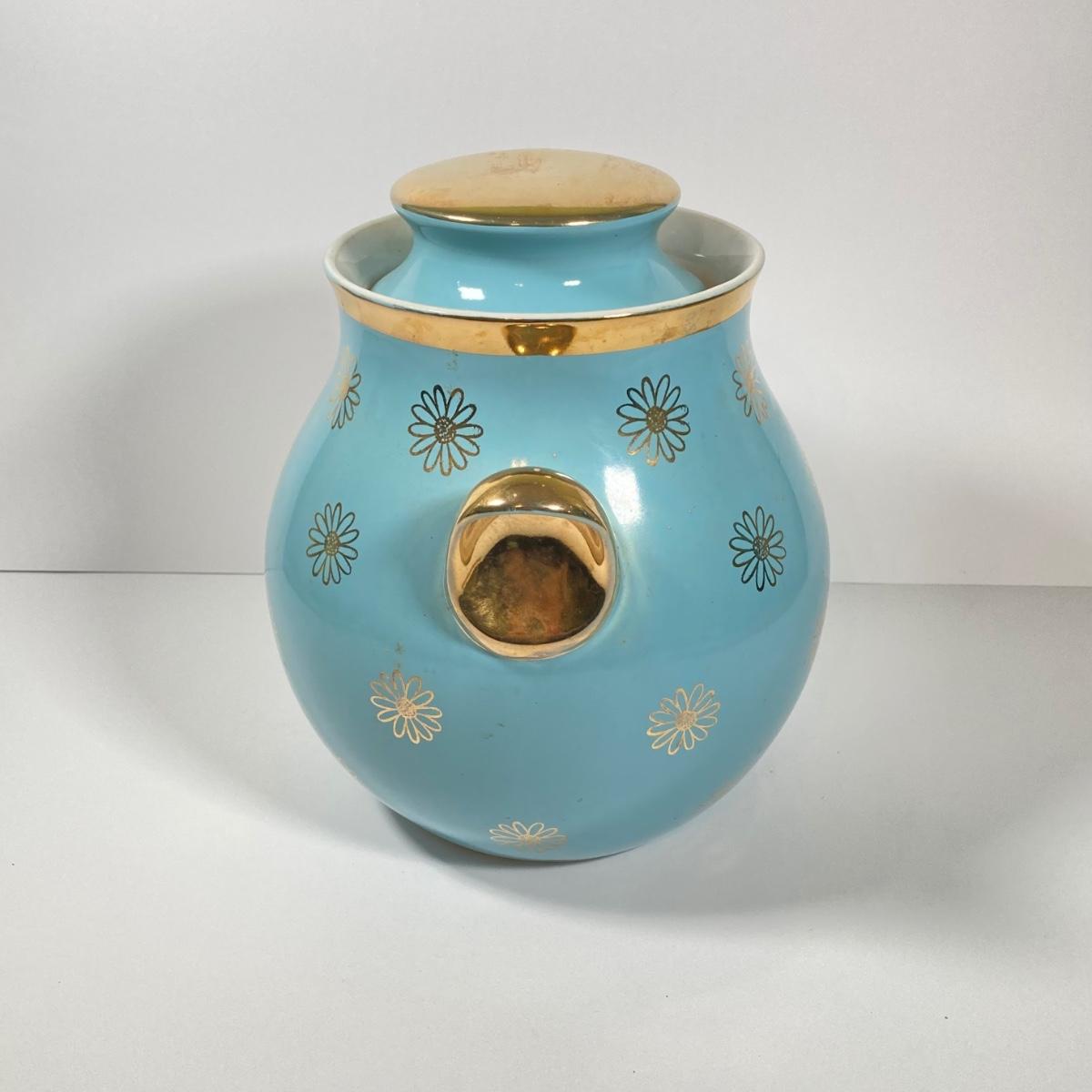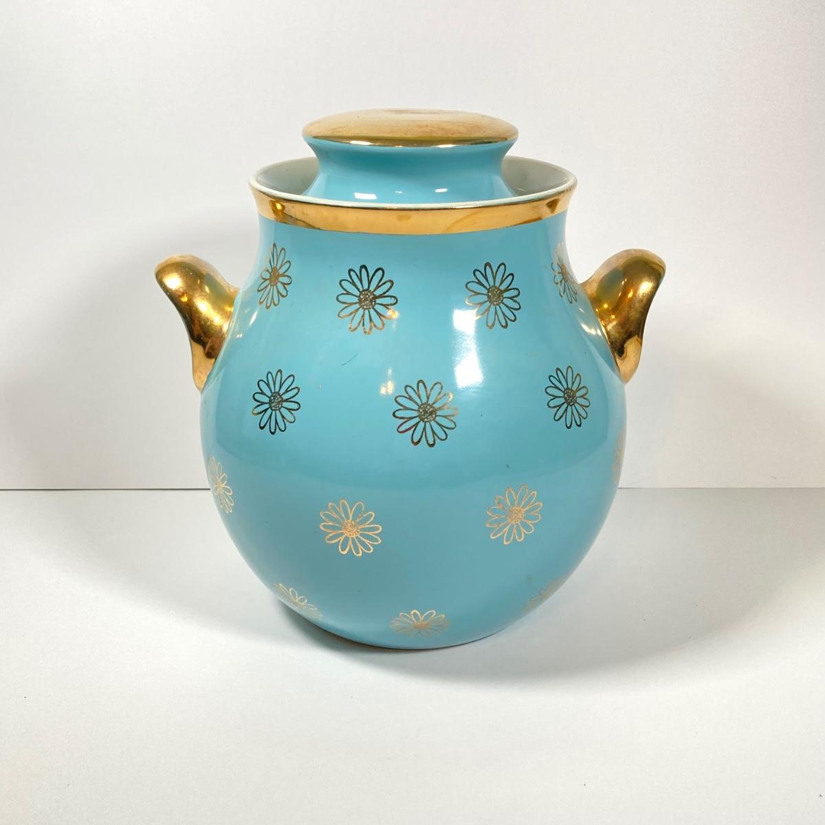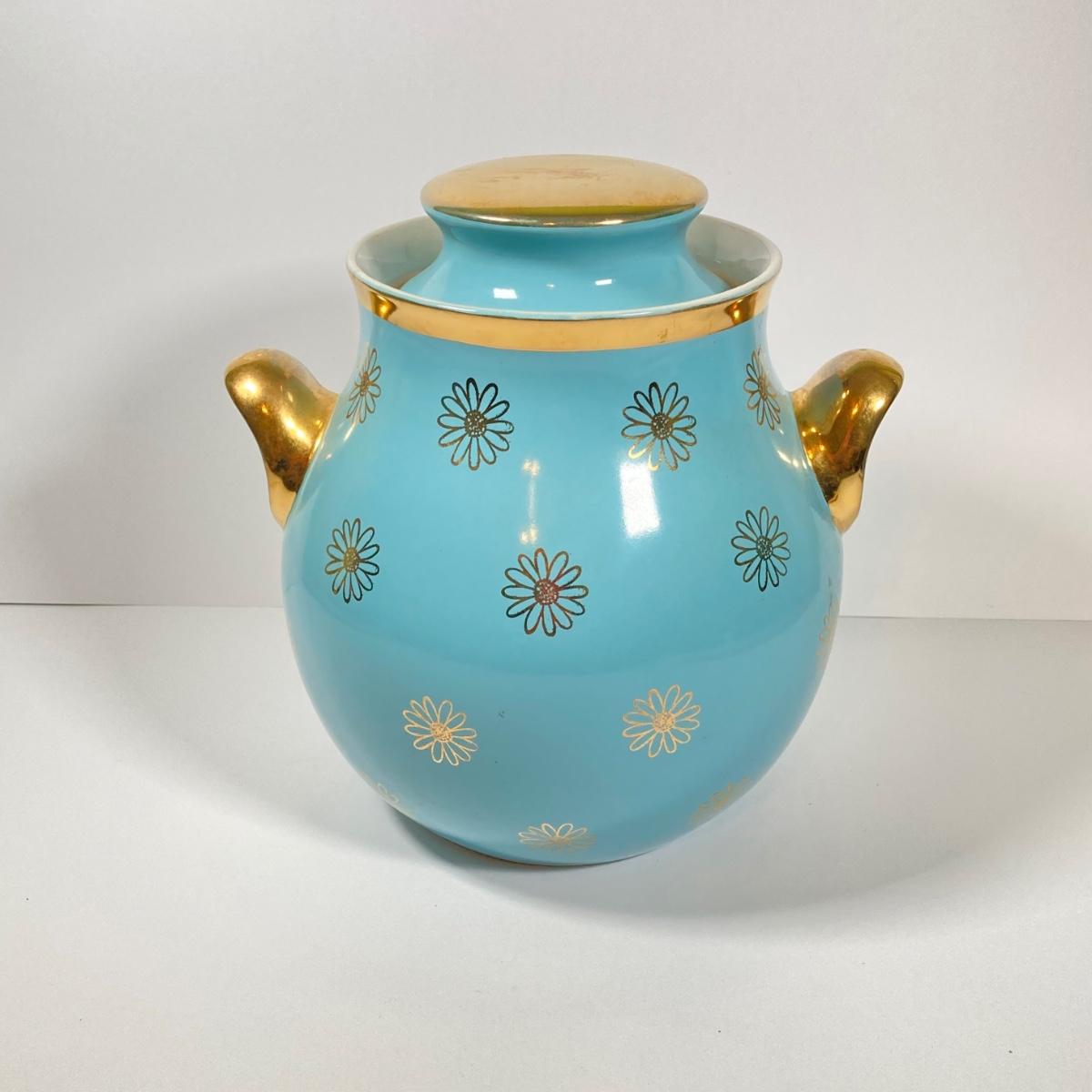 LOT 43: Vintage Hall's Cookie Jar - (Robin's Egg Blue with Gold Daisy Pattern)