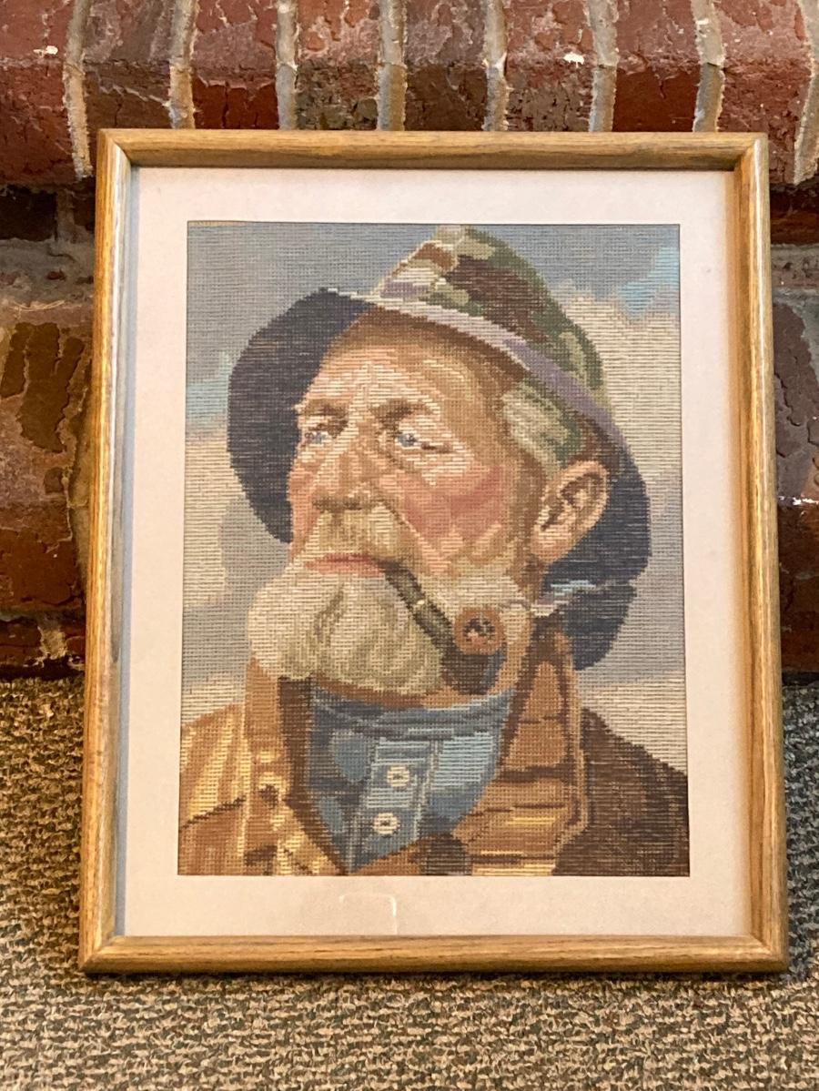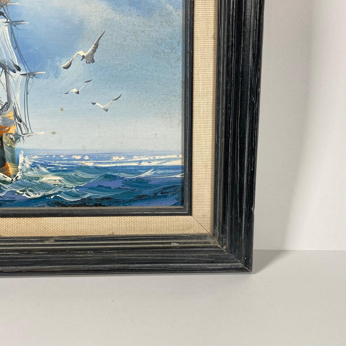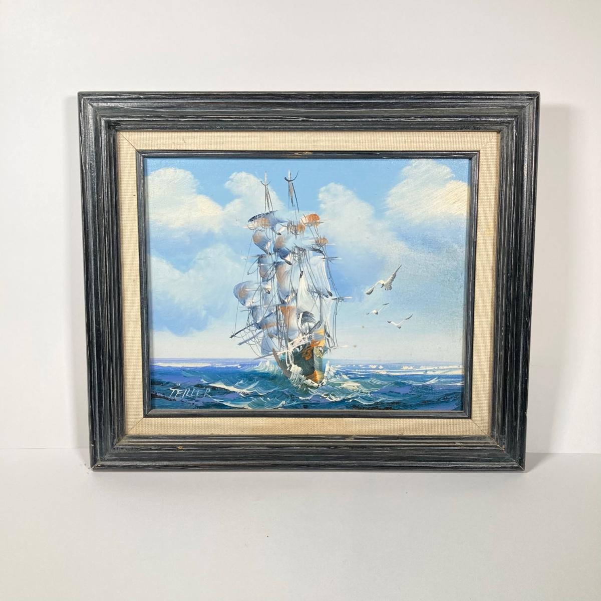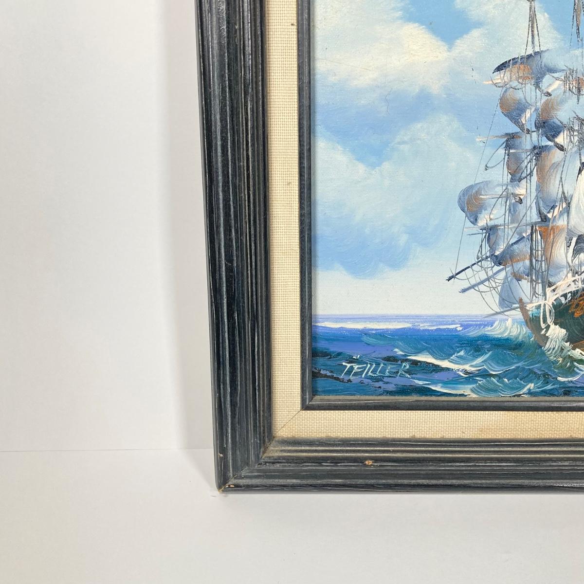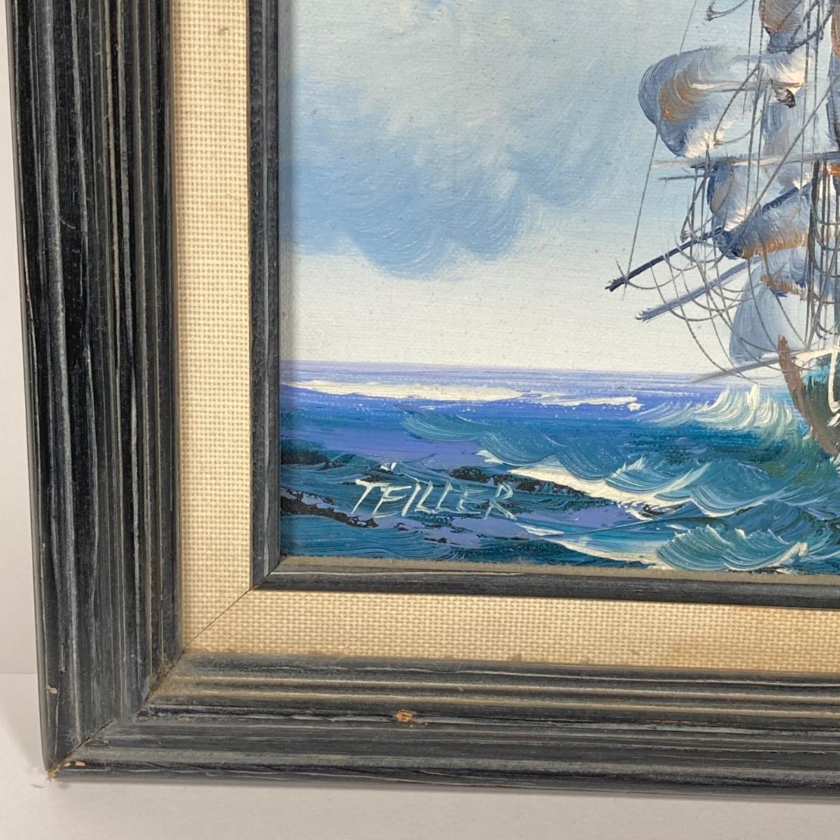 LOT 46: Nautical Art Collection - Signed by Artist Teiller Seascape Oil Painting, Blue / White Mermaid and Cross Stitch Wall Hanging
