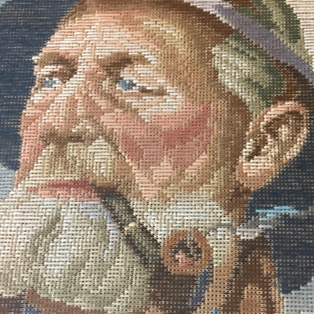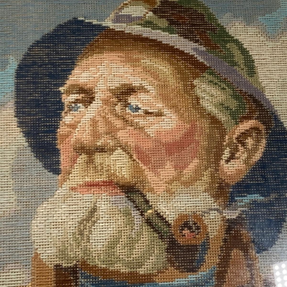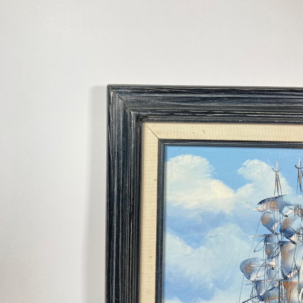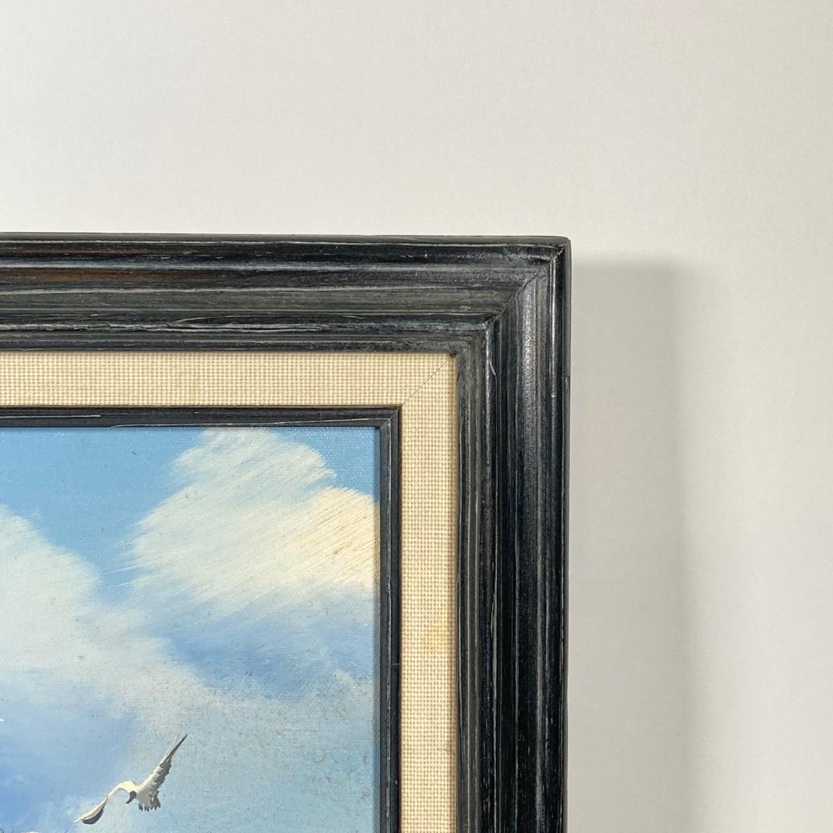 LOT 46: Nautical Art Collection - Signed by Artist Teiller Seascape Oil Painting, Blue / White Mermaid and Cross Stitch Wall Hanging