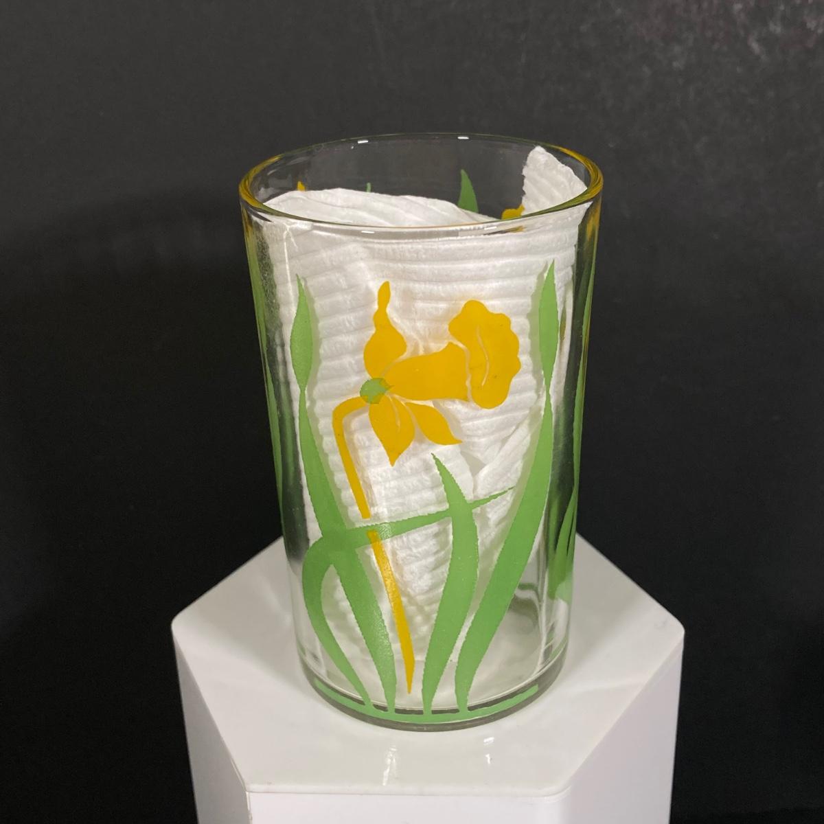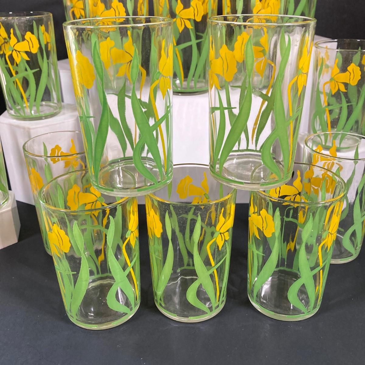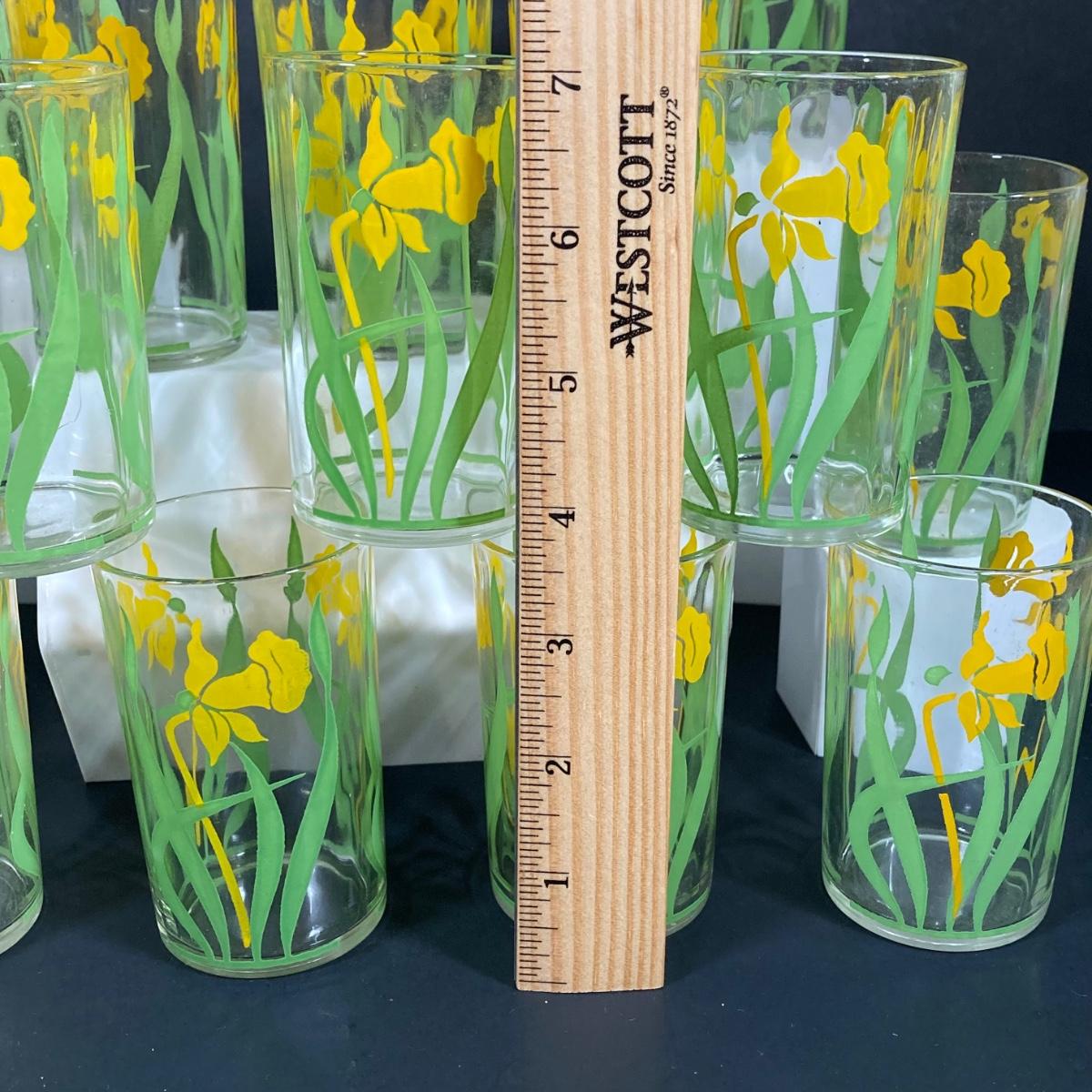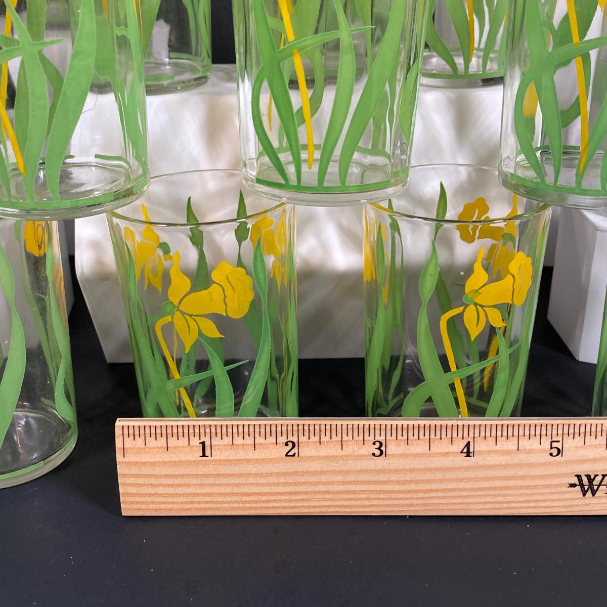 LOT 50: Sweet Collection of Vintage MCM Swanky Swigs Daffodil Kraft Juice Glasses by Hazel Atlas