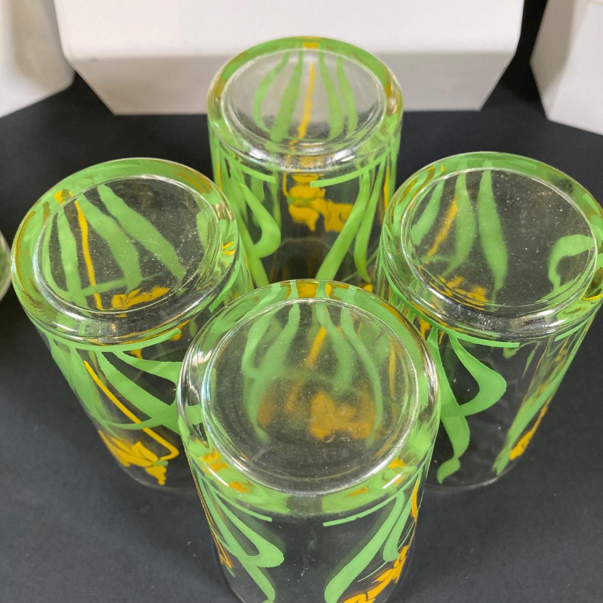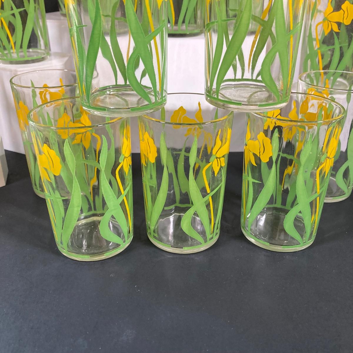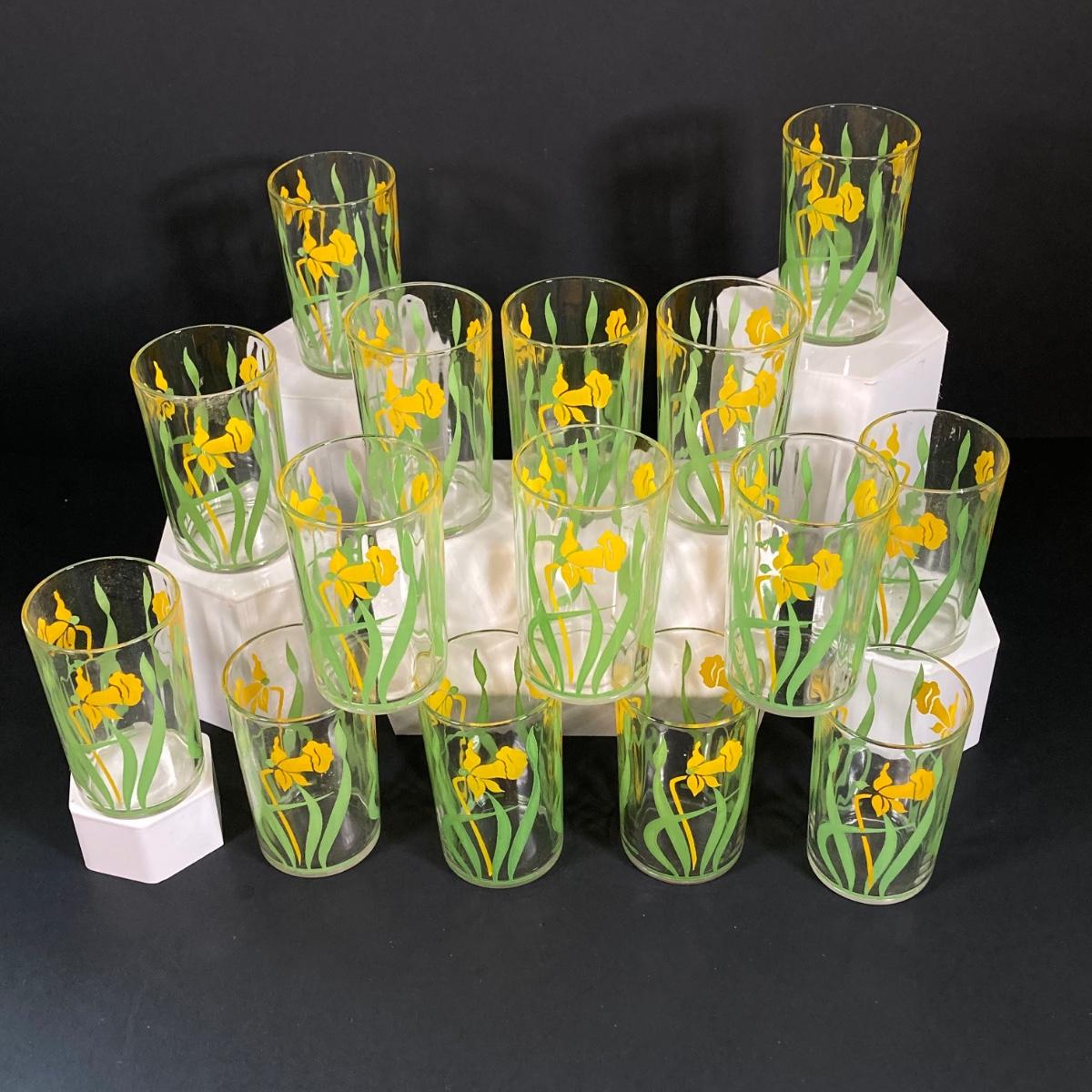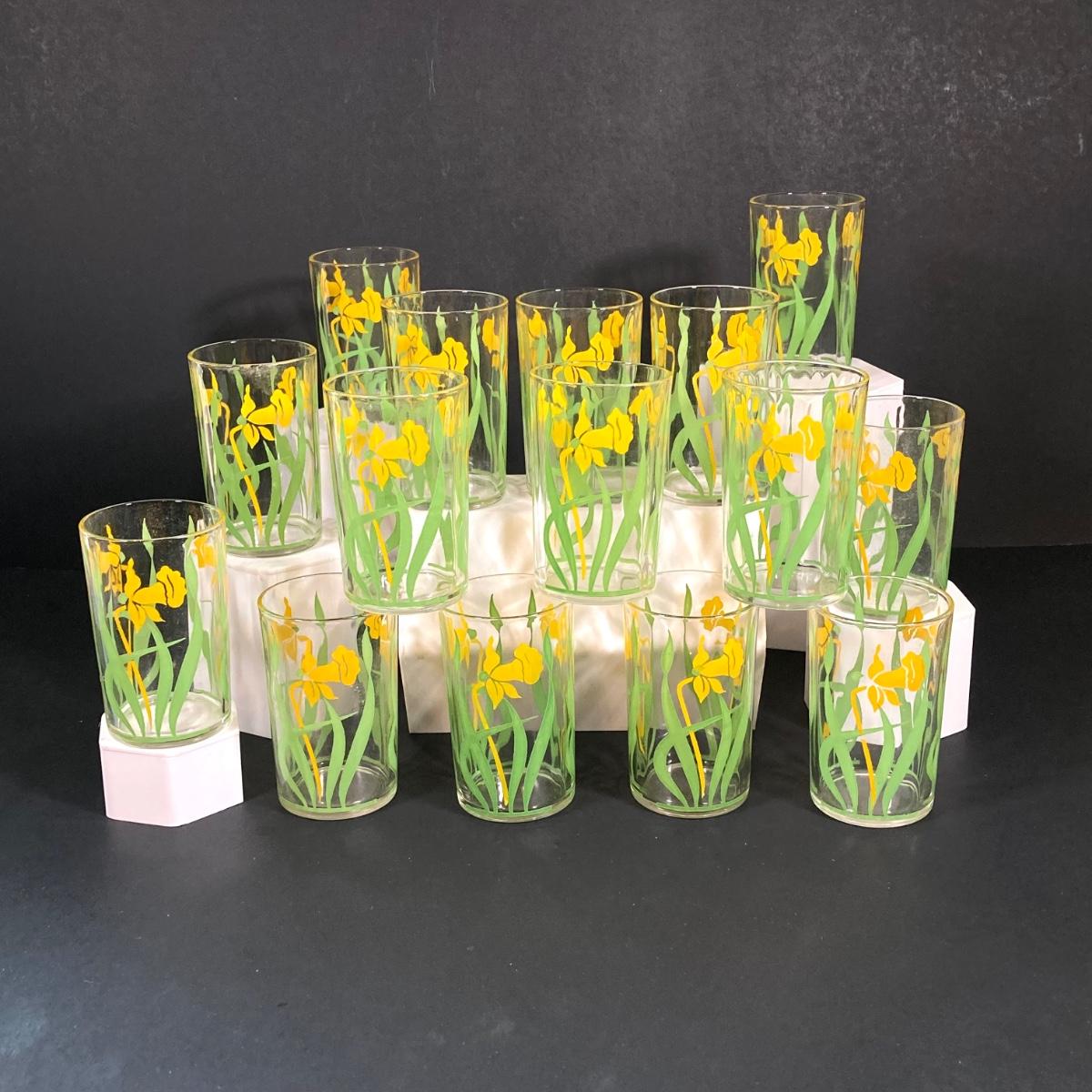 LOT 50: Sweet Collection of Vintage MCM Swanky Swigs Daffodil Kraft Juice Glasses by Hazel Atlas
