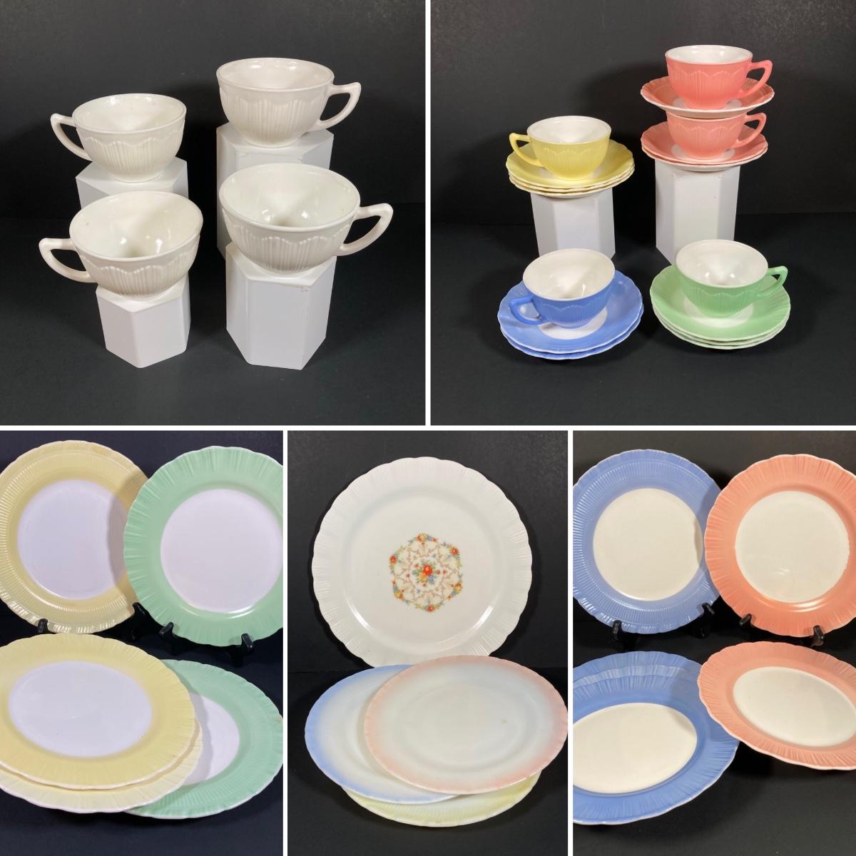 LOT 53: Vintage Pastel / White Colored Dishes, Cups and Saucers and More