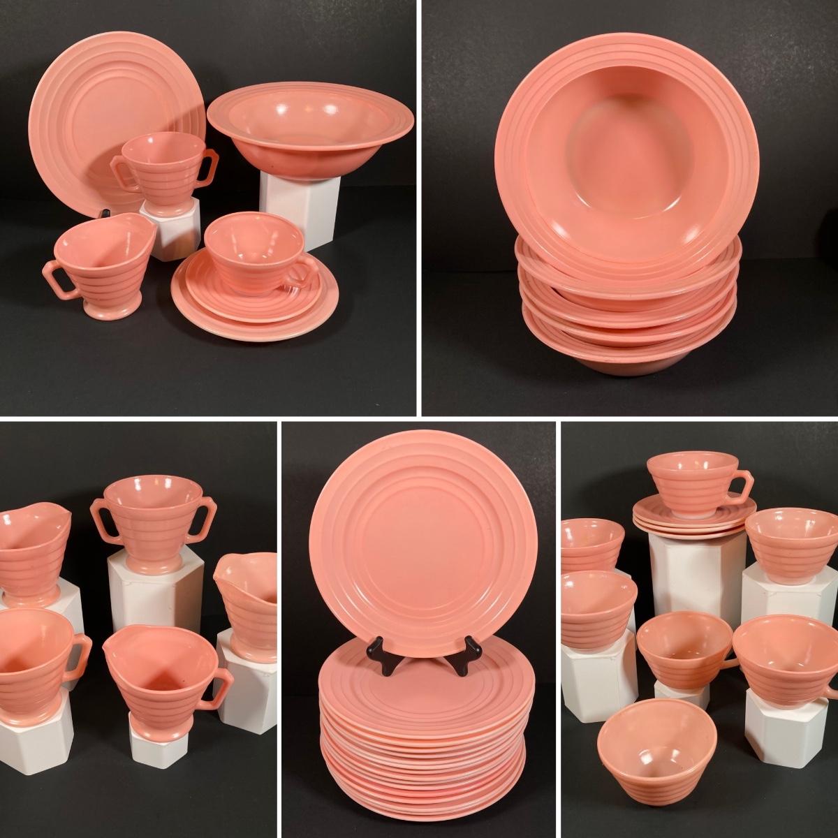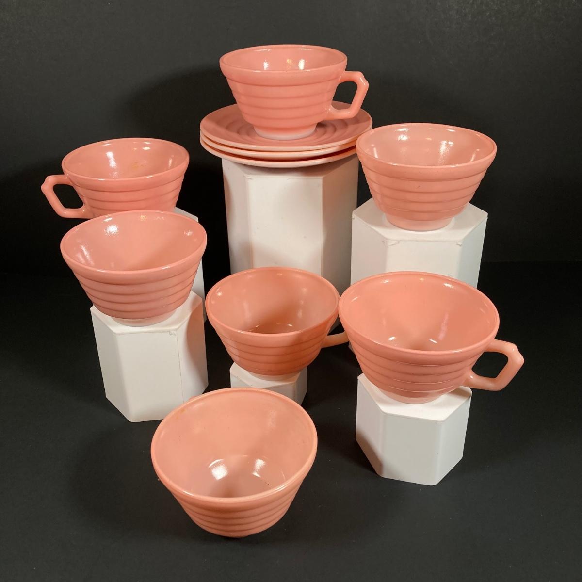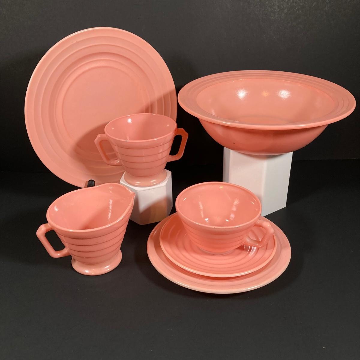 LOT 54: Vintage Pink Dinnerware - Plates, Bowls, Cups, Saucers and Creamer / Sugar Bowls