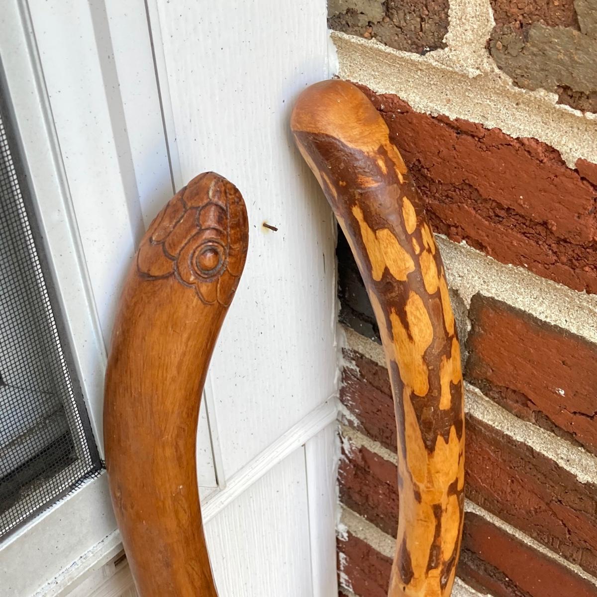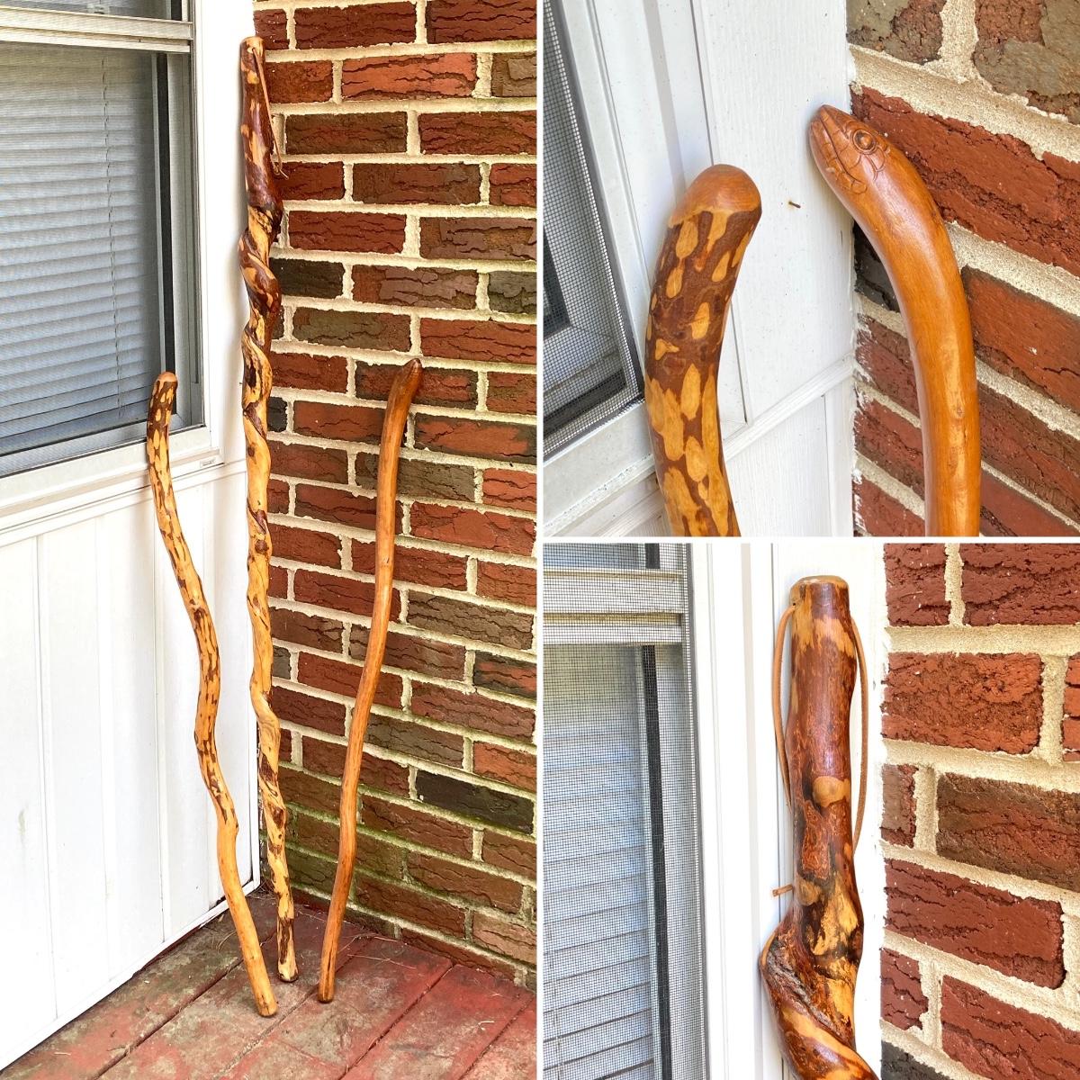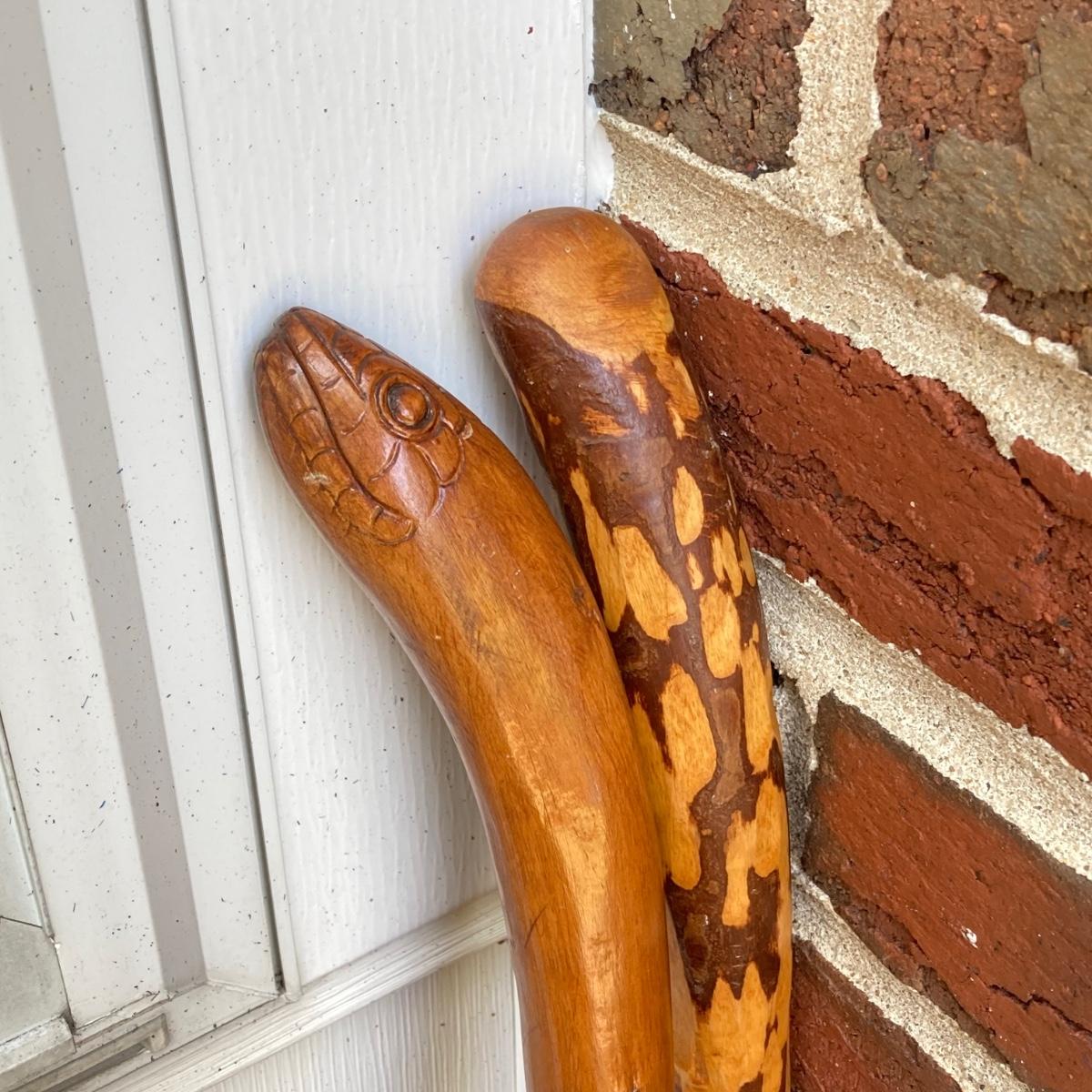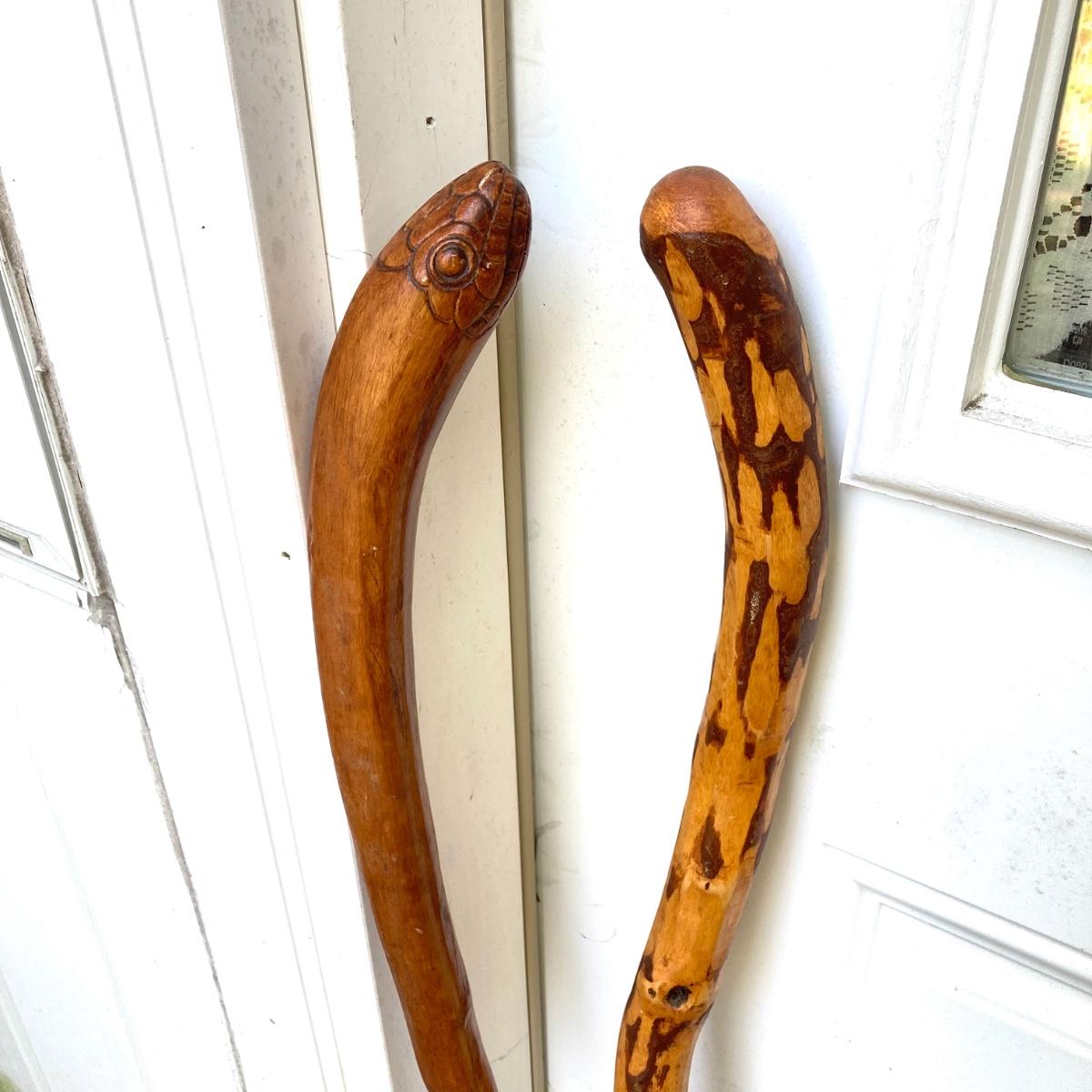 LOT 55: Collection of Three Carved Wooden Walking Sticks - Twisted and Serpent / Snake Styles