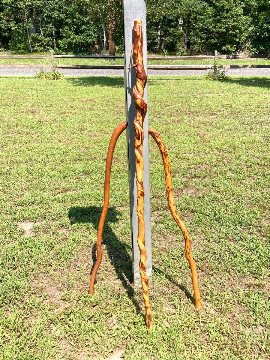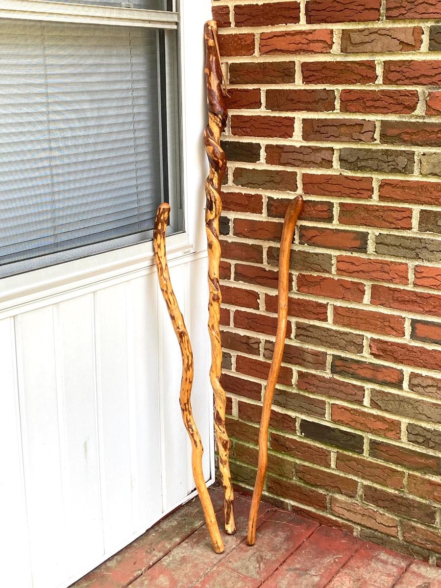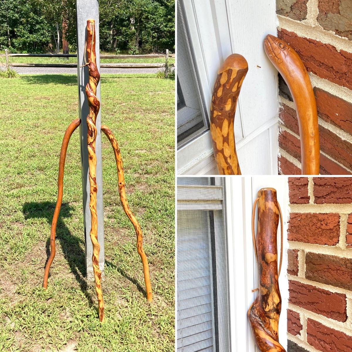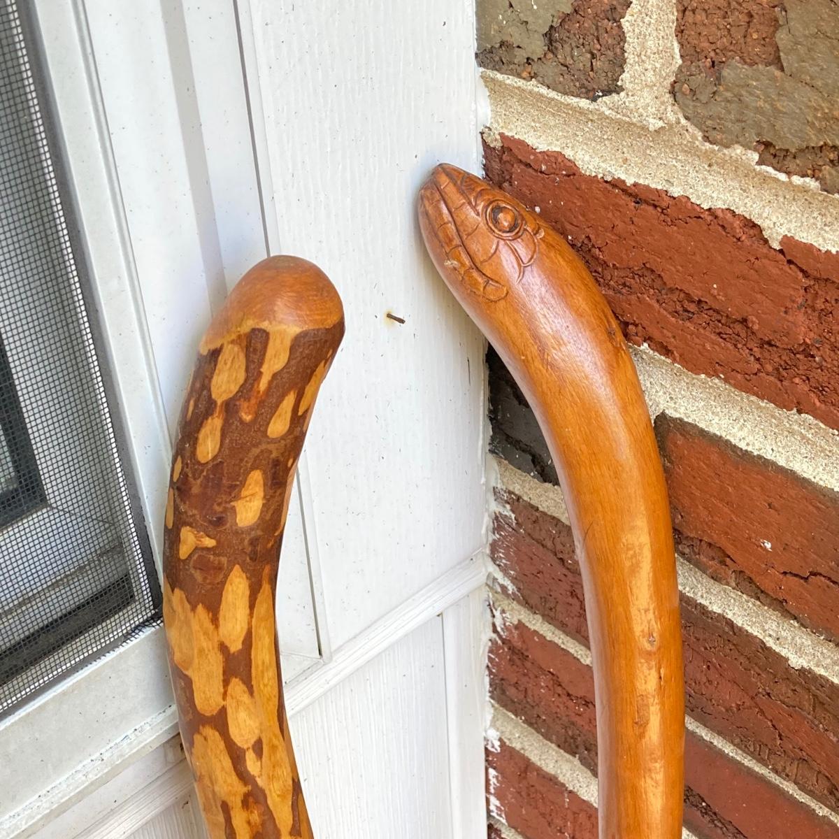 LOT 55: Collection of Three Carved Wooden Walking Sticks - Twisted and Serpent / Snake Styles