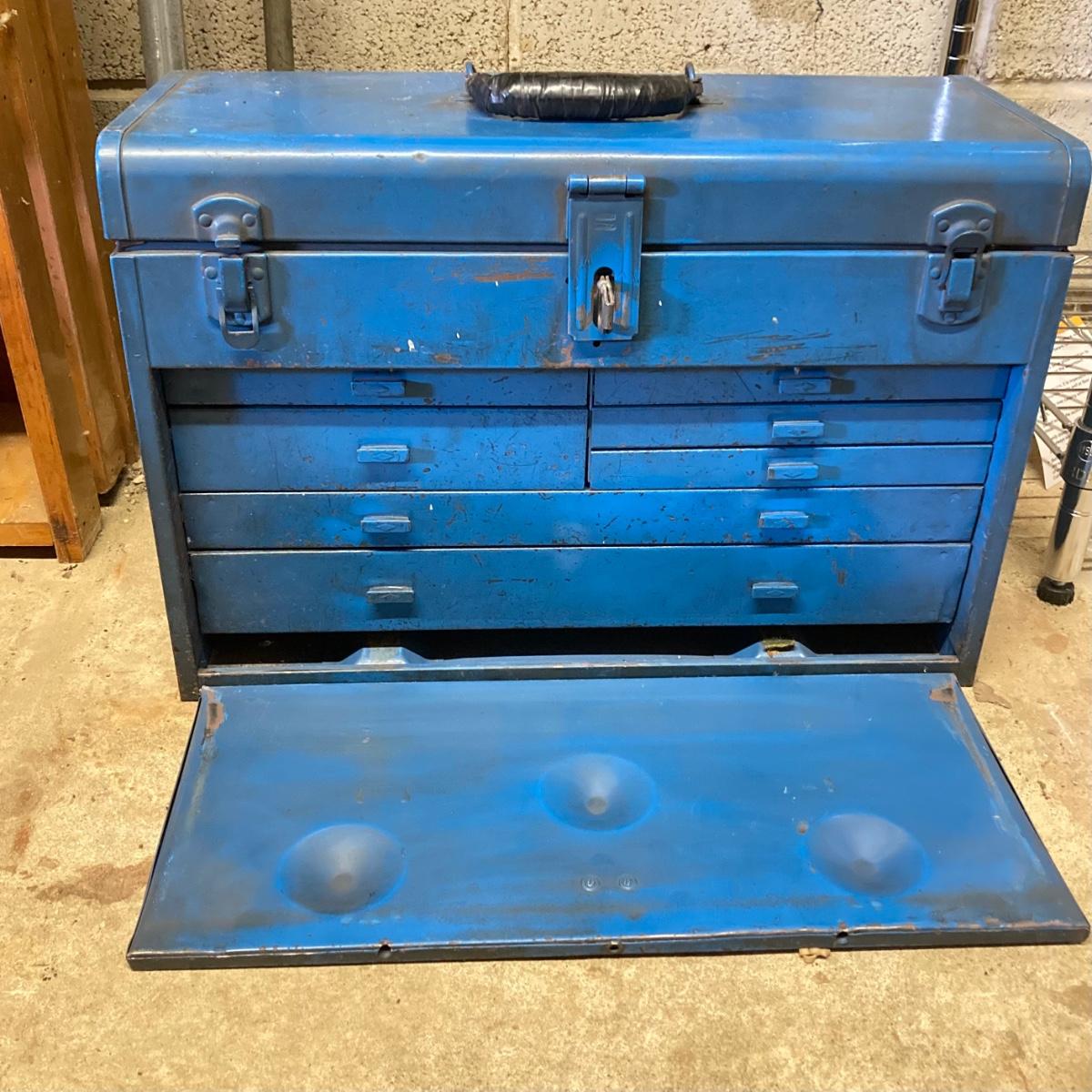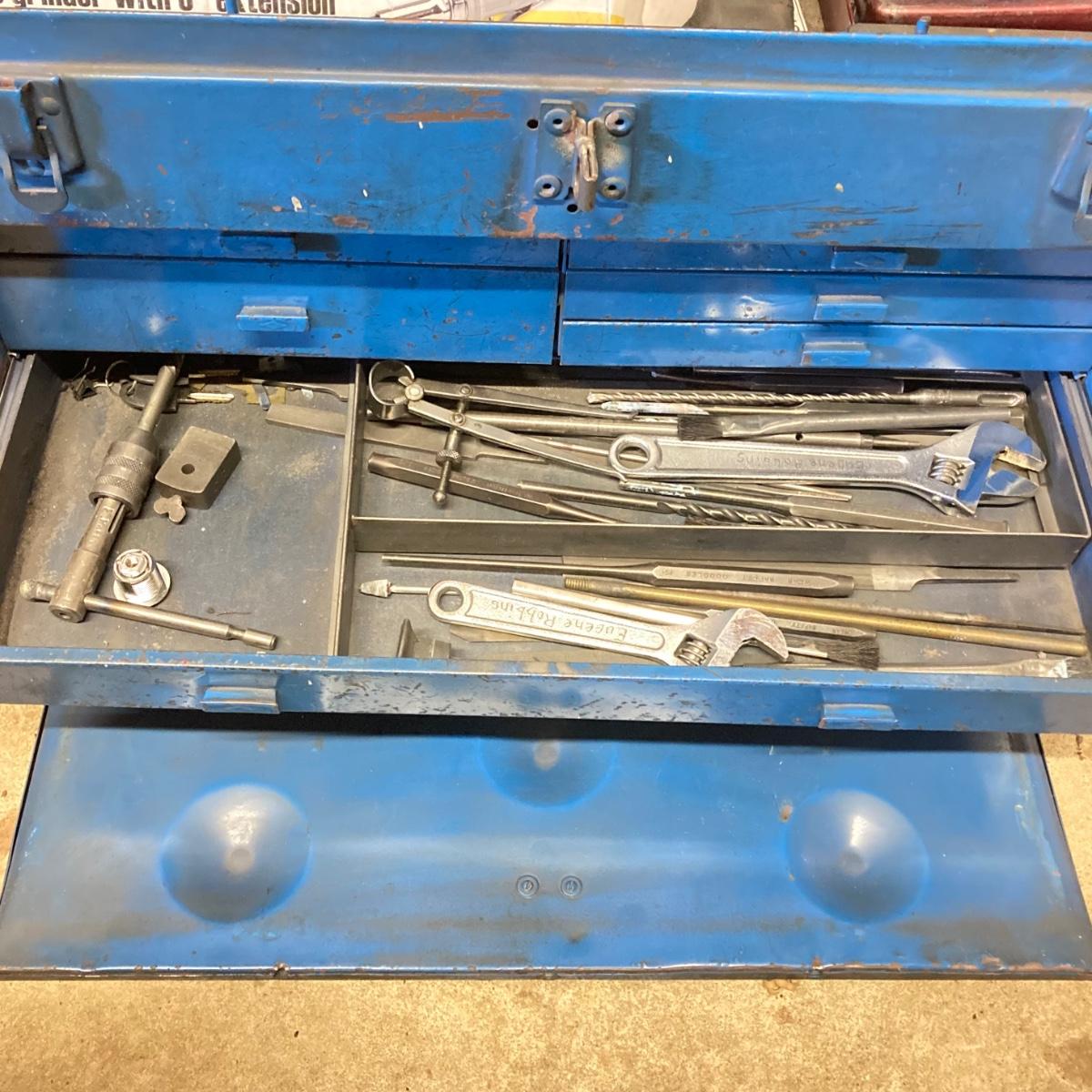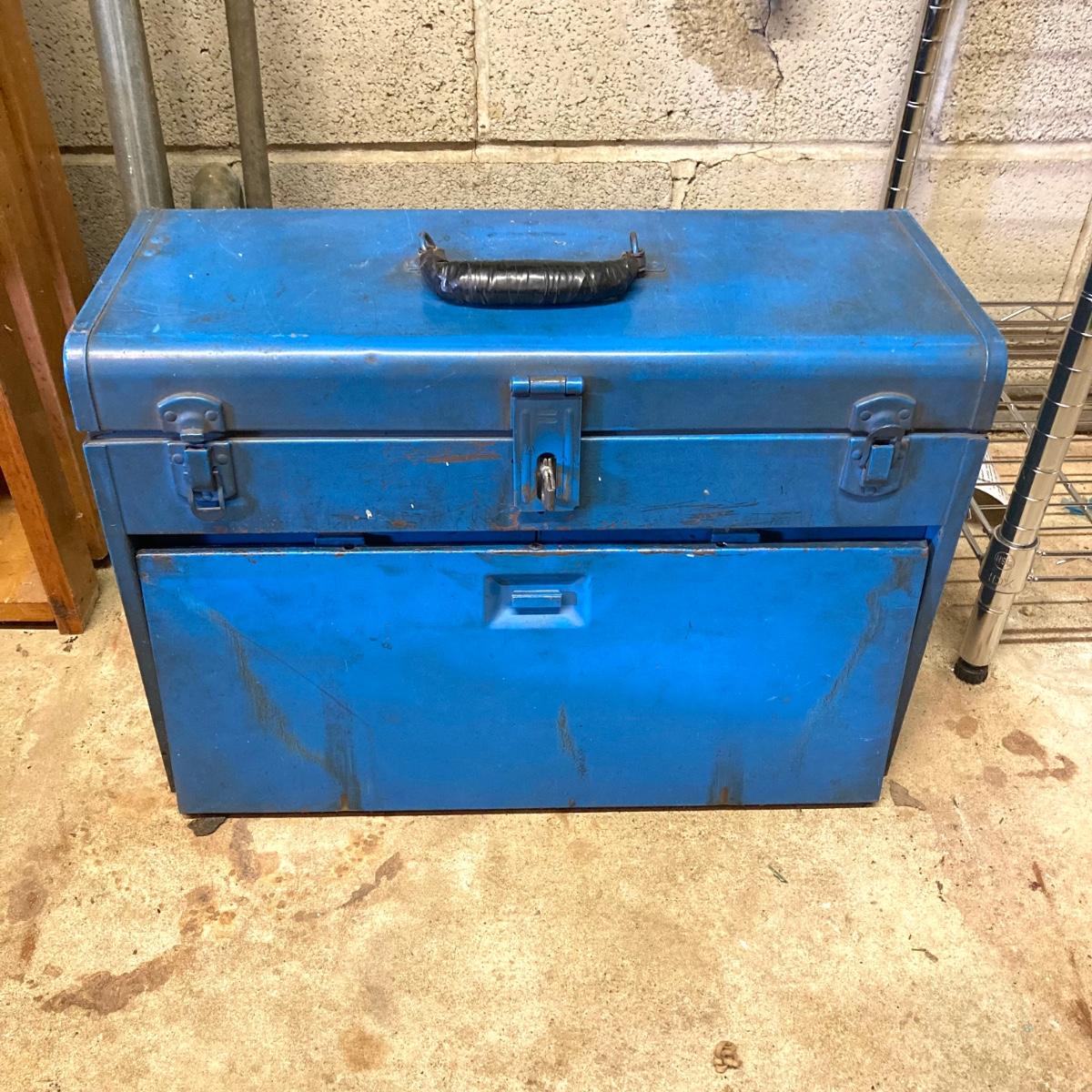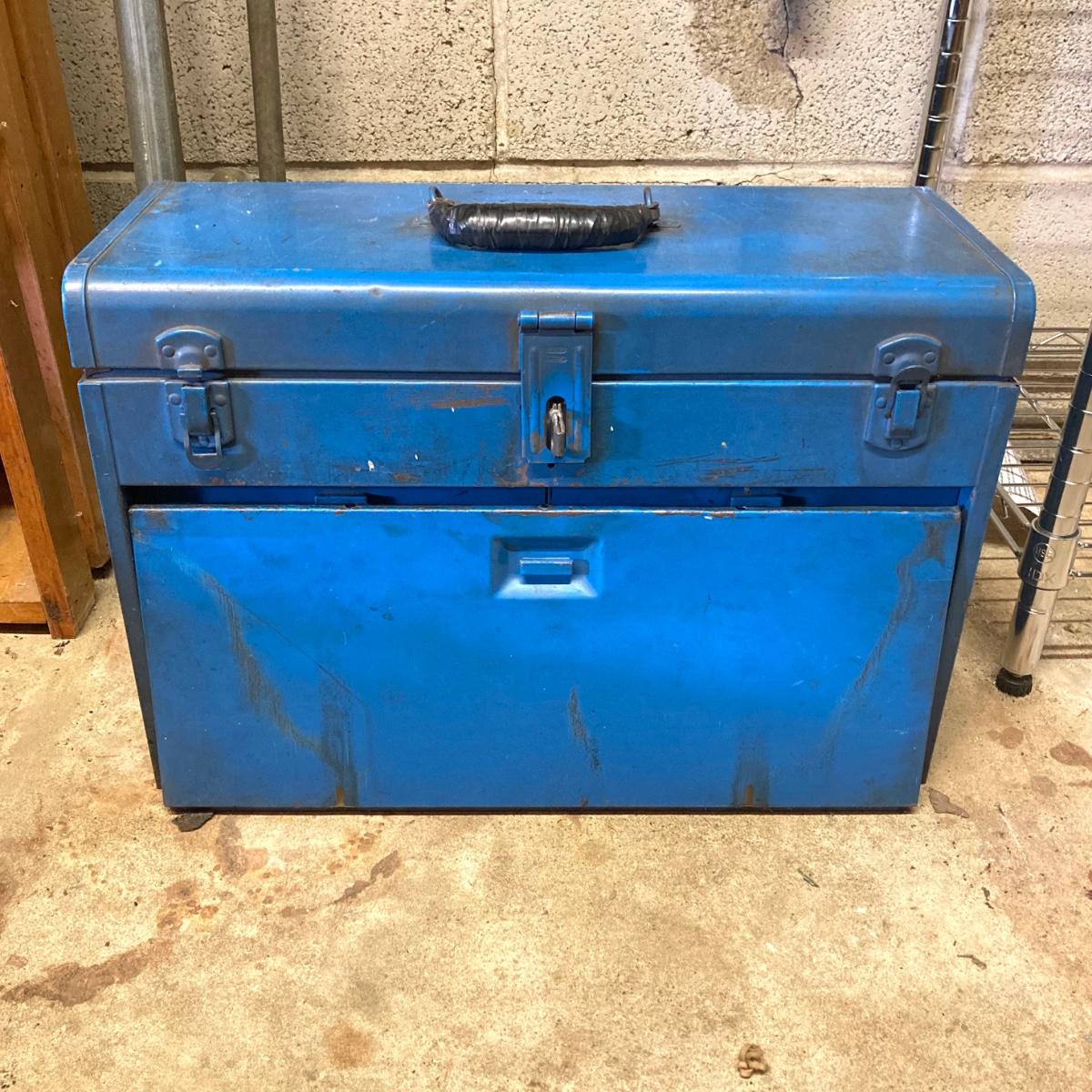 LOT 63: Vintage Blue Metal Machinist's Toolbox and Contents