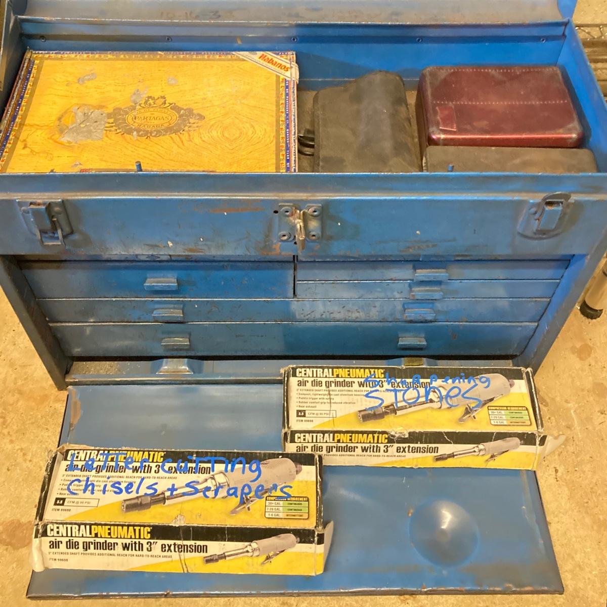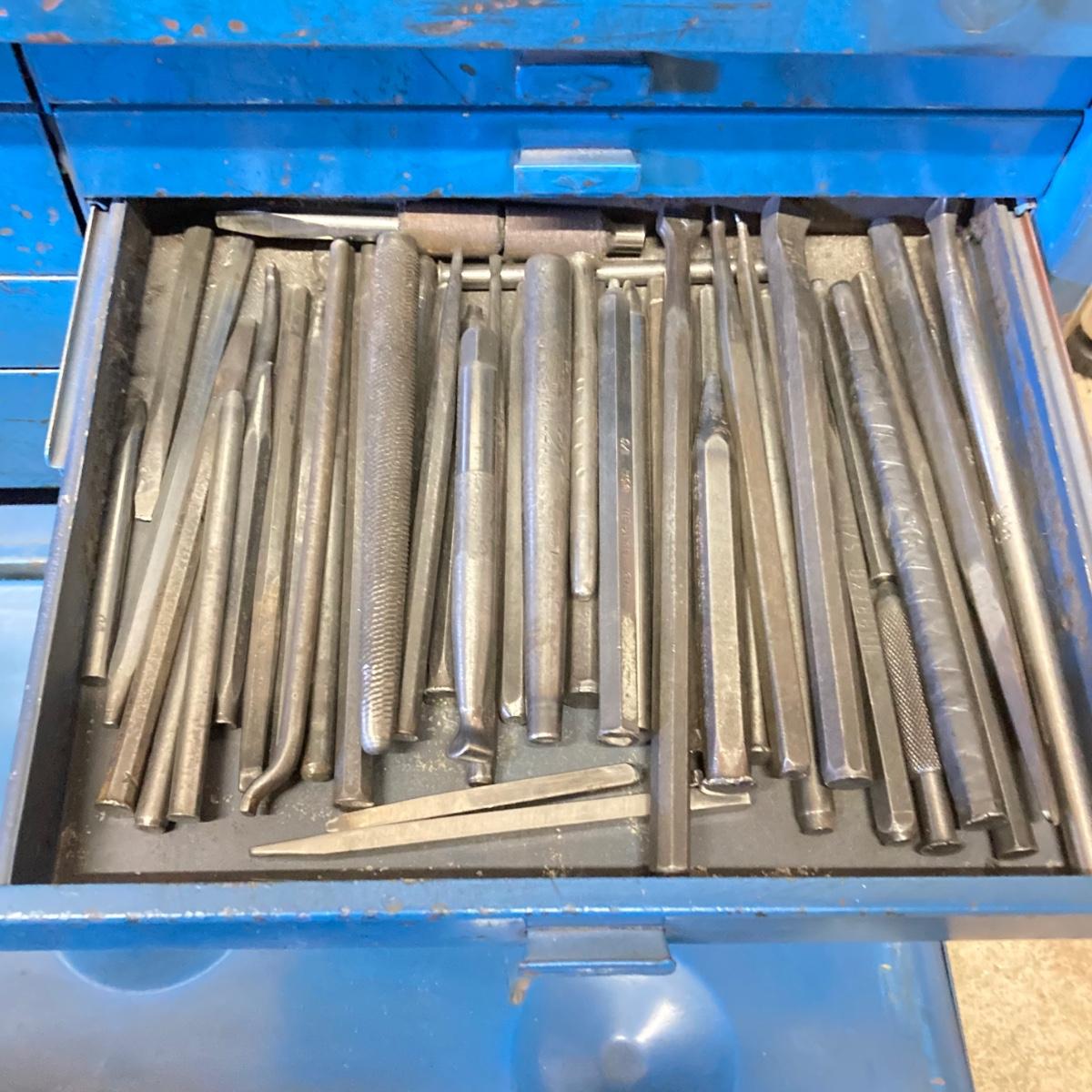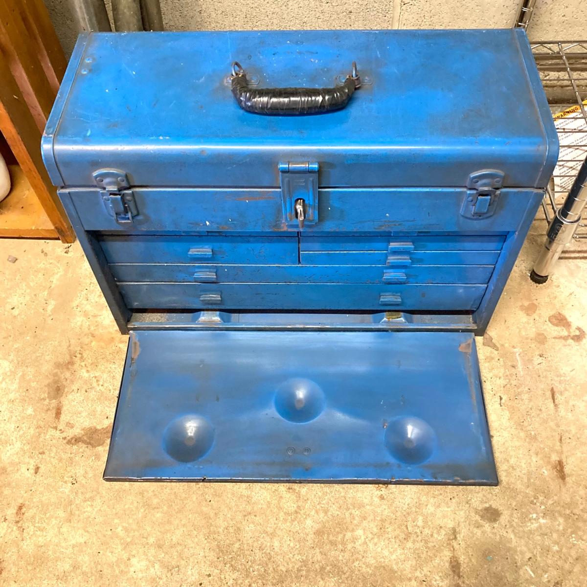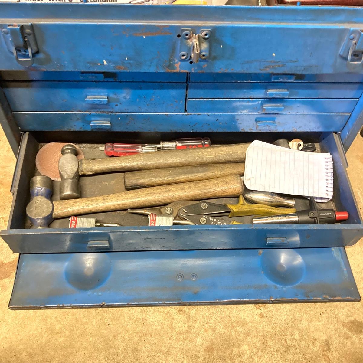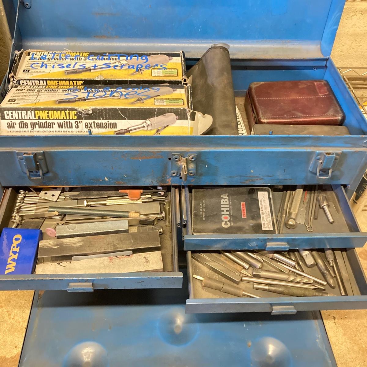 LOT 63: Vintage Blue Metal Machinist's Toolbox and Contents