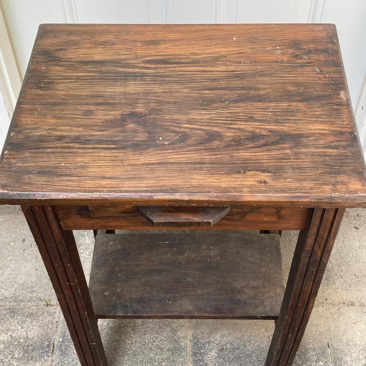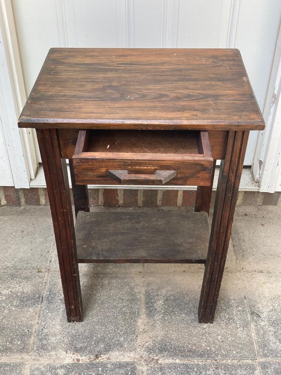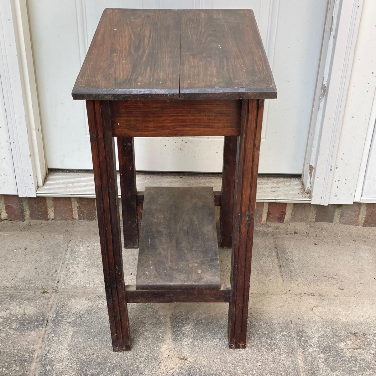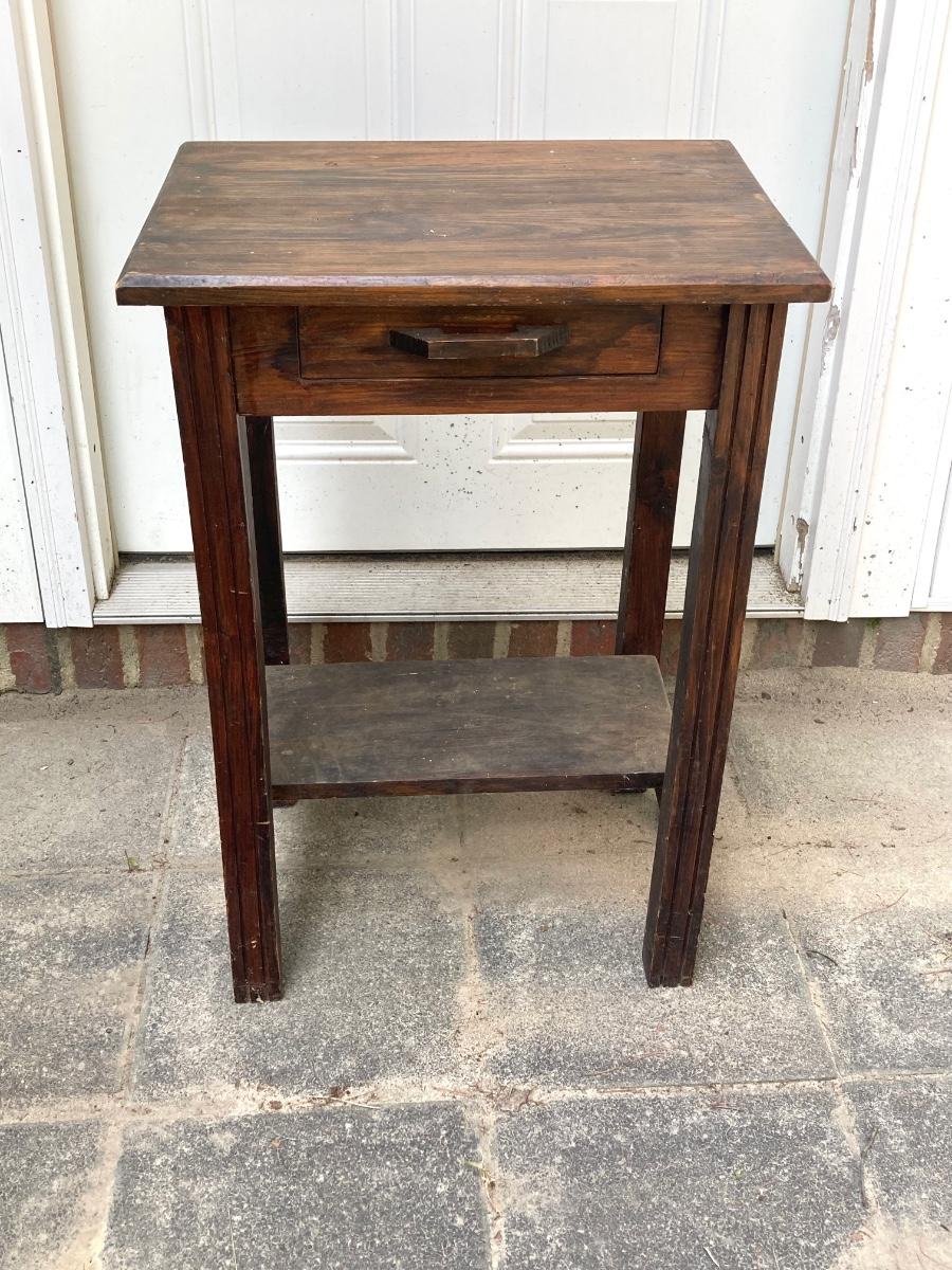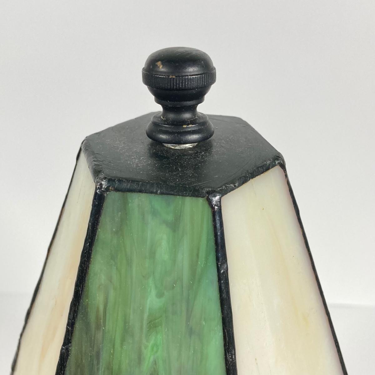 LOT 64: Small Stained Glass Tiffany Style Table Lamp and Wooden Side Accent Table