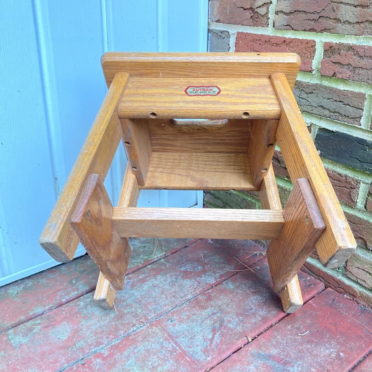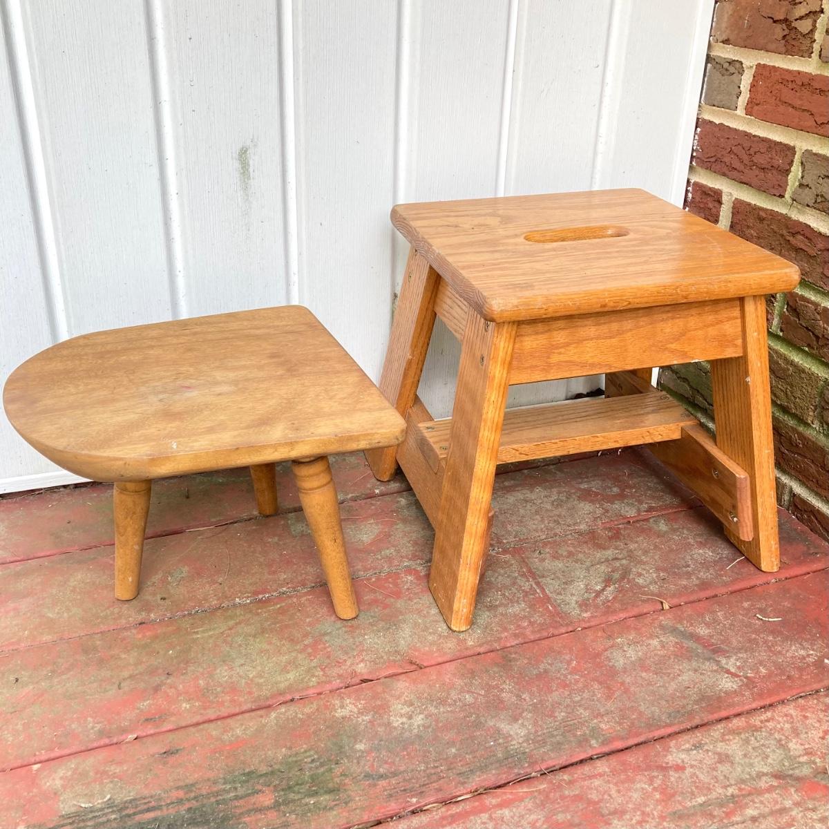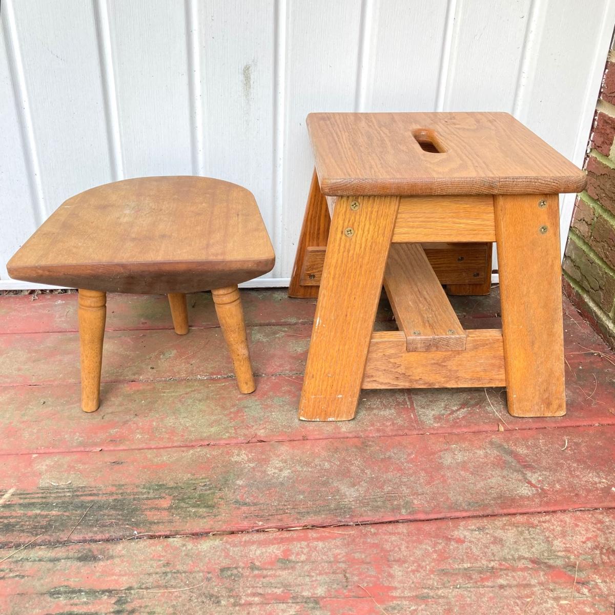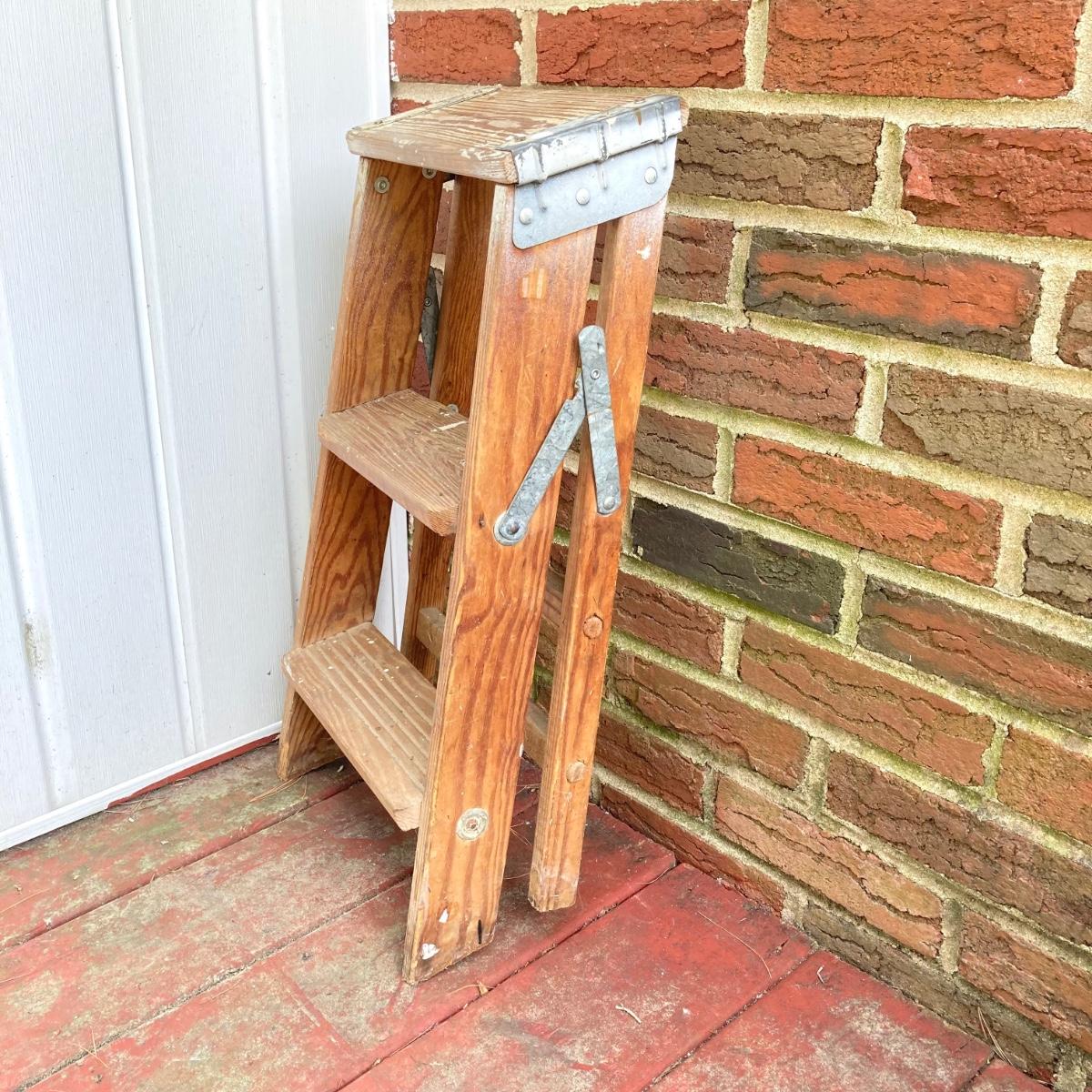 LOT 66: Vintage Wooden Stools and Step Ladder - Putnam Rolling Ladder Co. Inc. Included