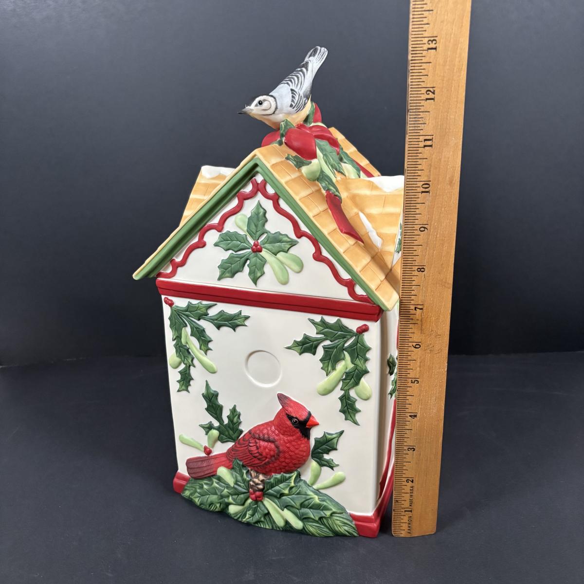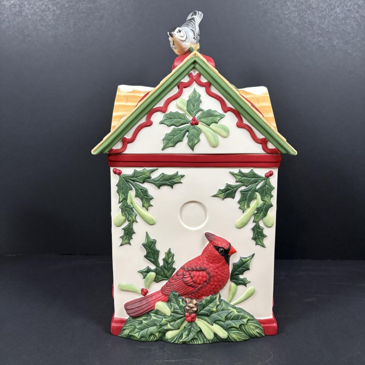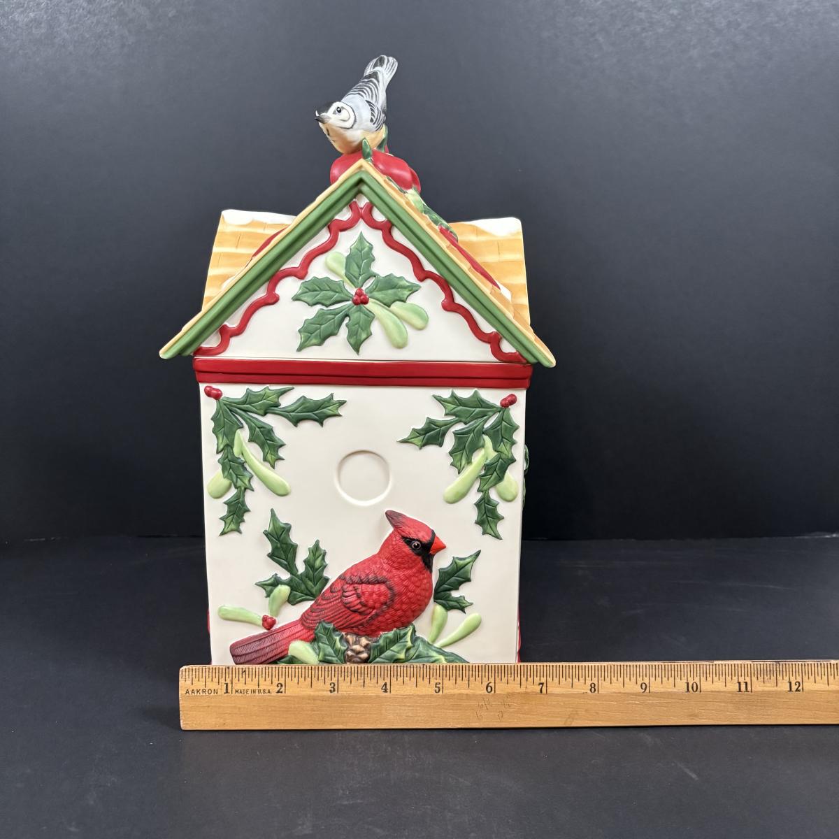 LOT 103: Lenox Winter Greetings Birdhouse Cookie Jar