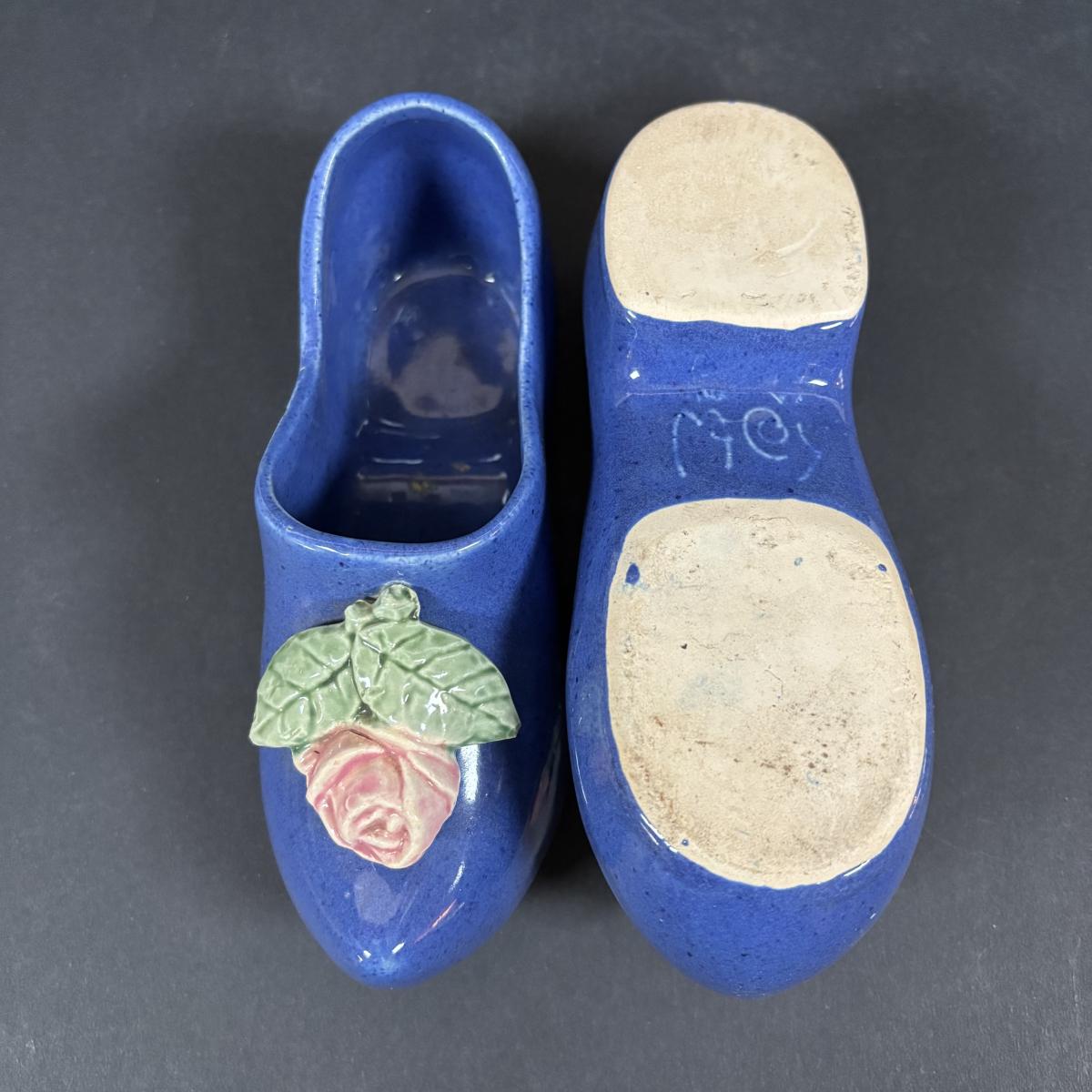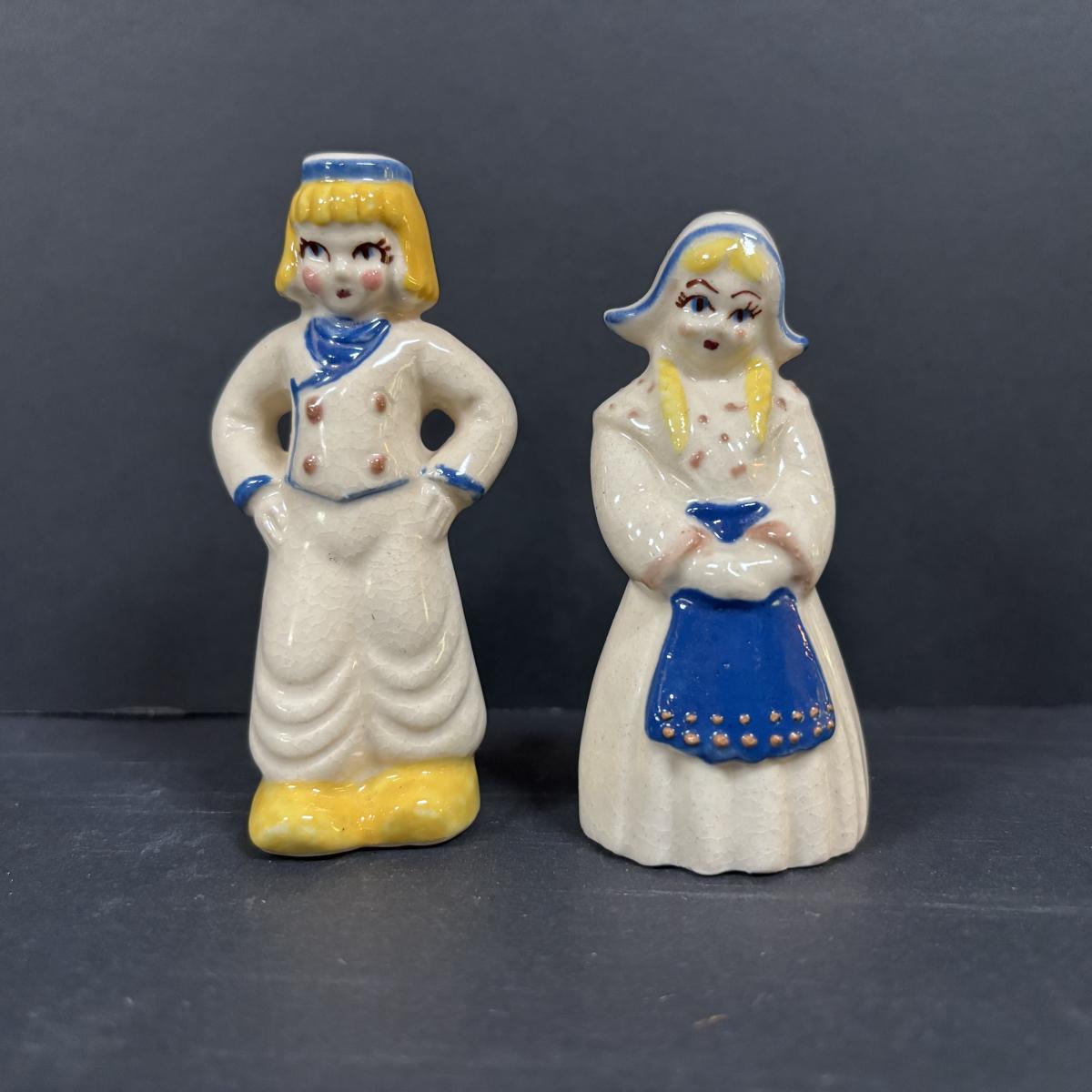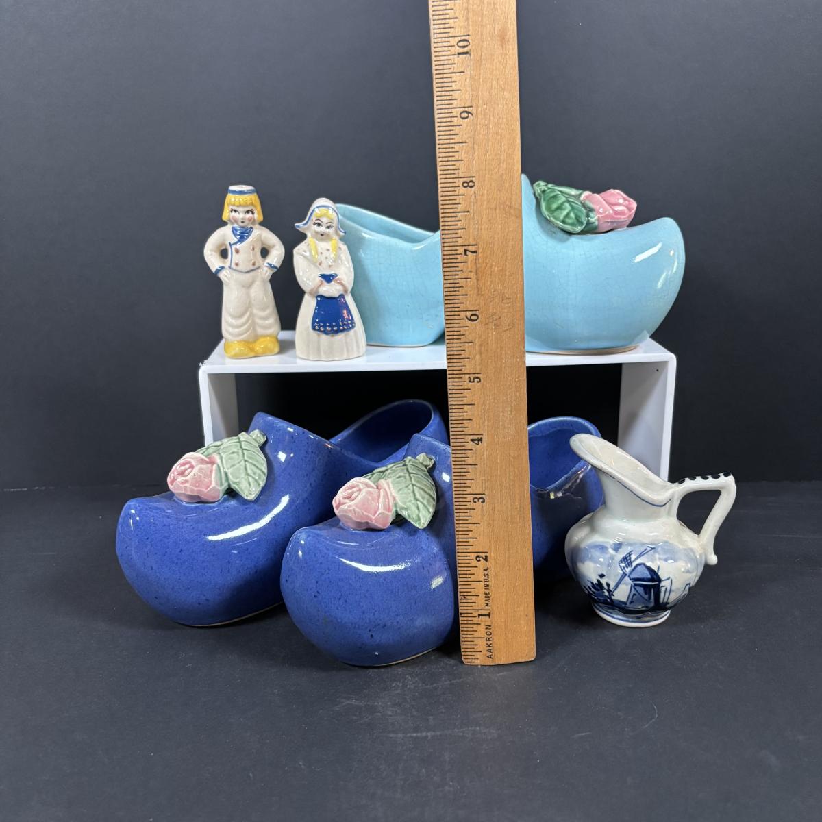 LOT 104: McCoy Dutch Shoe Planters, Delft Blue Pitcher, Ceramic Art Studio Wee Dutch Boy & Girl Salt/Pepper Shakers
