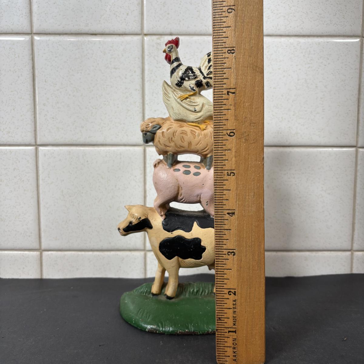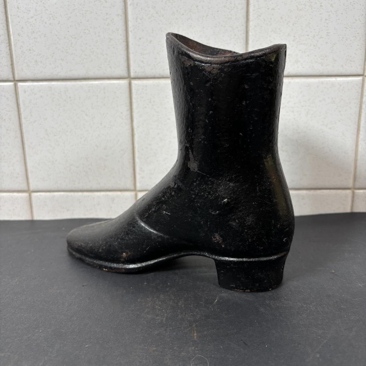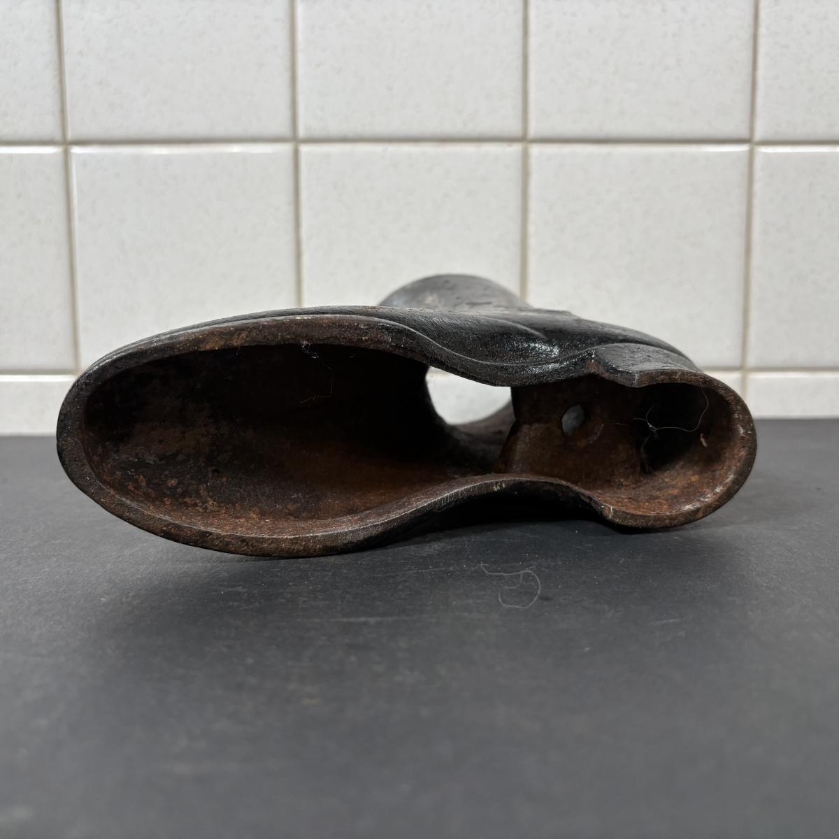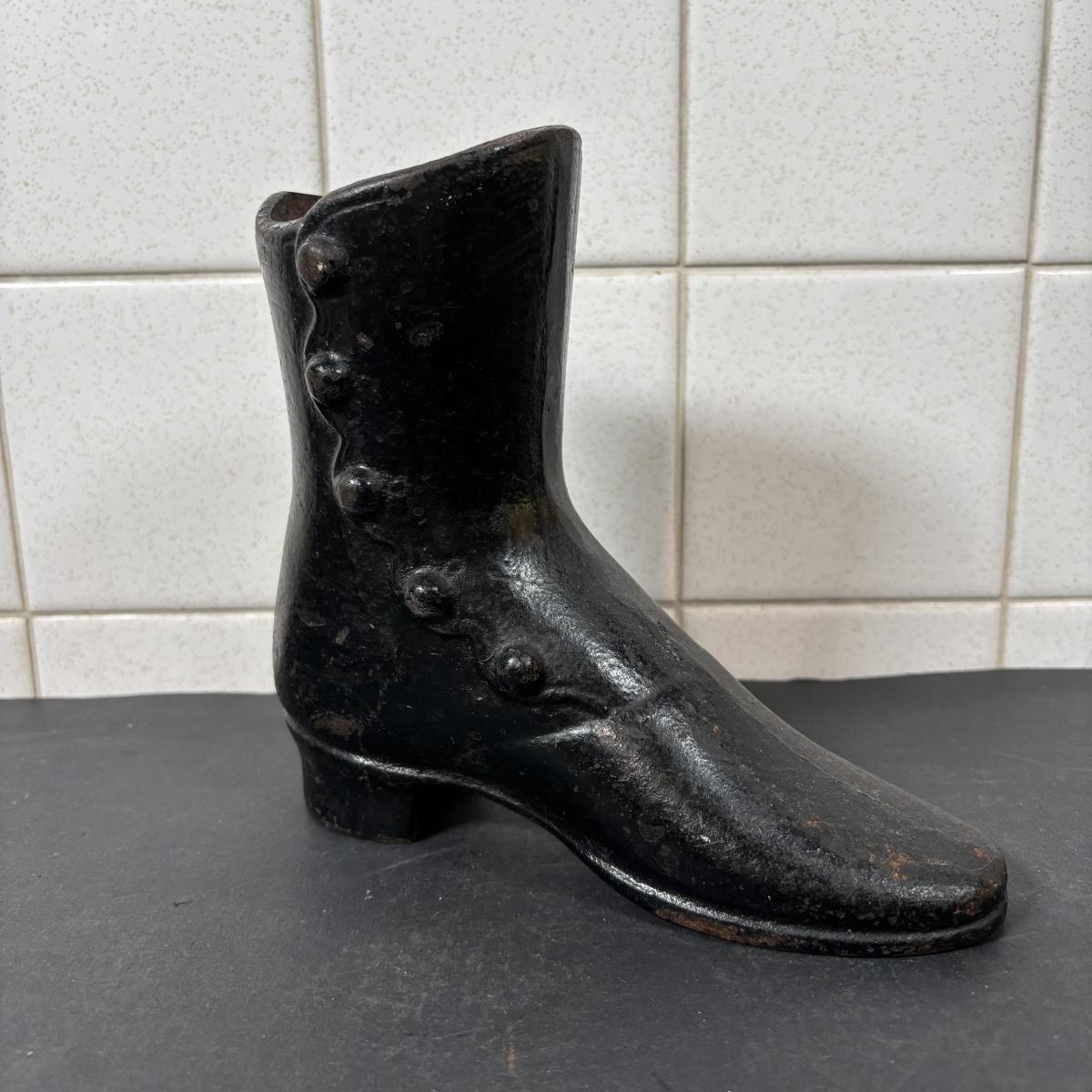 LOT 110: Cast Iron Collection: Large Round Architecture Trivet, Farm Animal Door Stop and High-Top Ladies Boot Door Stop