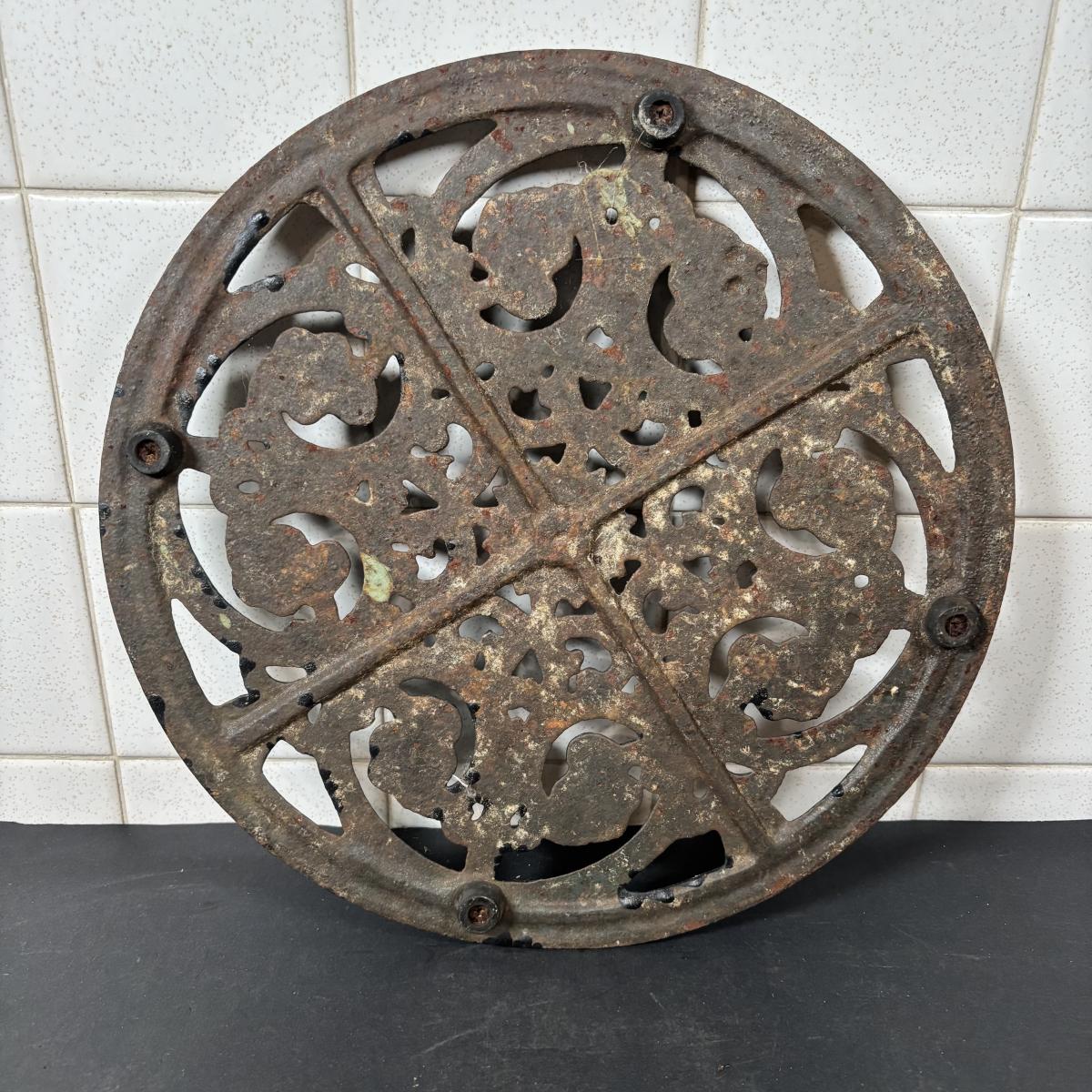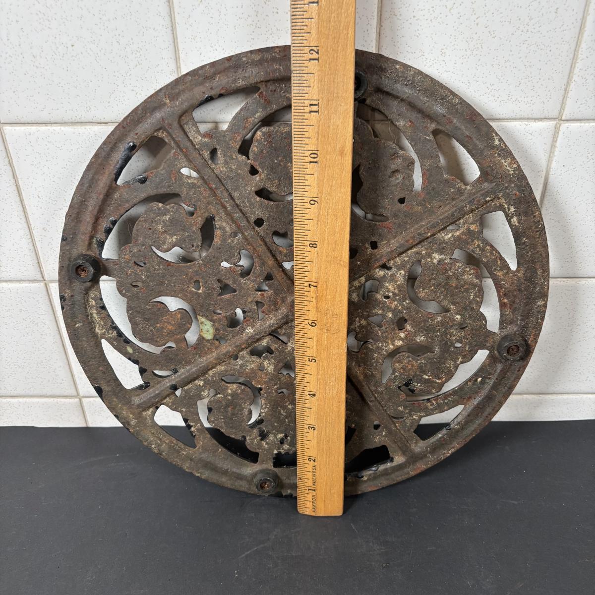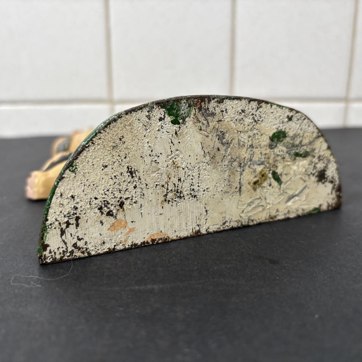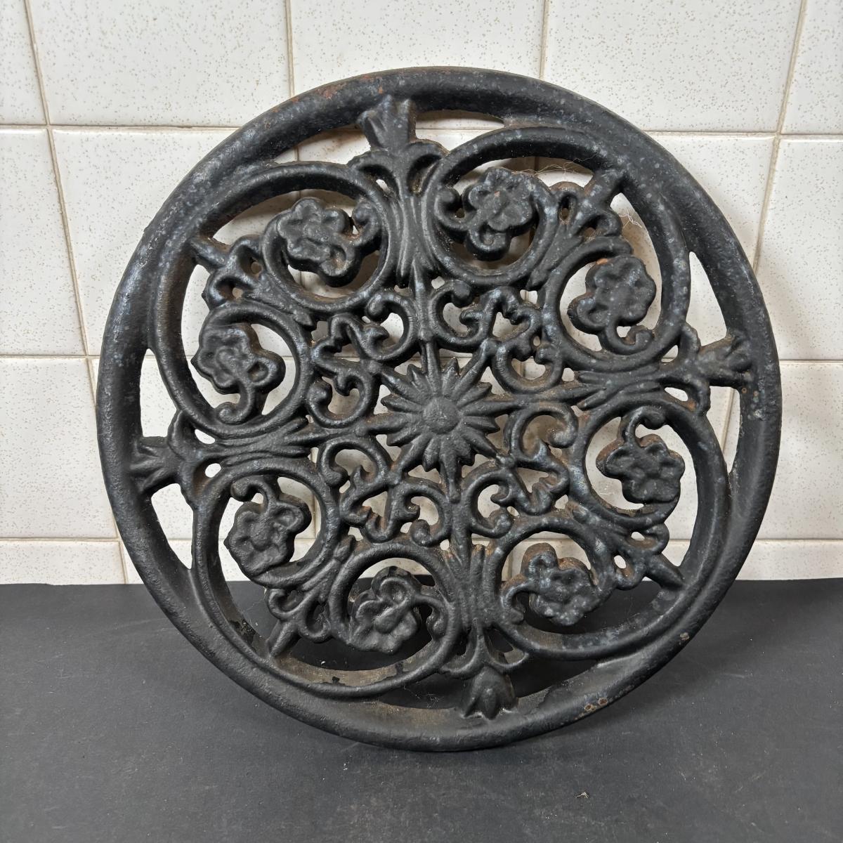 LOT 110: Cast Iron Collection: Large Round Architecture Trivet, Farm Animal Door Stop and High-Top Ladies Boot Door Stop