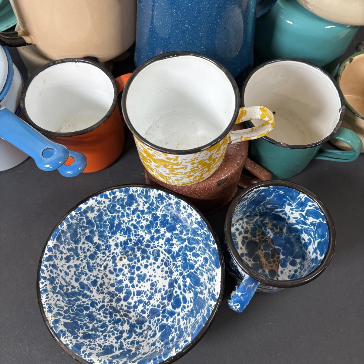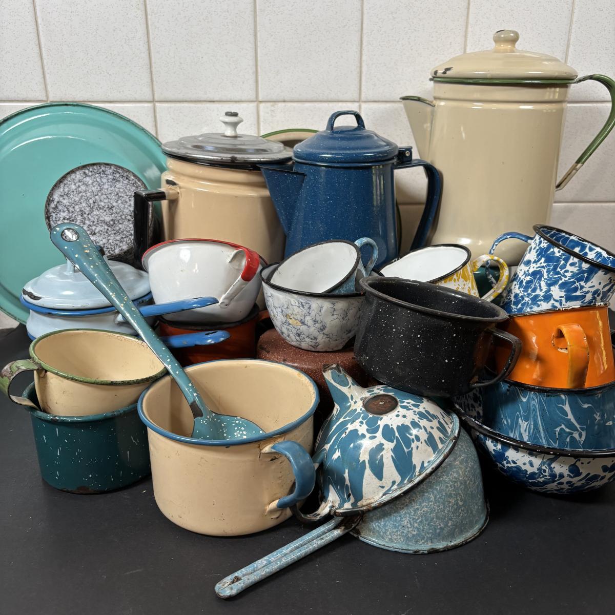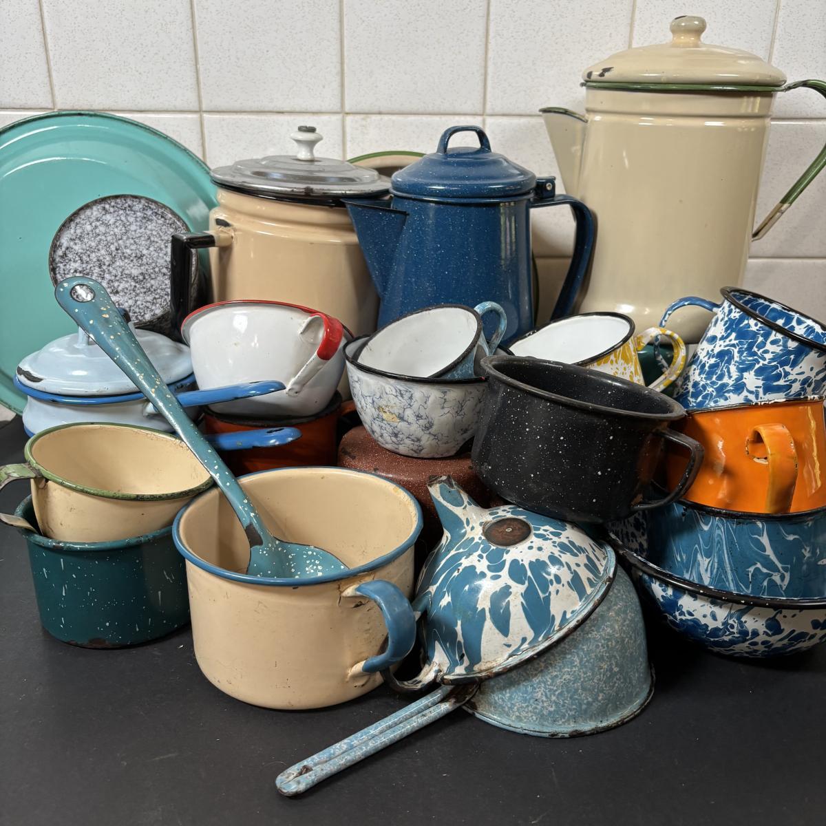 LOT 111: Large Collection of Enamelware in Various Conditions