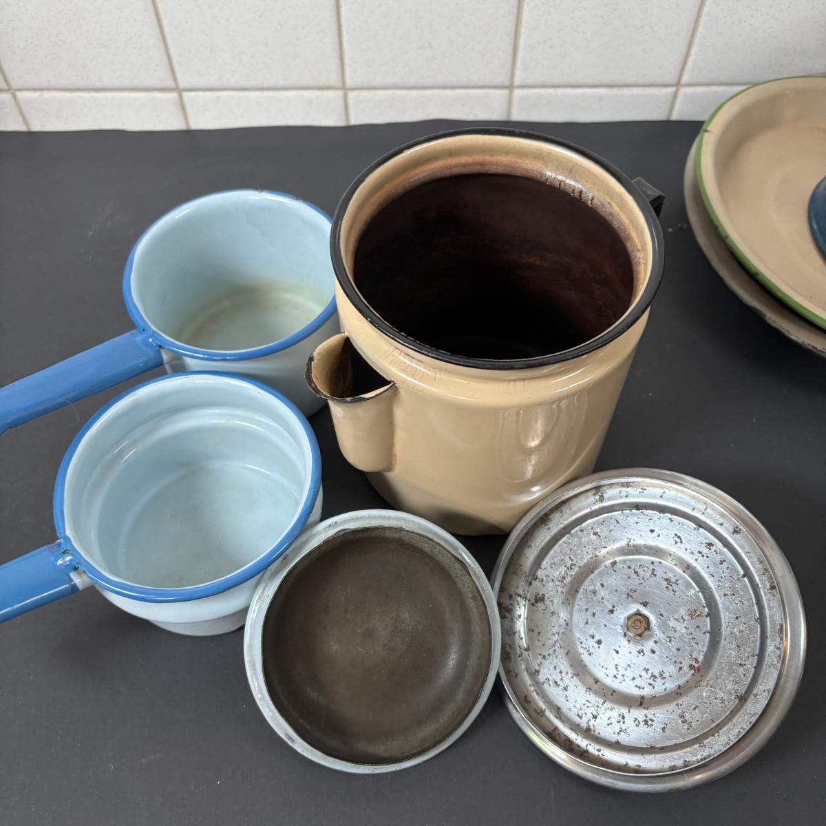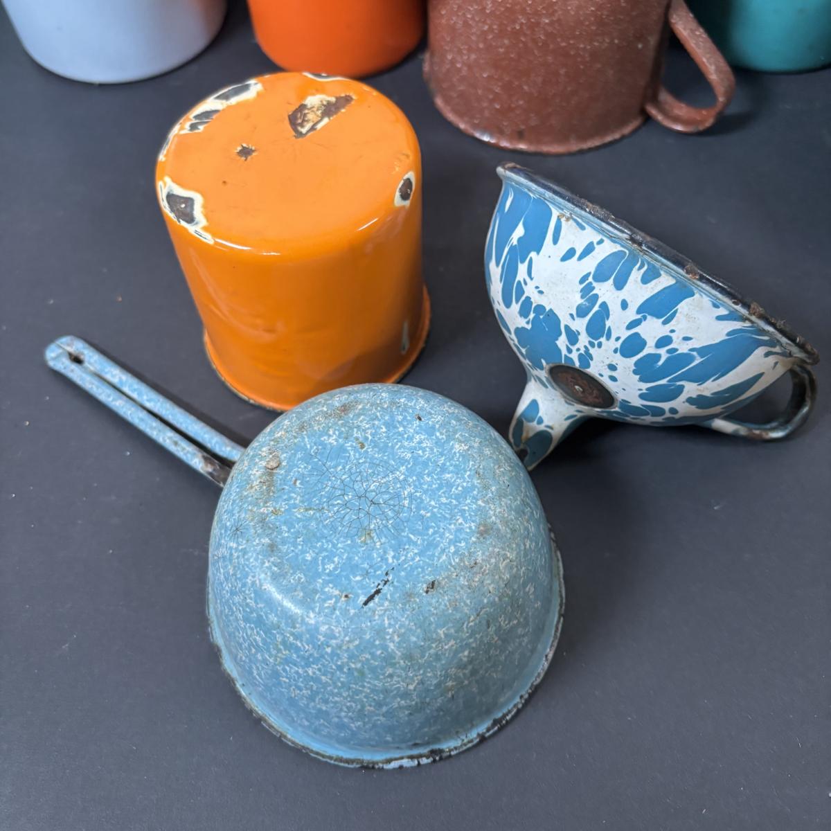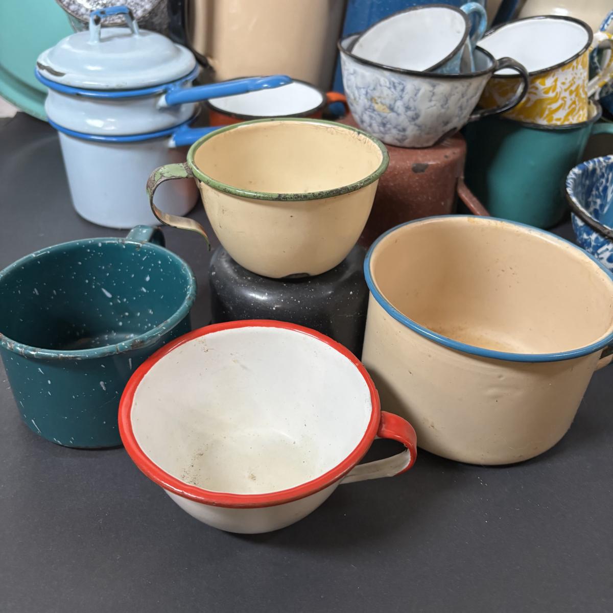 LOT 111: Large Collection of Enamelware in Various Conditions